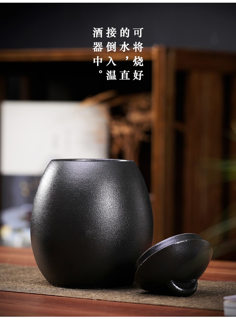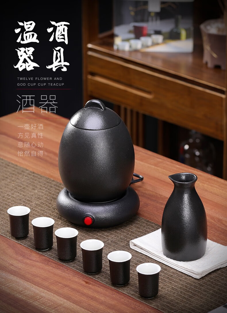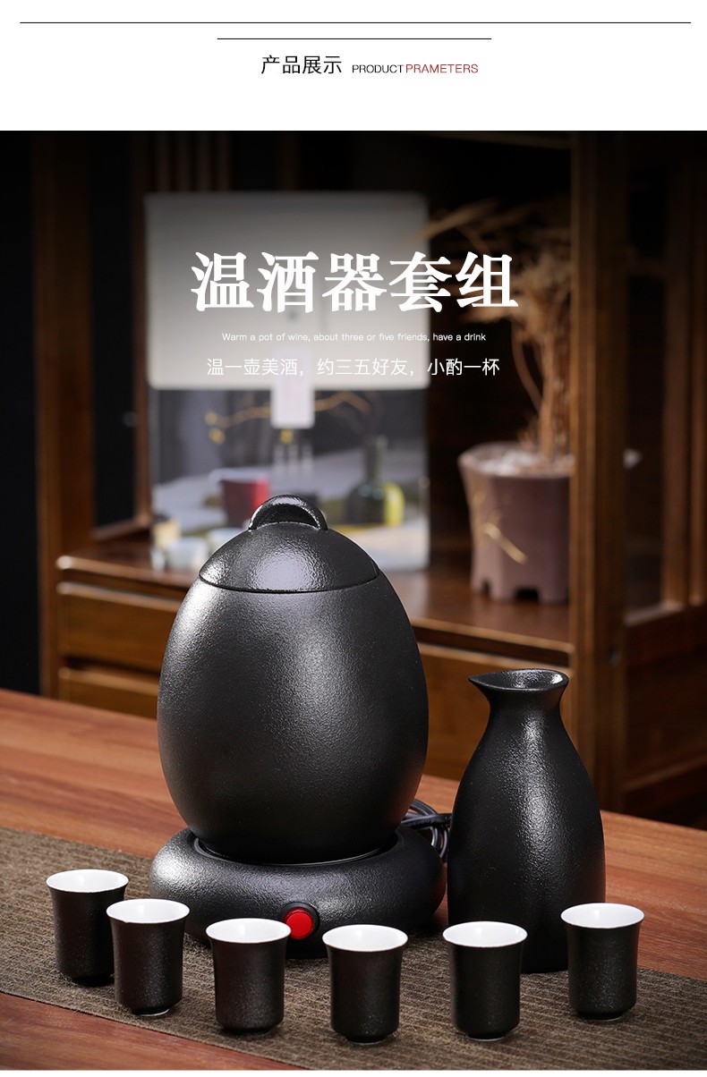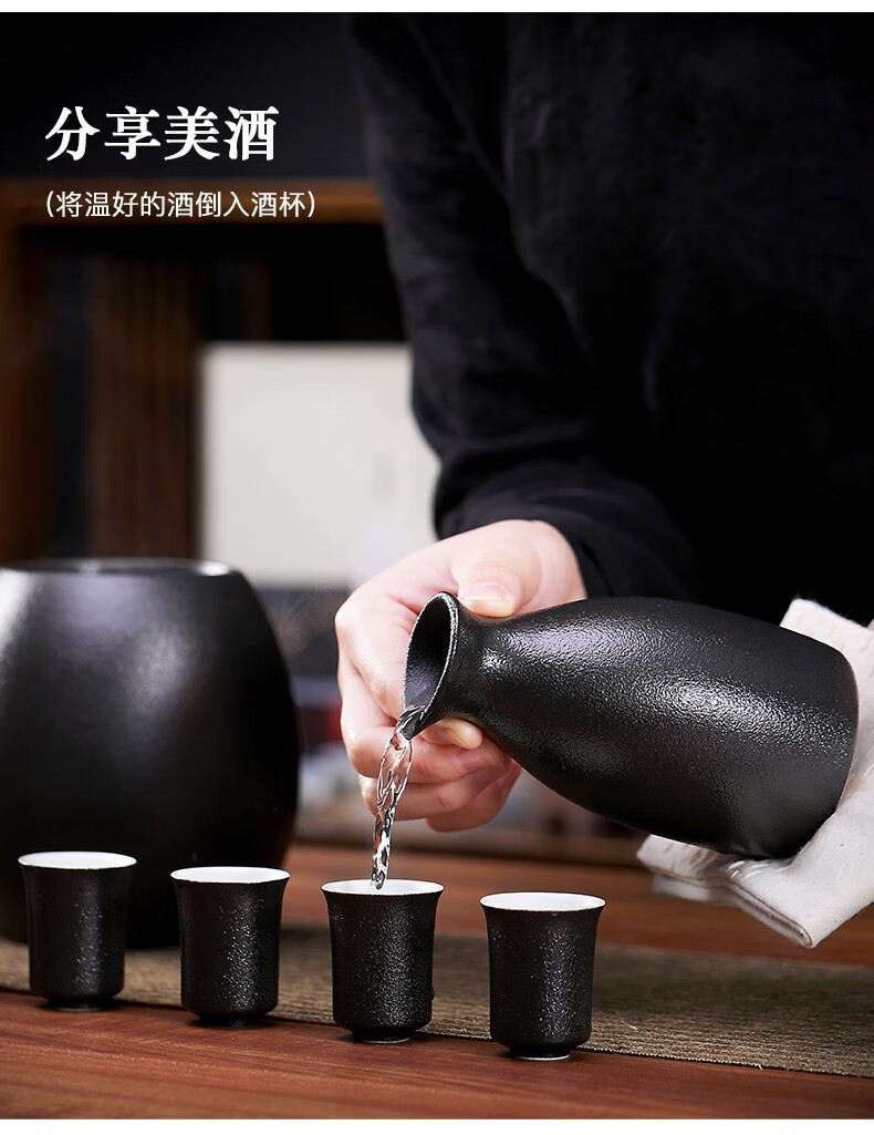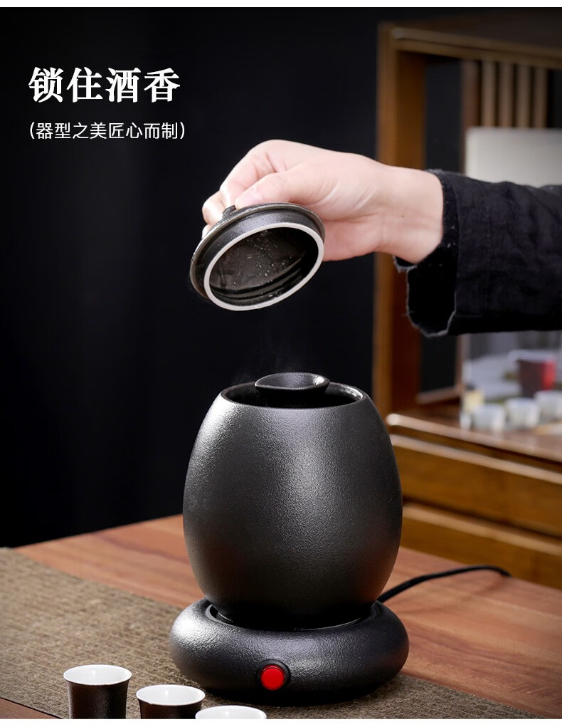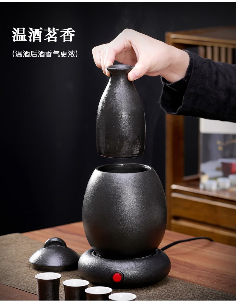 Qixinbian Chinese-style wine warmer set for wine glasses and wine pot, household retro wine boiler, rice wine warmer, wine warmer ceramic, black pottery wine warmer 6 cups + thermostat