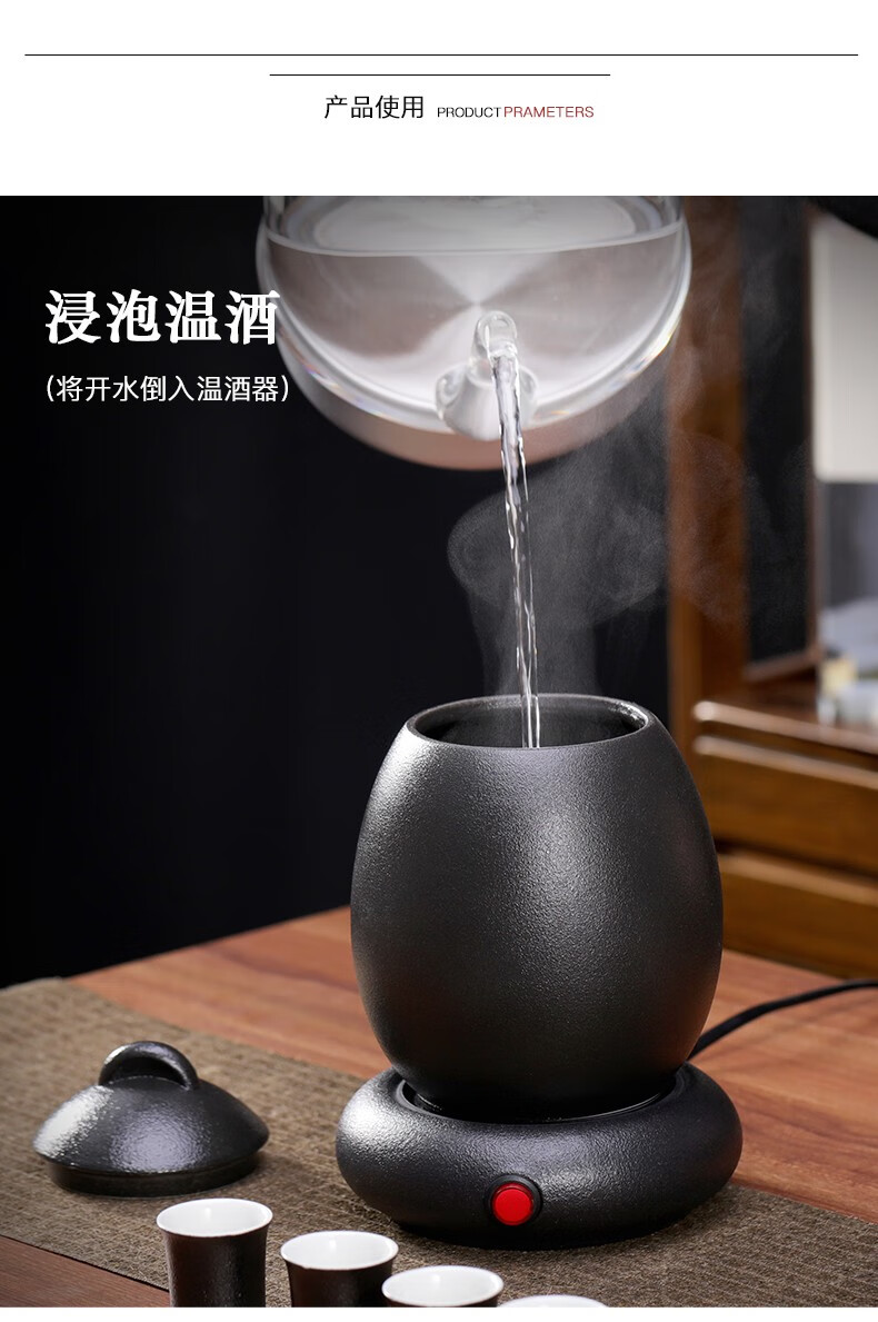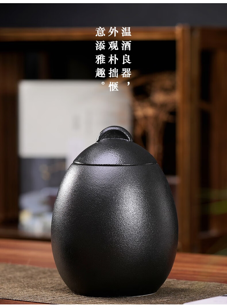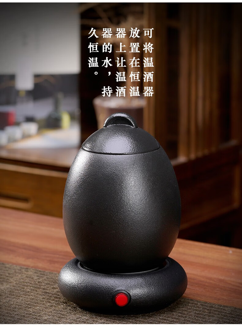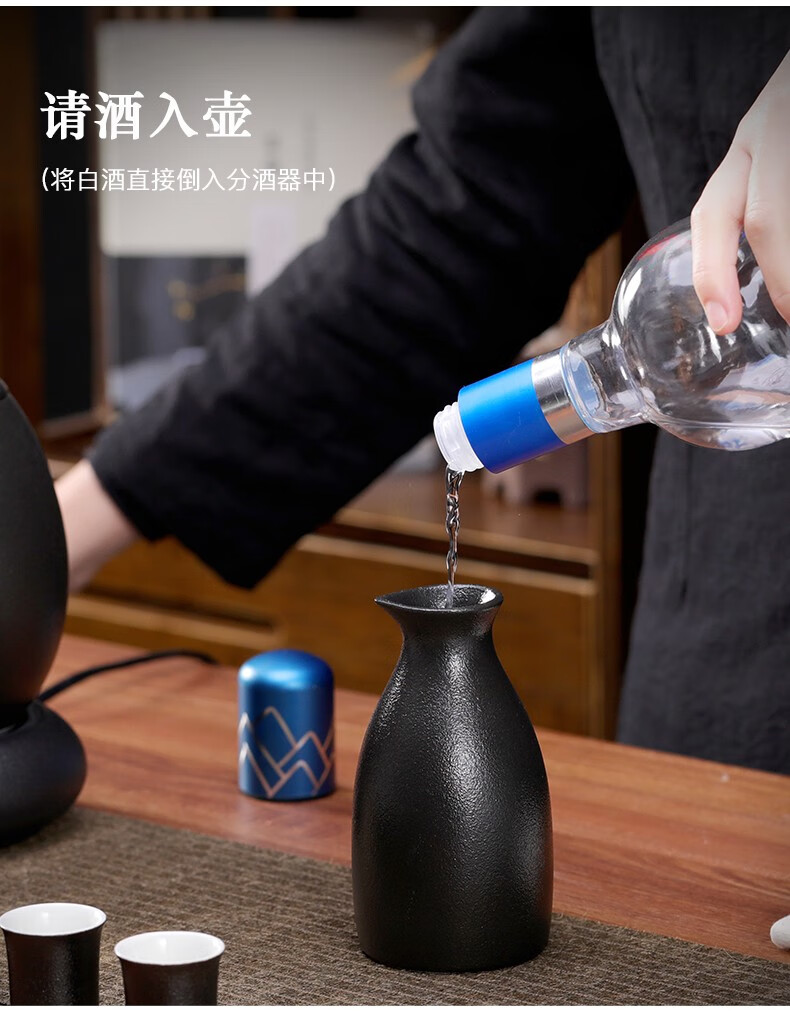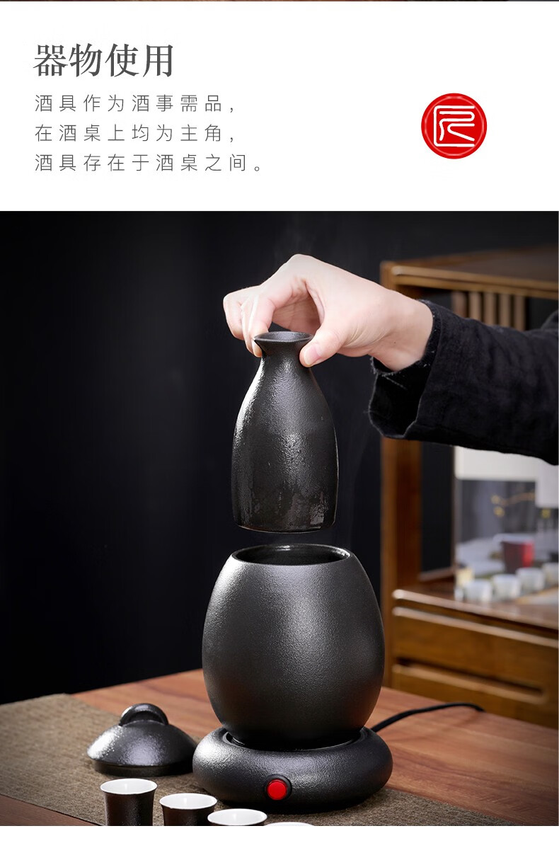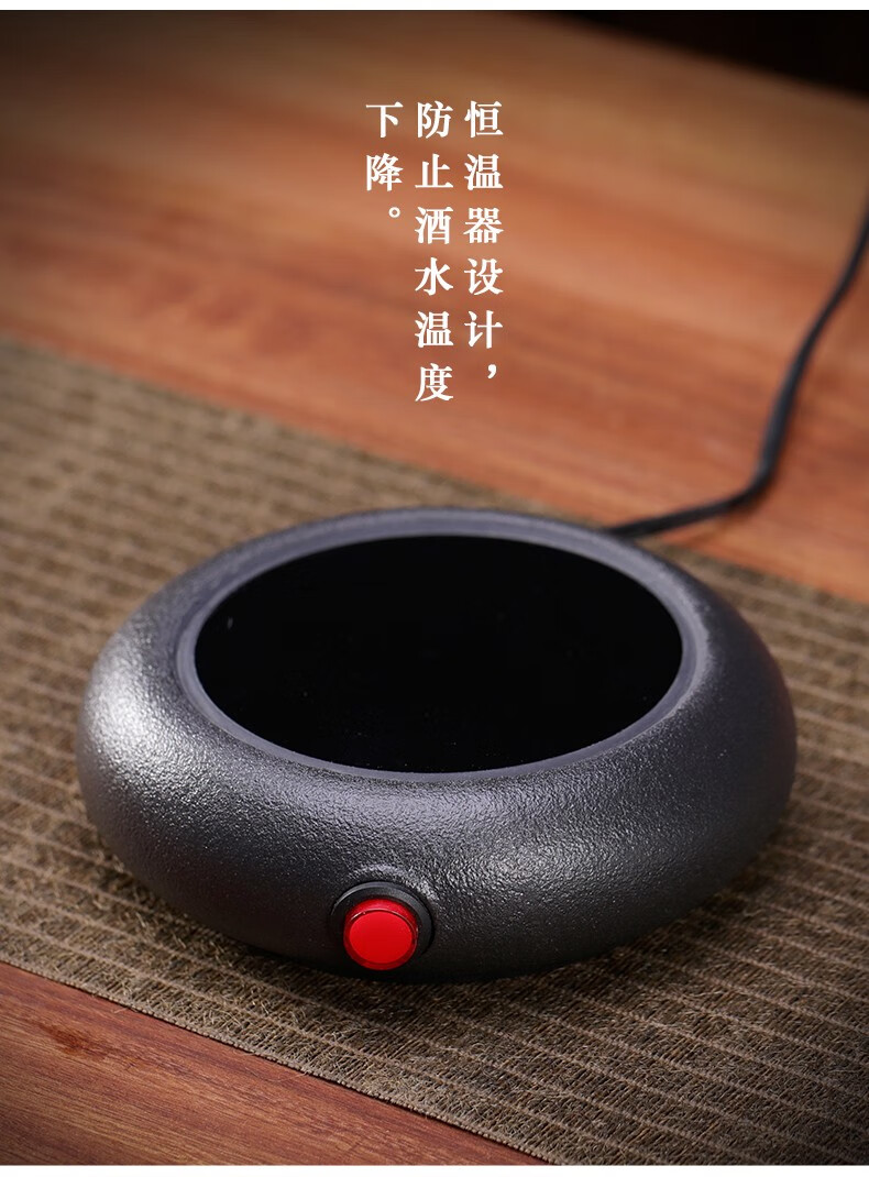 Qixinbian Chinese-style wine warmer set for wine glasses and wine pot, household retro wine boiler, rice wine warmer, wine warmer ceramic, black pottery wine warmer 6 cups + thermostat