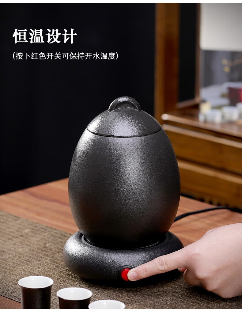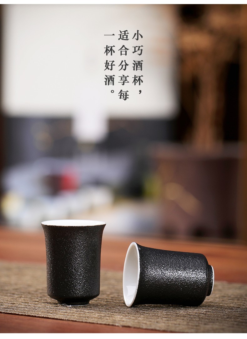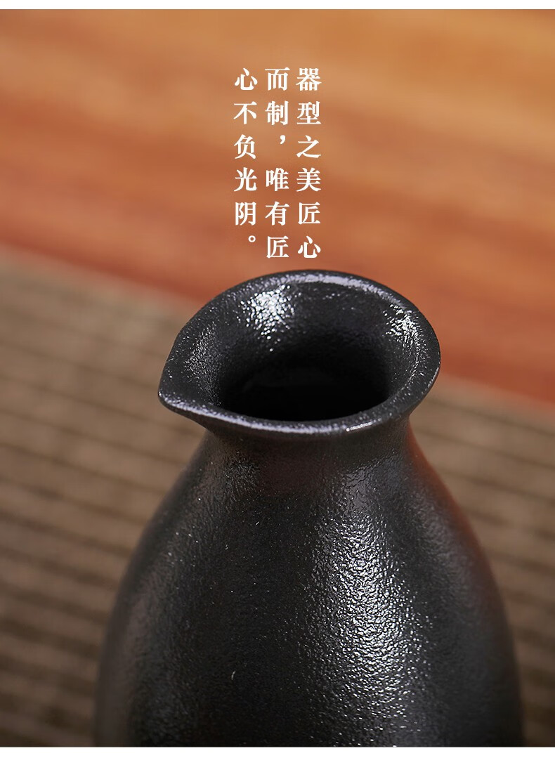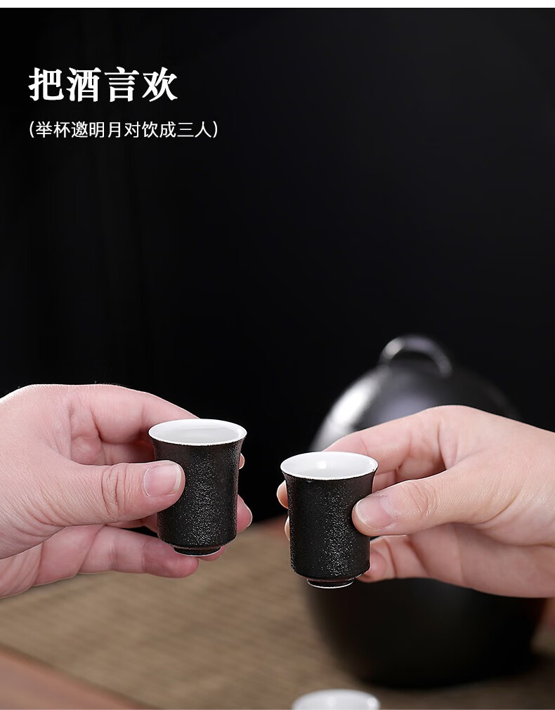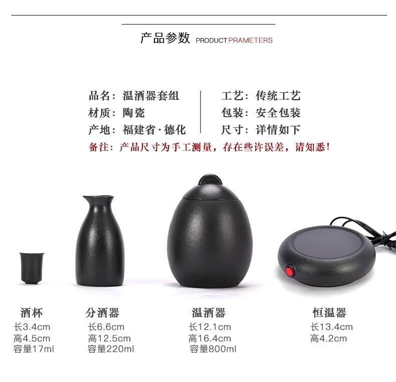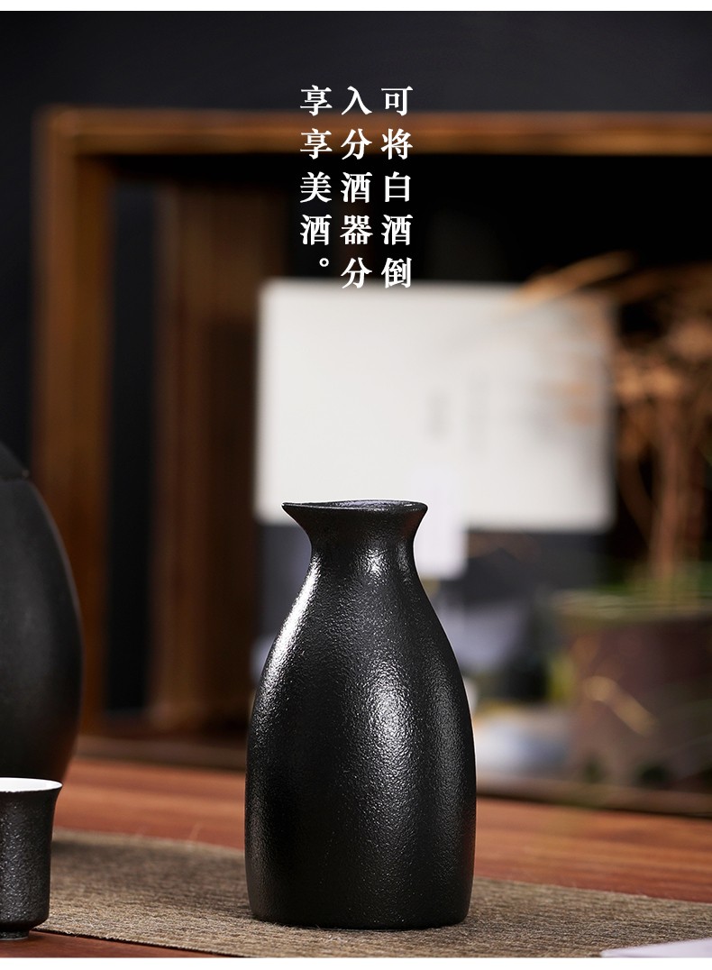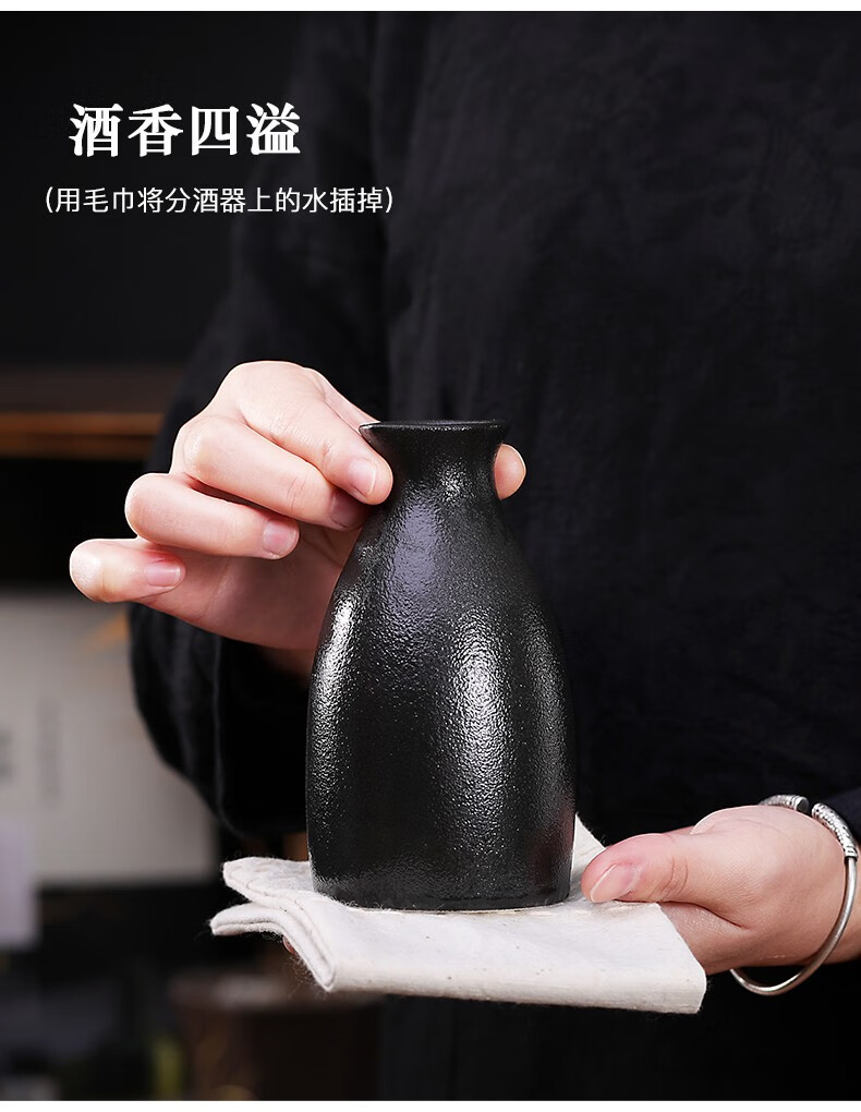 Qixinbian Chinese-style wine warmer set for wine glasses and wine pot, household retro wine boiler, rice wine warmer, wine warmer ceramic, black pottery wine warmer 6 cups + thermostat