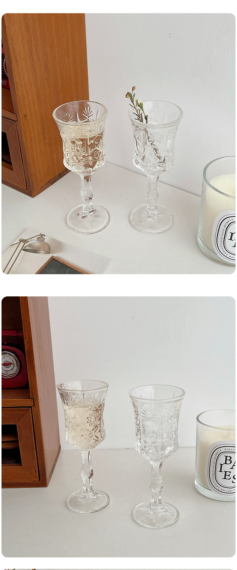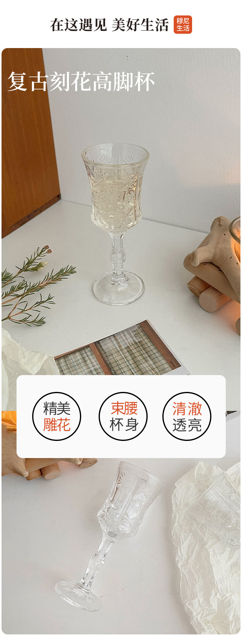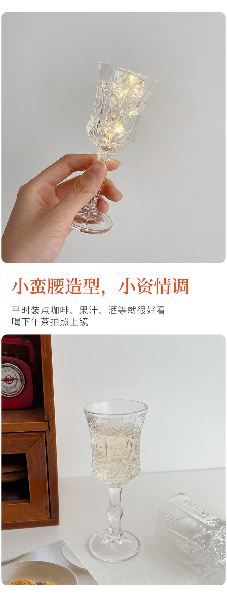 Mooney retro ins style trumpet embossed goblet simple waist-opening red wine glass champagne glass cold drink cup trumpet-patterned goblet