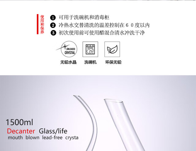 Decanter crystal glass personalized decanter red wine dispenser red wine jug red wine bottle household European style with handle decanter 1500ml (flush price)