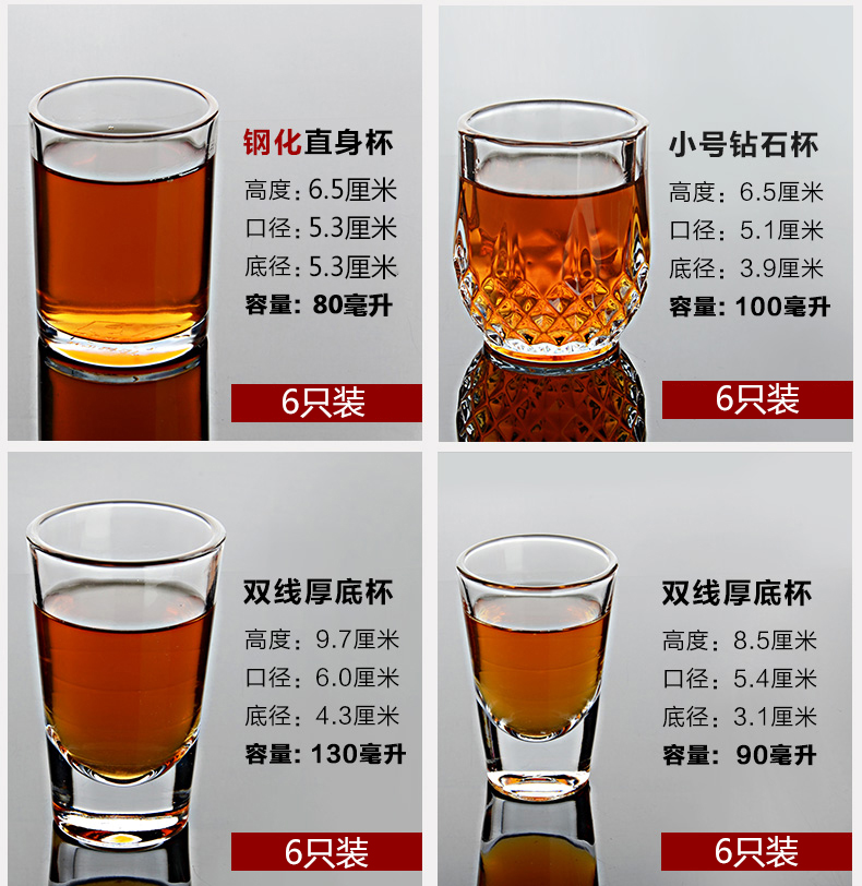 Wine cup bar v liquor glass 2 liang wine glass 100ml small beer glass set for 2 liang diamond cup 2 liang (100ml) 6 pieces