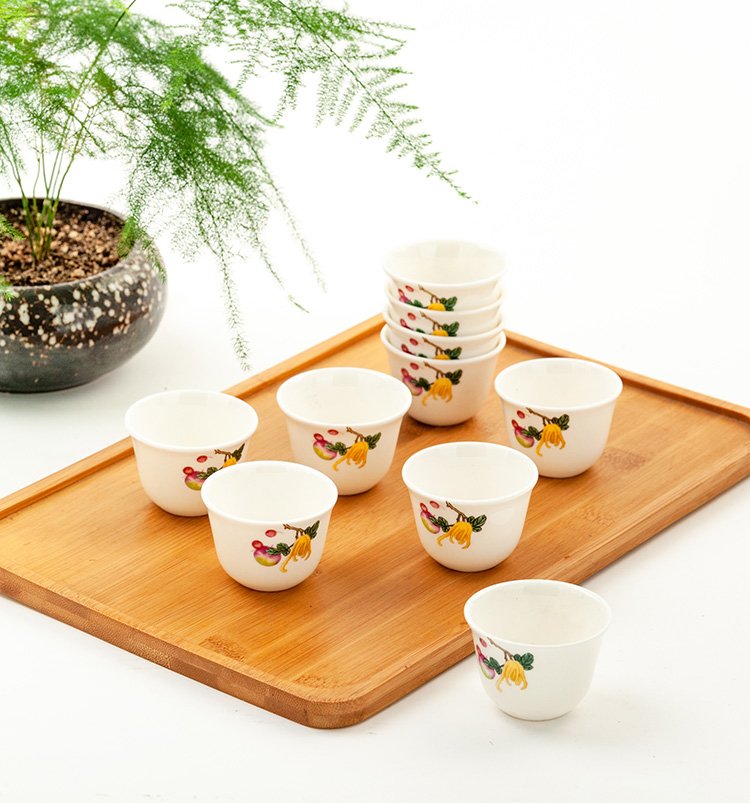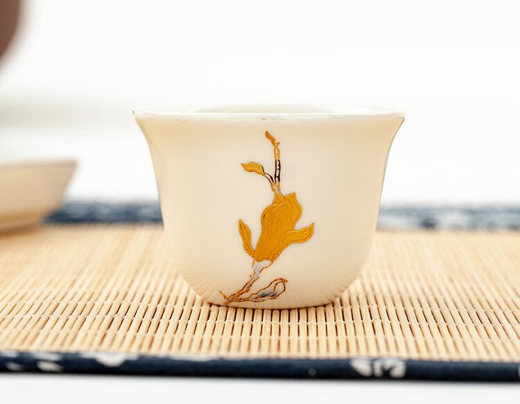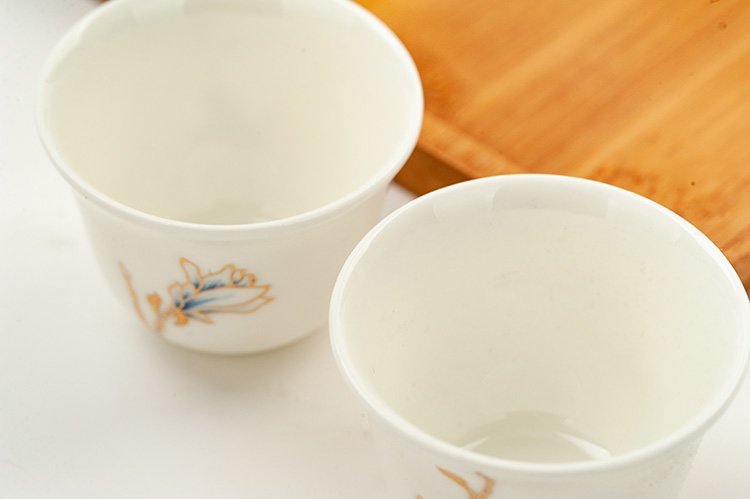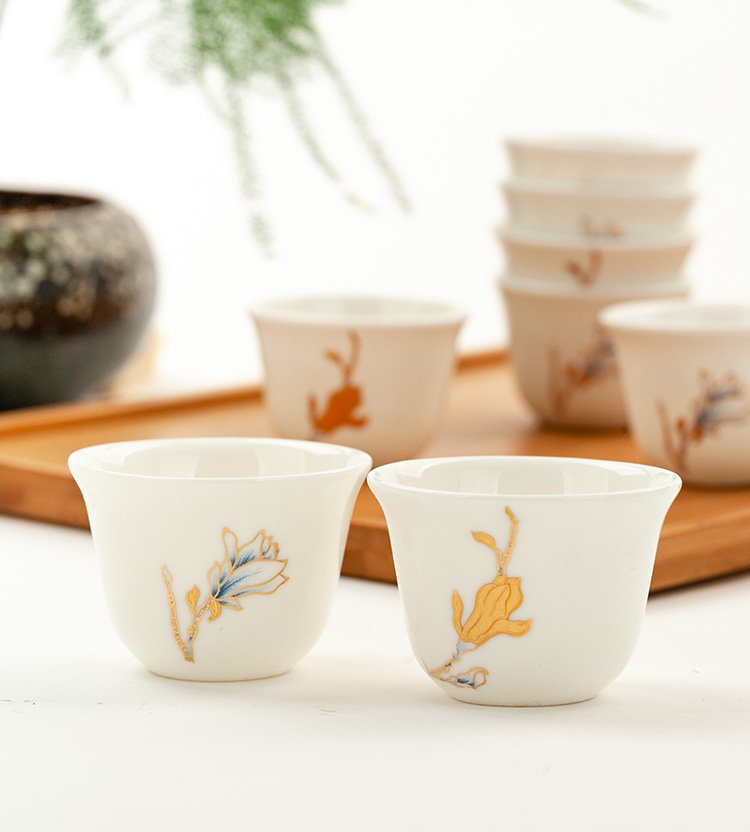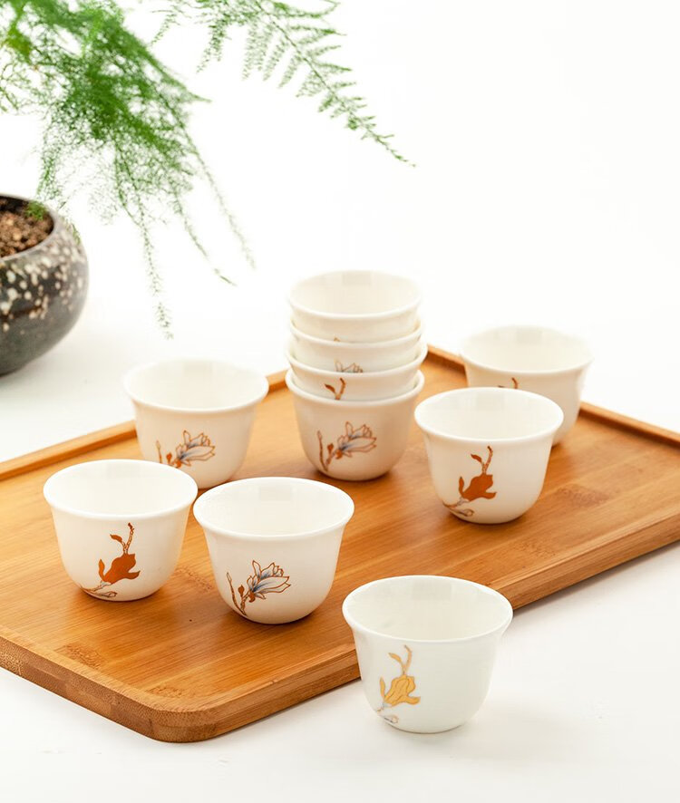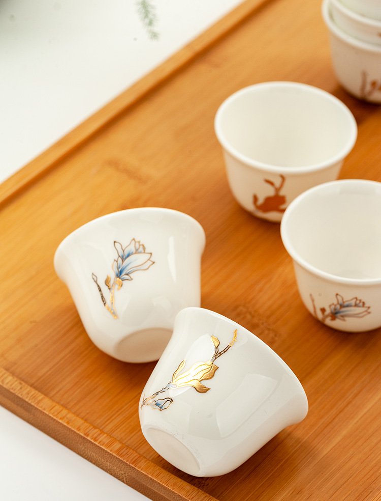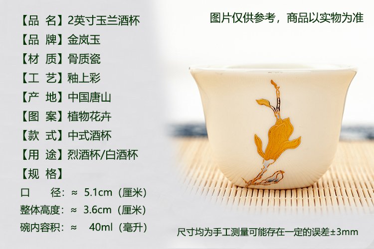 Jinlan Jade Tangshan Bone China 2-inch shot glass mini spirit cup Magnolia wine set 40ml rice wine cup Kung Fu tea cup Magnolia Blossom - Magnolia wine glass 10 pieces