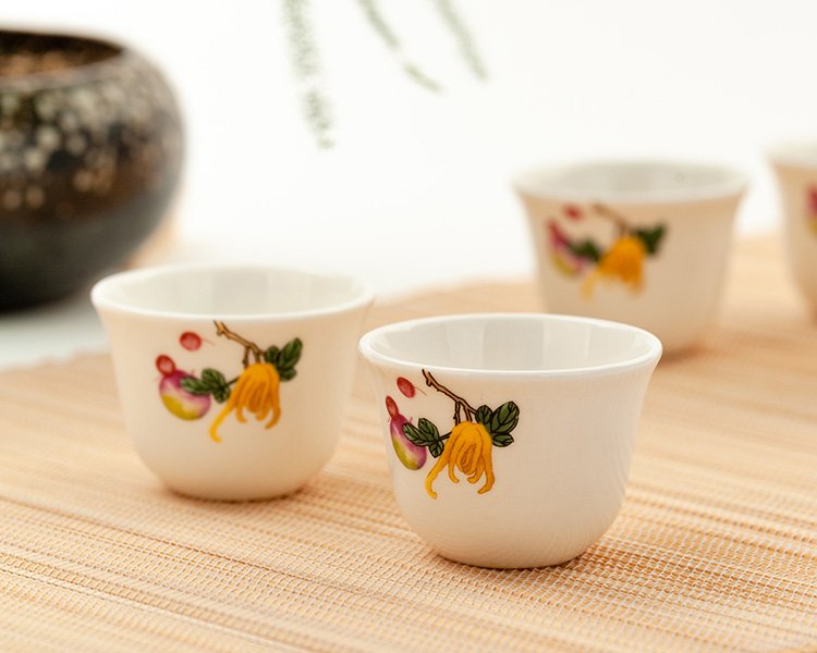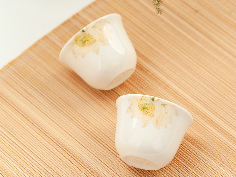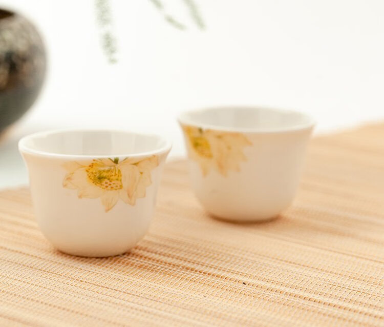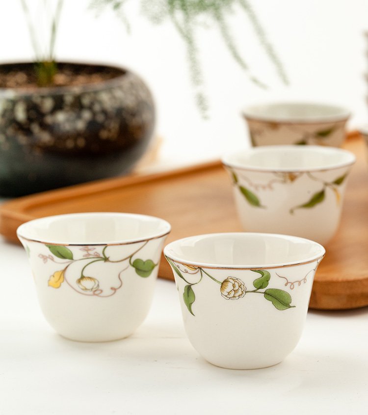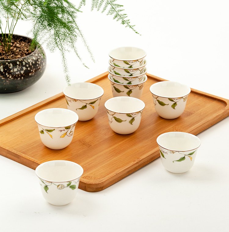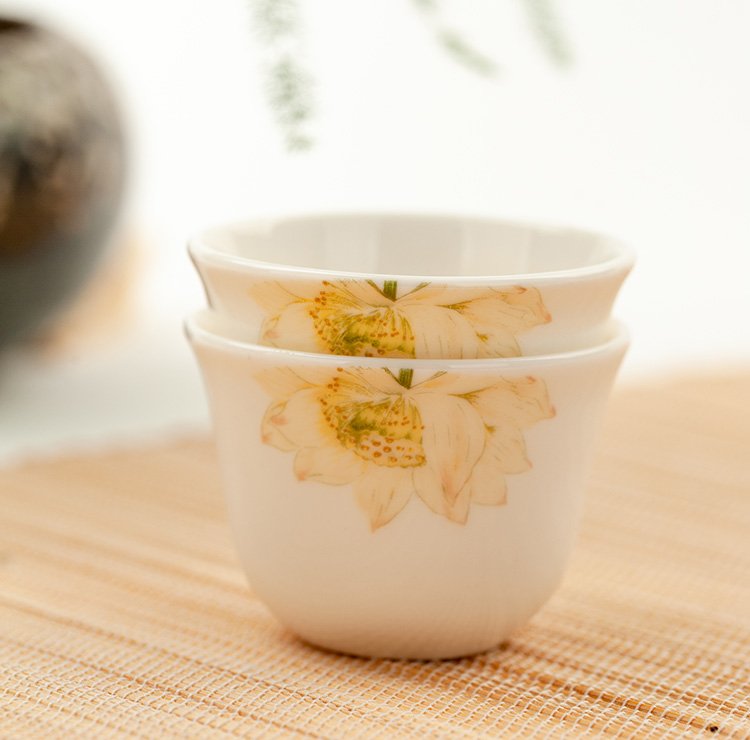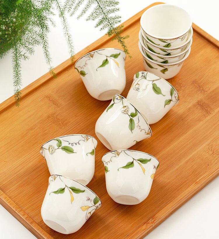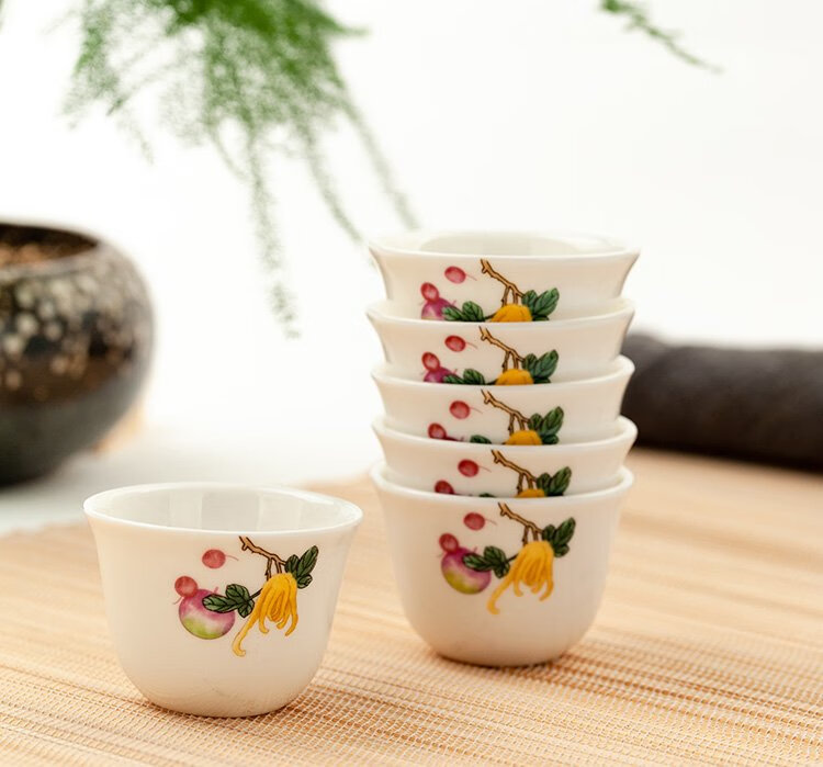 Jinlan Jade Tangshan Bone China 2-inch shot glass mini spirit cup Magnolia wine set 40ml rice wine cup Kung Fu tea cup Magnolia Blossom - Magnolia wine glass 10 pieces