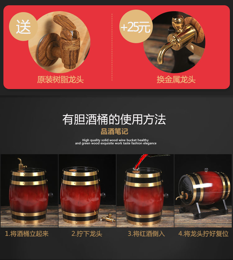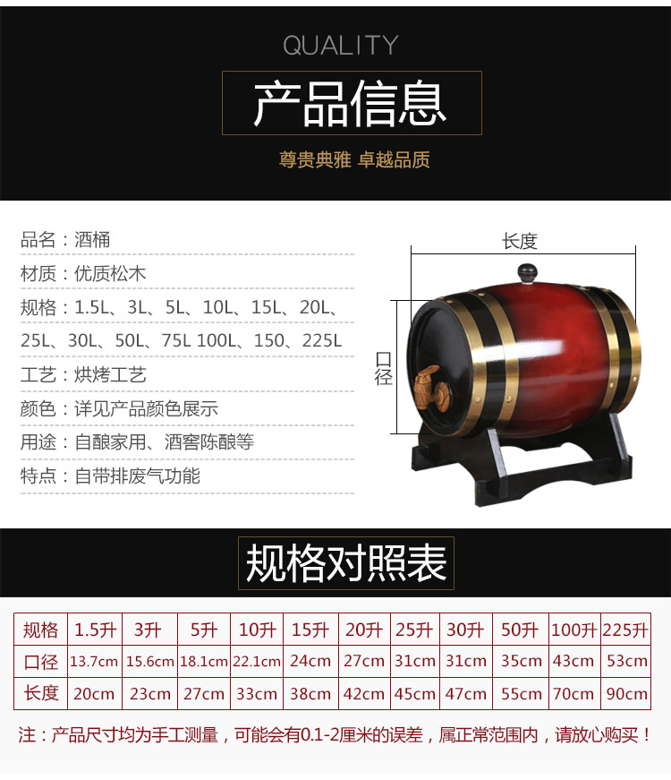 Empty oak barrel 5 liter solid oak wooden wine barrel white wine red wine wine storage wine barrel household small wine barrel 5L Please note the color you need