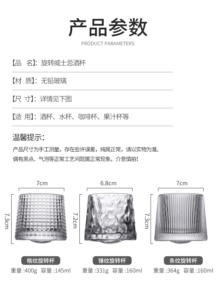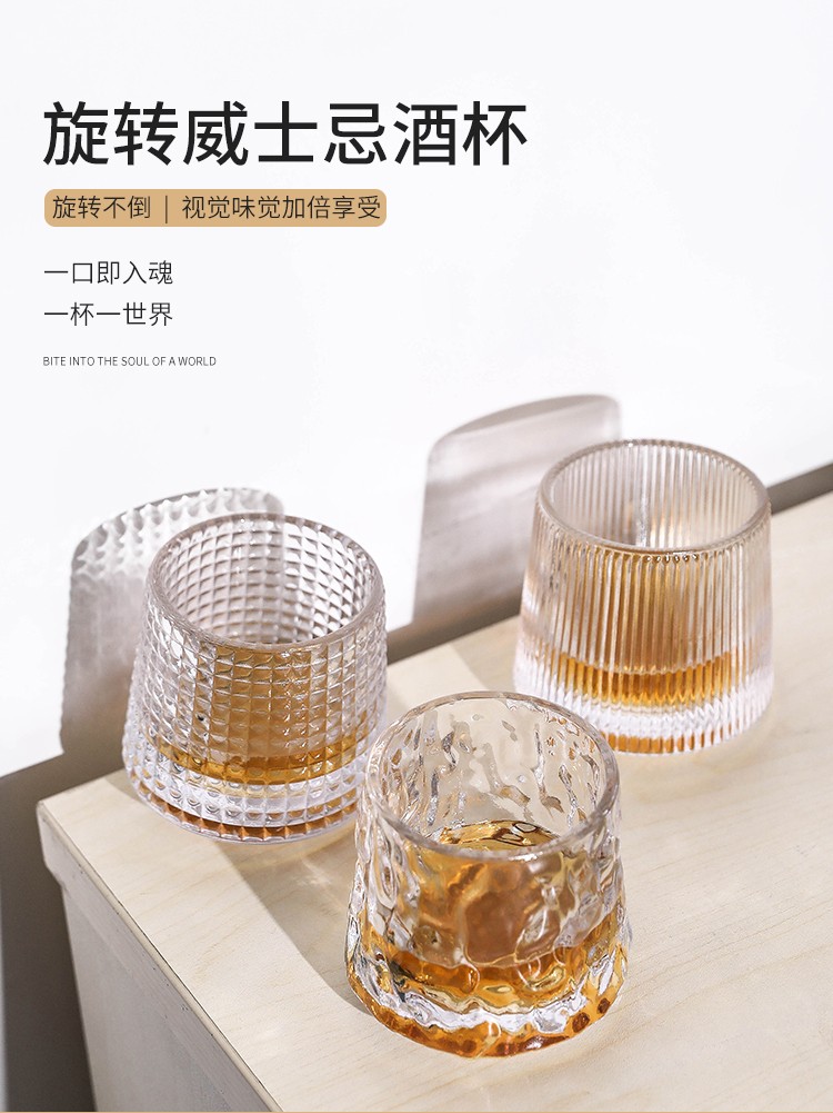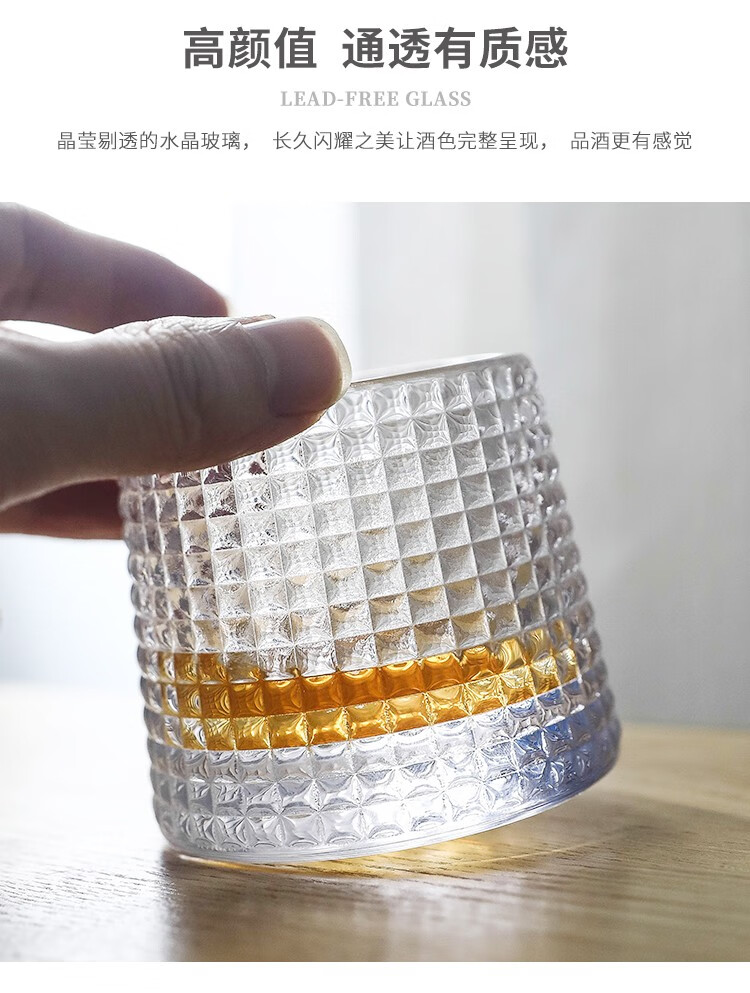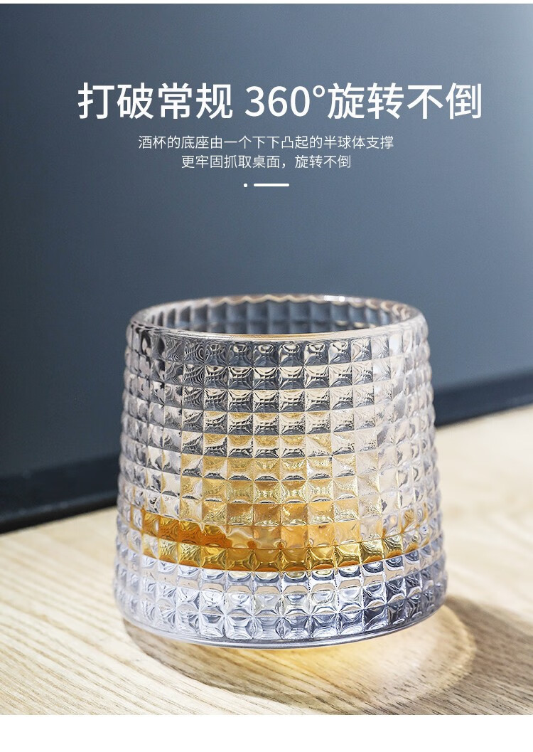 Molson Creative Rotating Whiskey Cup Thickened Personalized Tumbler Glass Wine Glass Wine Glass Gyro Cup Diamond Style-250ml Single
