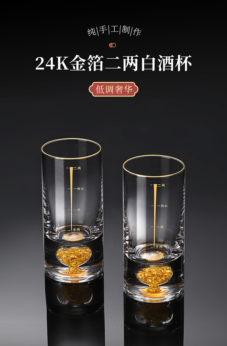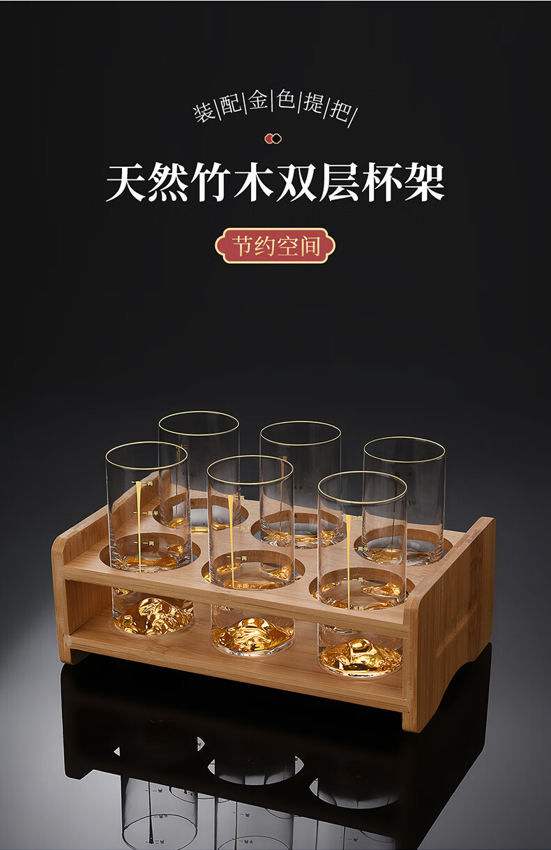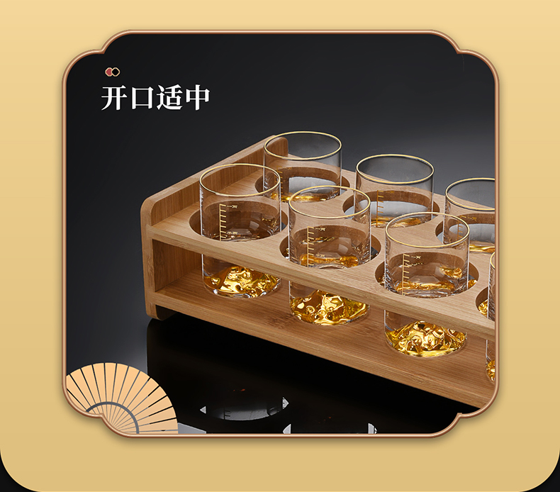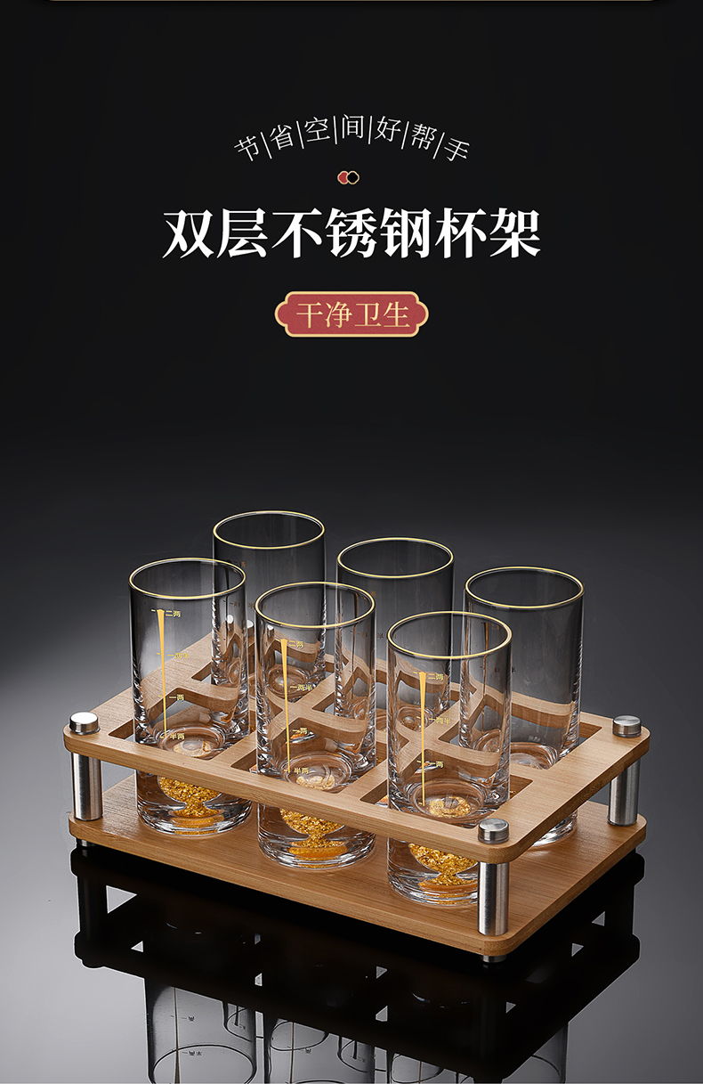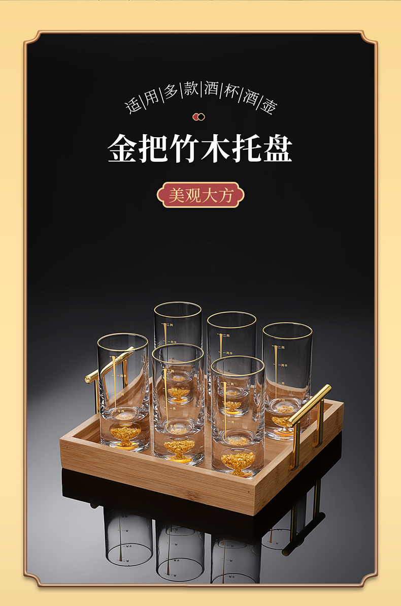 Creative Gold Foil Jinshan Erliang White Wine Glass Set Large Household 100ml Crystal Glass 2 Liang Spirits Small Drinkware Household High-end Liquor Glass Set Le Aijin Wine Tasting Cup Jinshan Erliang White Wine Glass/6 Pack + Bamboo Wood 6-hole Tray