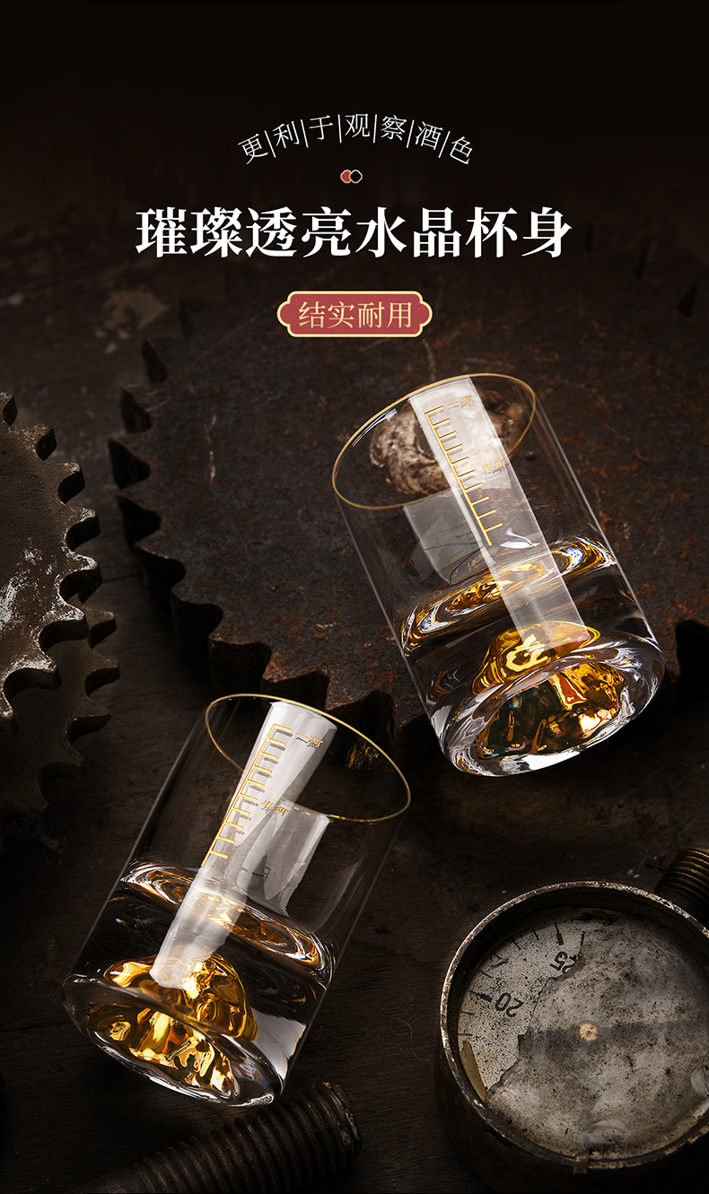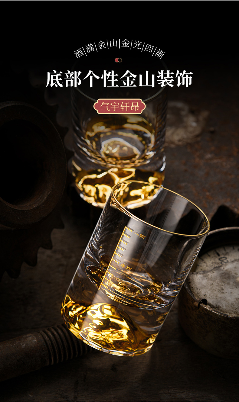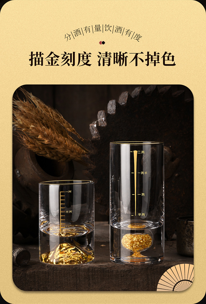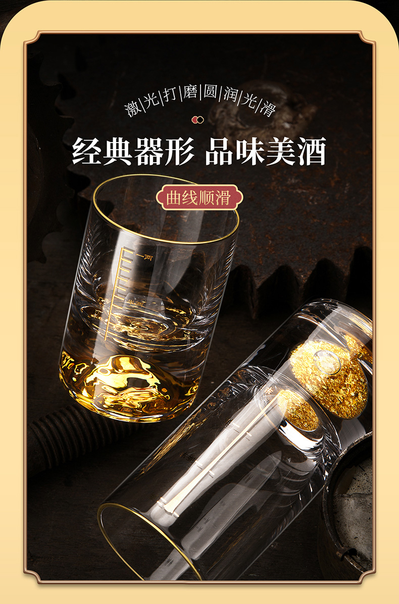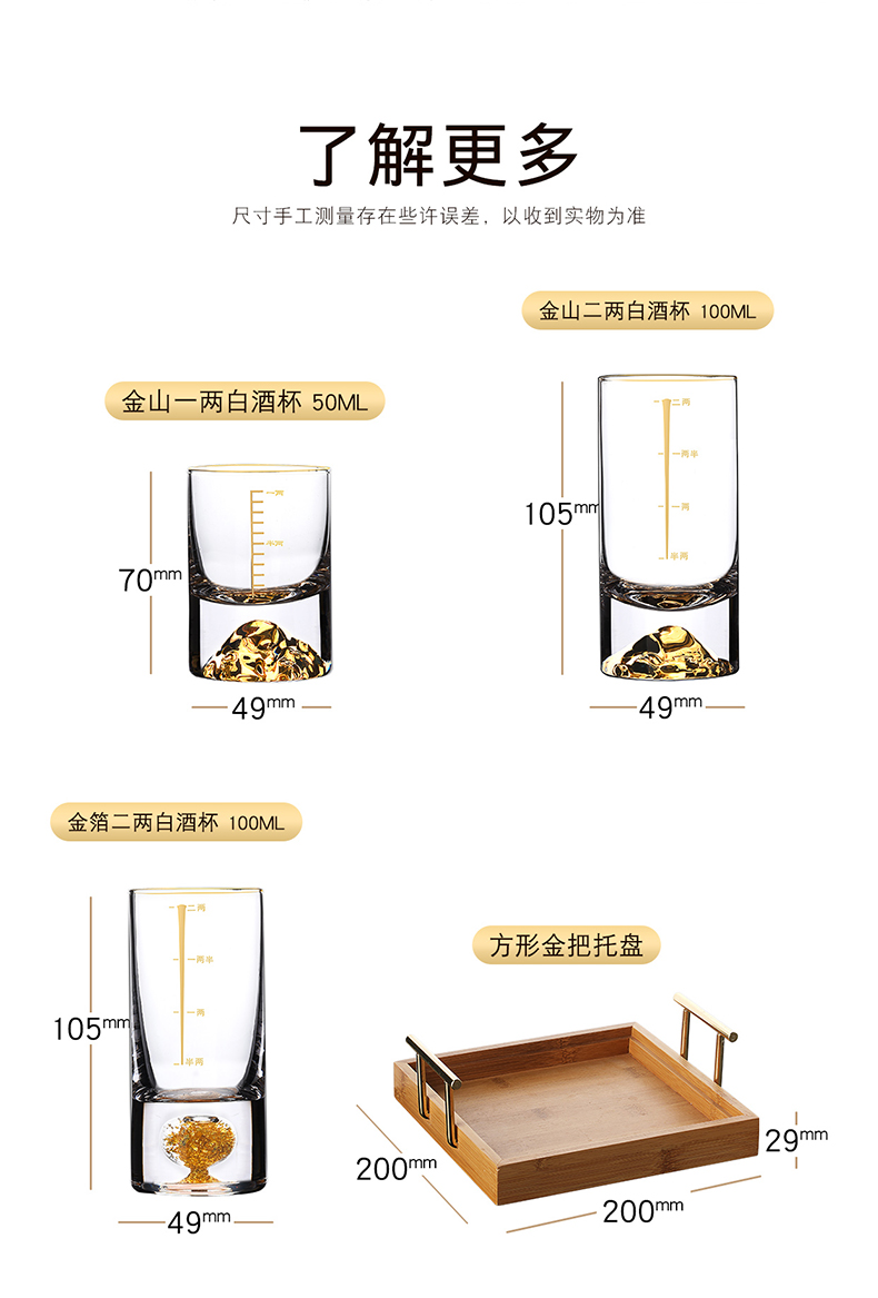 Creative Gold Foil Jinshan Erliang White Wine Glass Set Large Household 100ml Crystal Glass 2 Liang Spirits Small Drinkware Household High-end Liquor Glass Set Le Aijin Wine Tasting Cup Jinshan Erliang White Wine Glass/6 Pack + Bamboo Wood 6-hole Tray