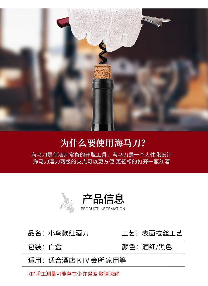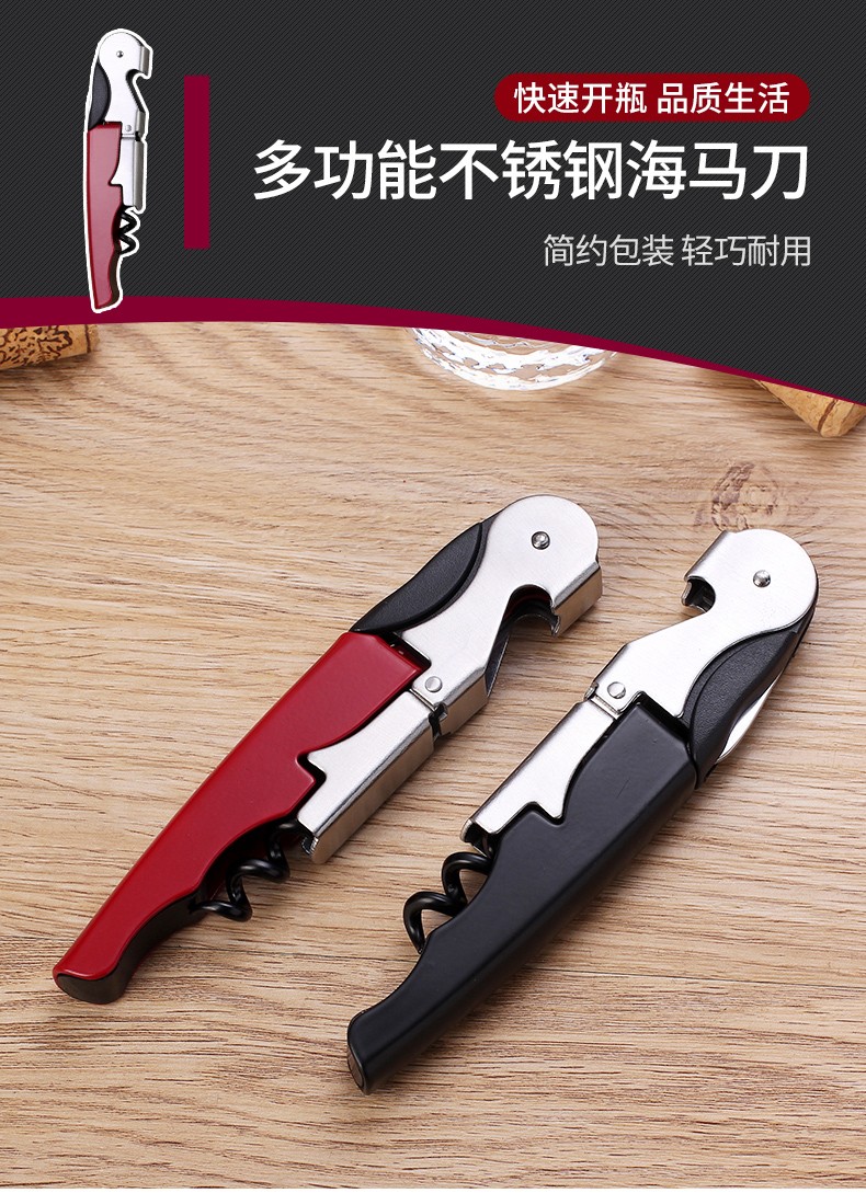 Kangzhirun Thickened Seahorse Knife Stainless Steel Red Wine Bottle Opener Home Wine Opener Bottle Opener Beer Opener Bird Wine Knife Black