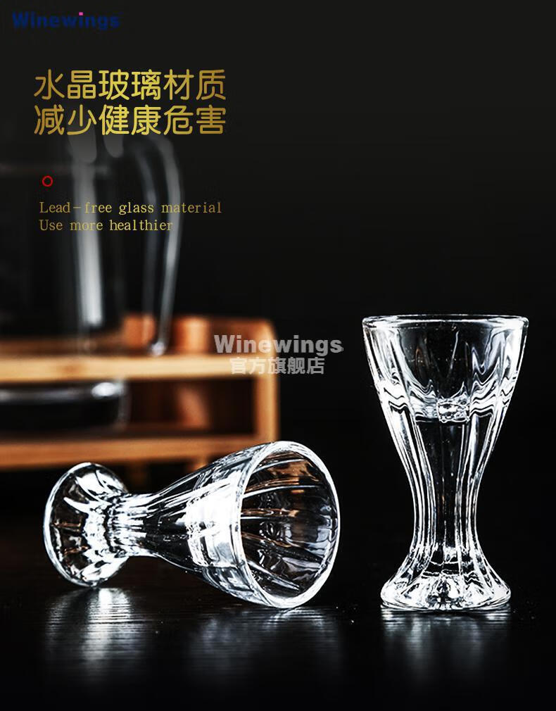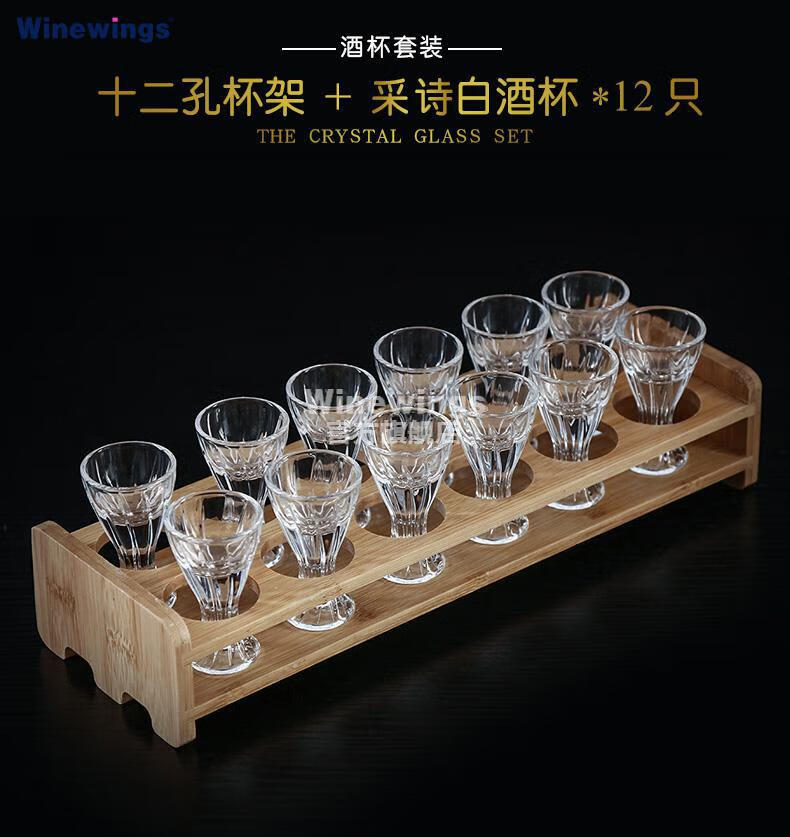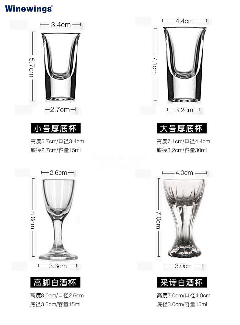 WINEWINGS home white wine glass dispenser set crystal glass spirit cup Chinese style small wine glass bullet cup sip cup small swallow cup 6 thick-bottomed white wine glasses 30ml