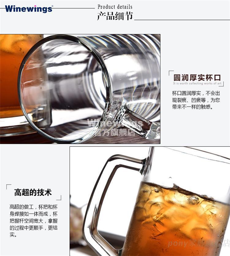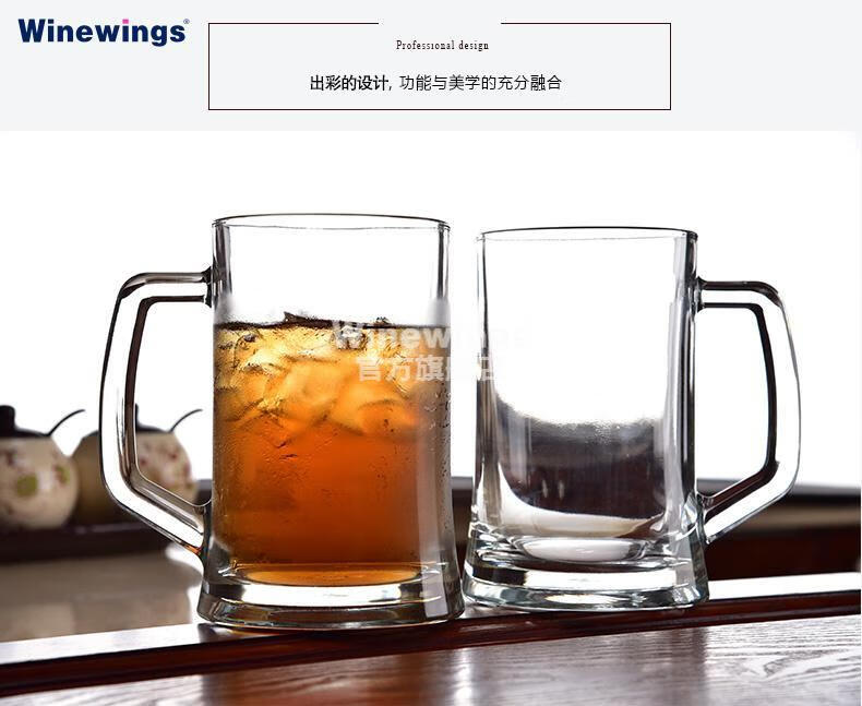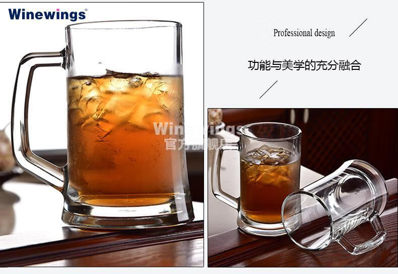WINEWINGS extra large craft beer cup home draft beer cup pint cup with handle crystal glass cup large capacity tea cup water cup 660ML thickened handle cup