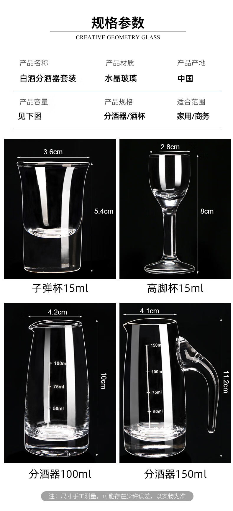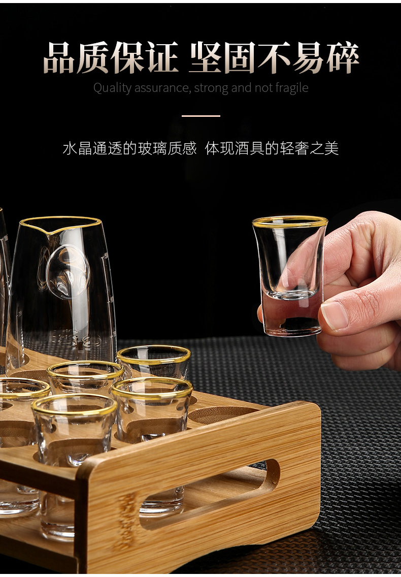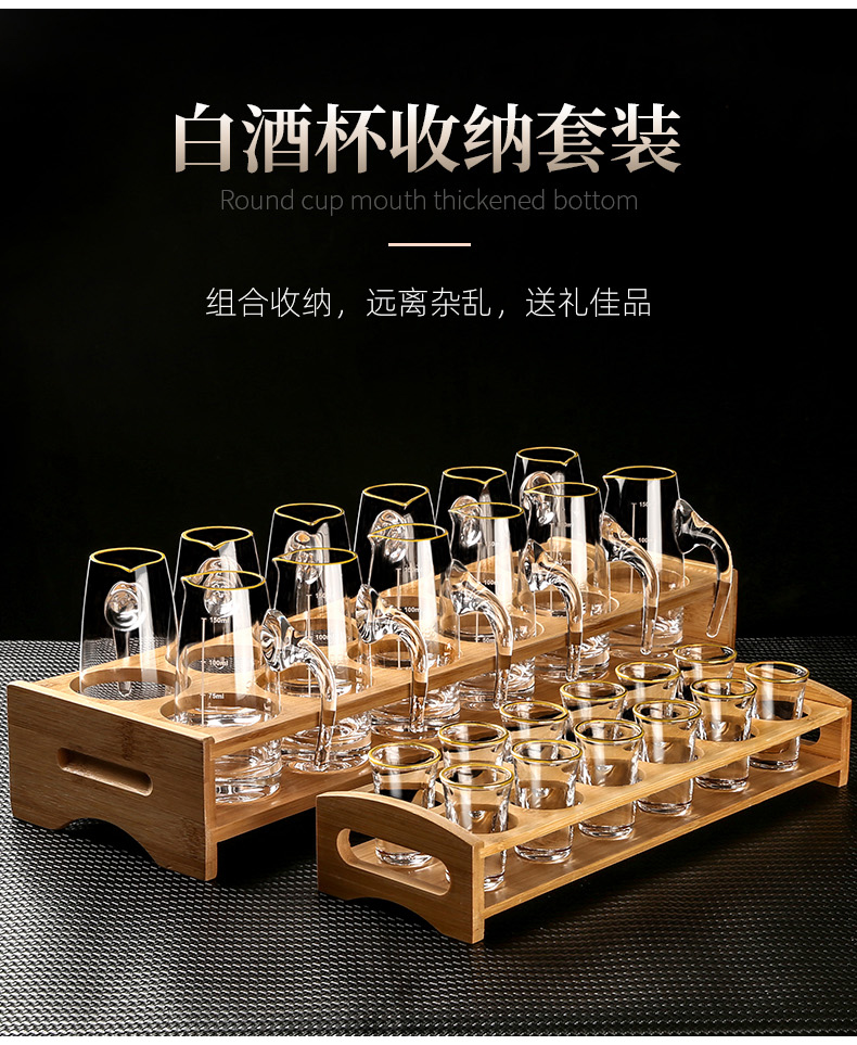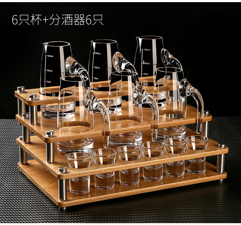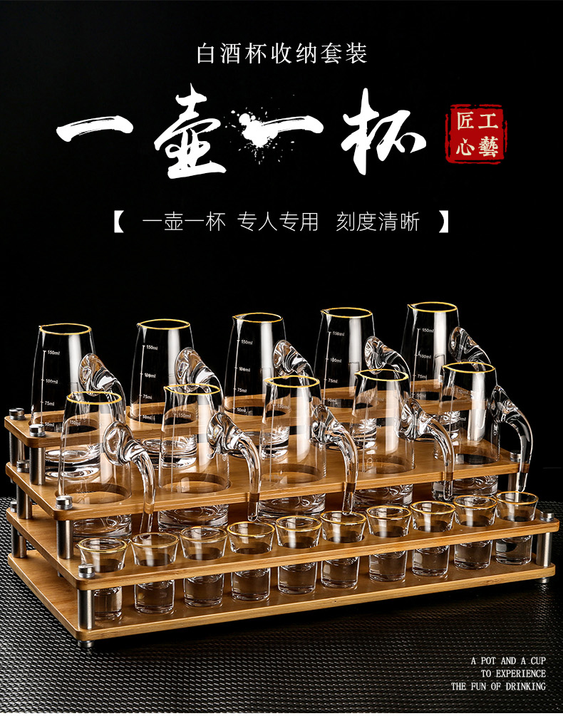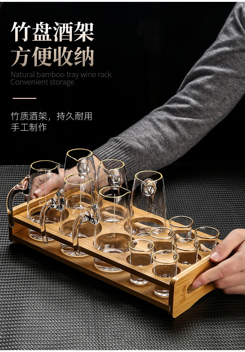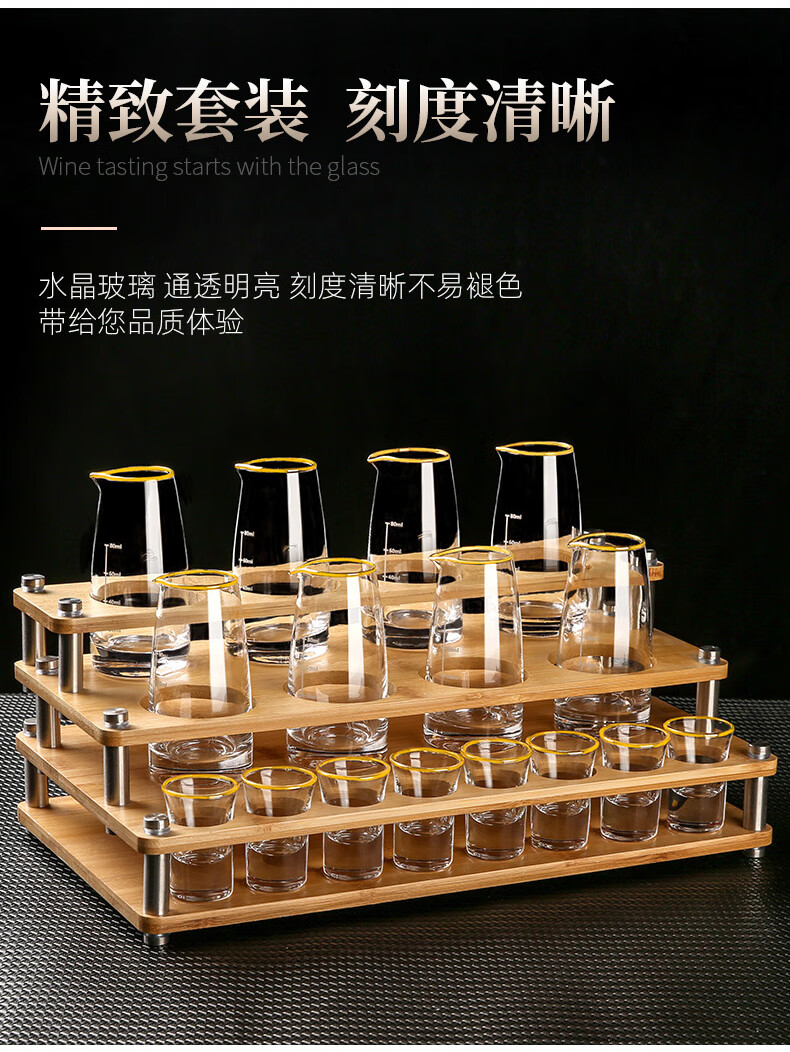 White wine glass and wine dispenser set, household light luxury small wine glass, one-cup wine cup, Chinese wine set with graduated cup holder, baer 10 pots, 10 cups, 1 rack, 100ml handleless wine dispenser + cup + three layers