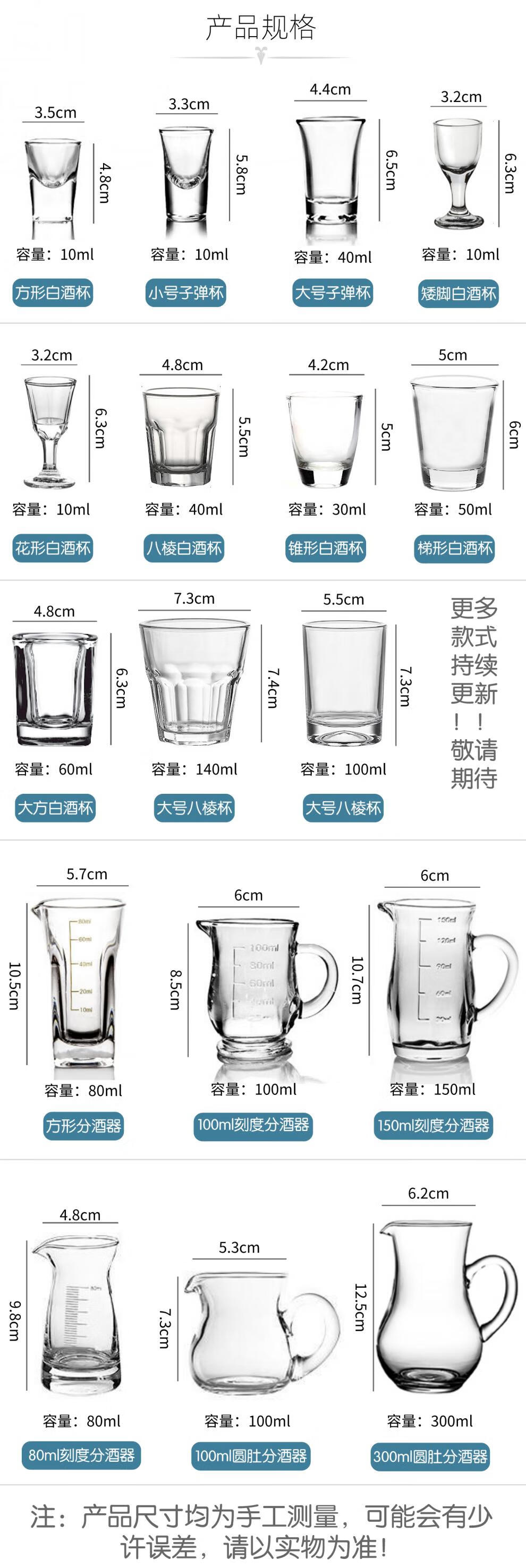 Bullet cup, shot cup, glass white wine cup, home set, small size 10 ml, 2 liang, one cup, 50 ml diamond carved white wine cup*1
