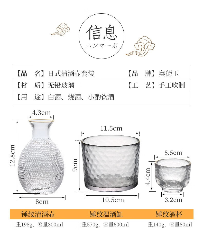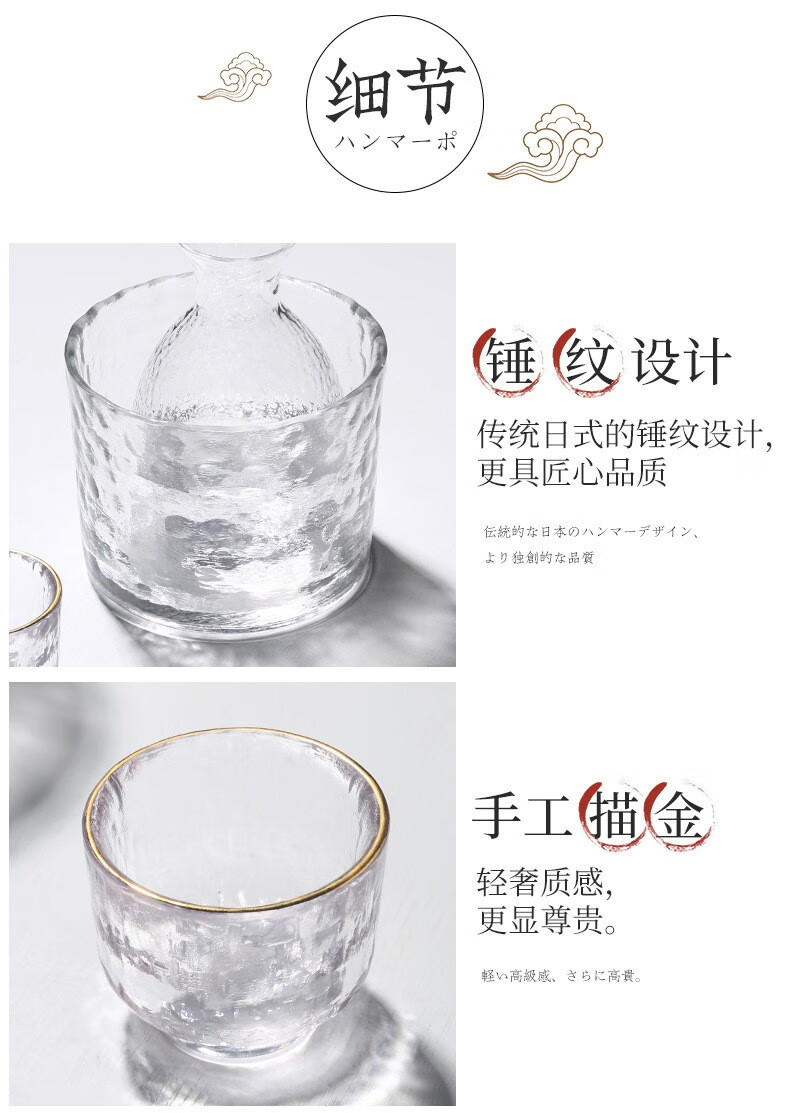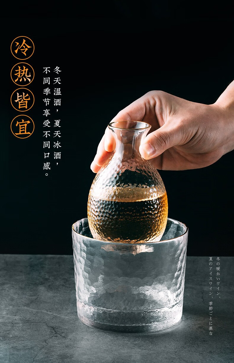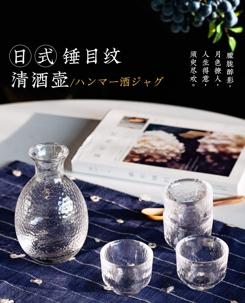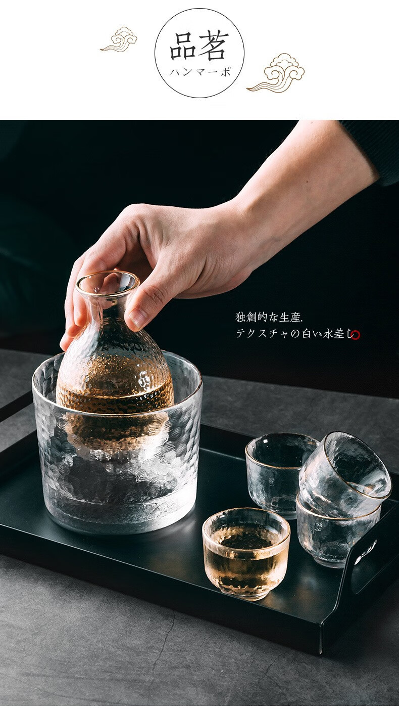 Zhushengmo (ZHUSHENGMO) Japanese wine set glass sake cup soju pot fruit wine cup plum white wine cup small glass wine warmer home set transparent model 1 pot 1 cylinder 4 cups