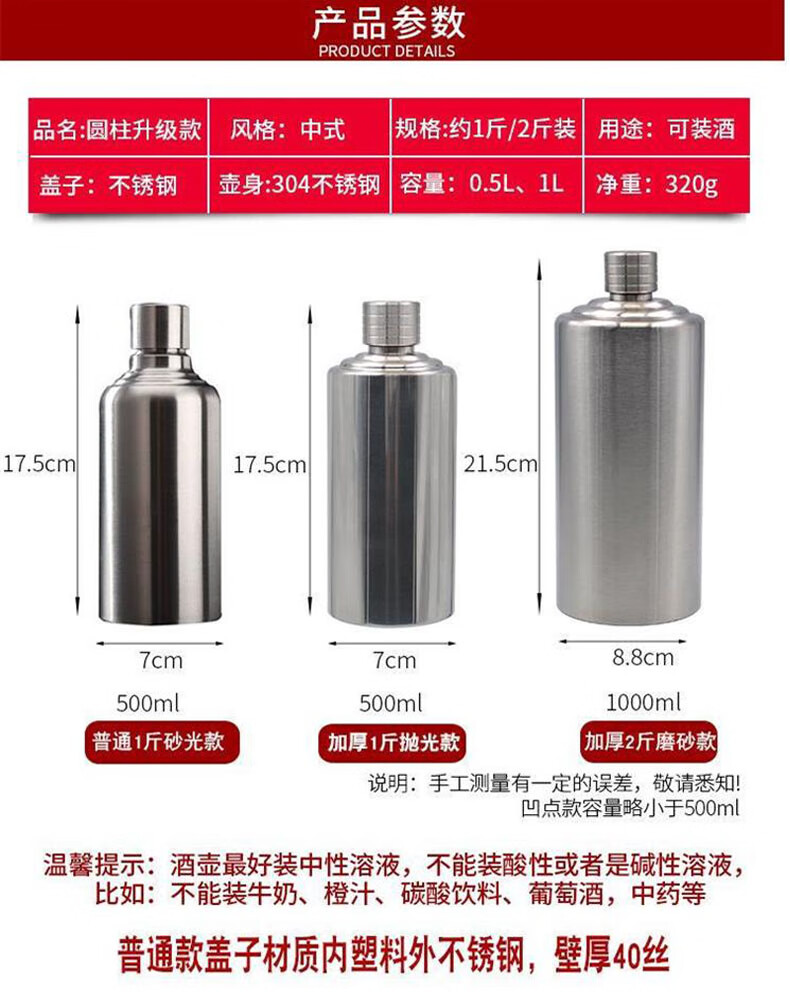German imported quality stainless steel wine bottle 304 stainless steel 1 Jin Jin is equal to 0.5 kg, 2 Jin Jin is equal to 0.5 kg, outdoor portable wine bottle, empty bottle, white wine sealed, 2 Jin Jin is equal to 0.5 kg, polka dot leather bag