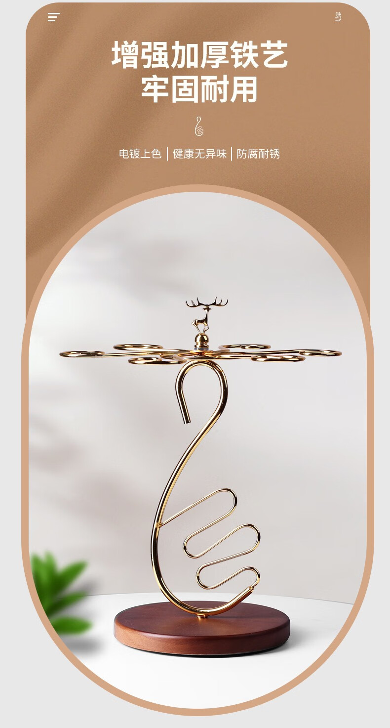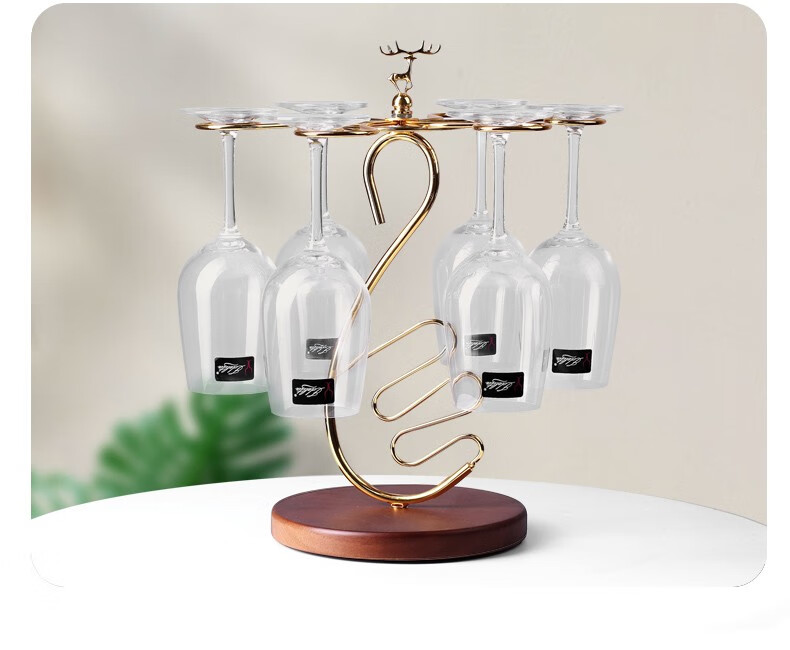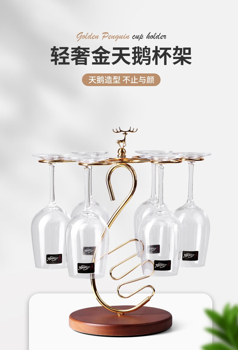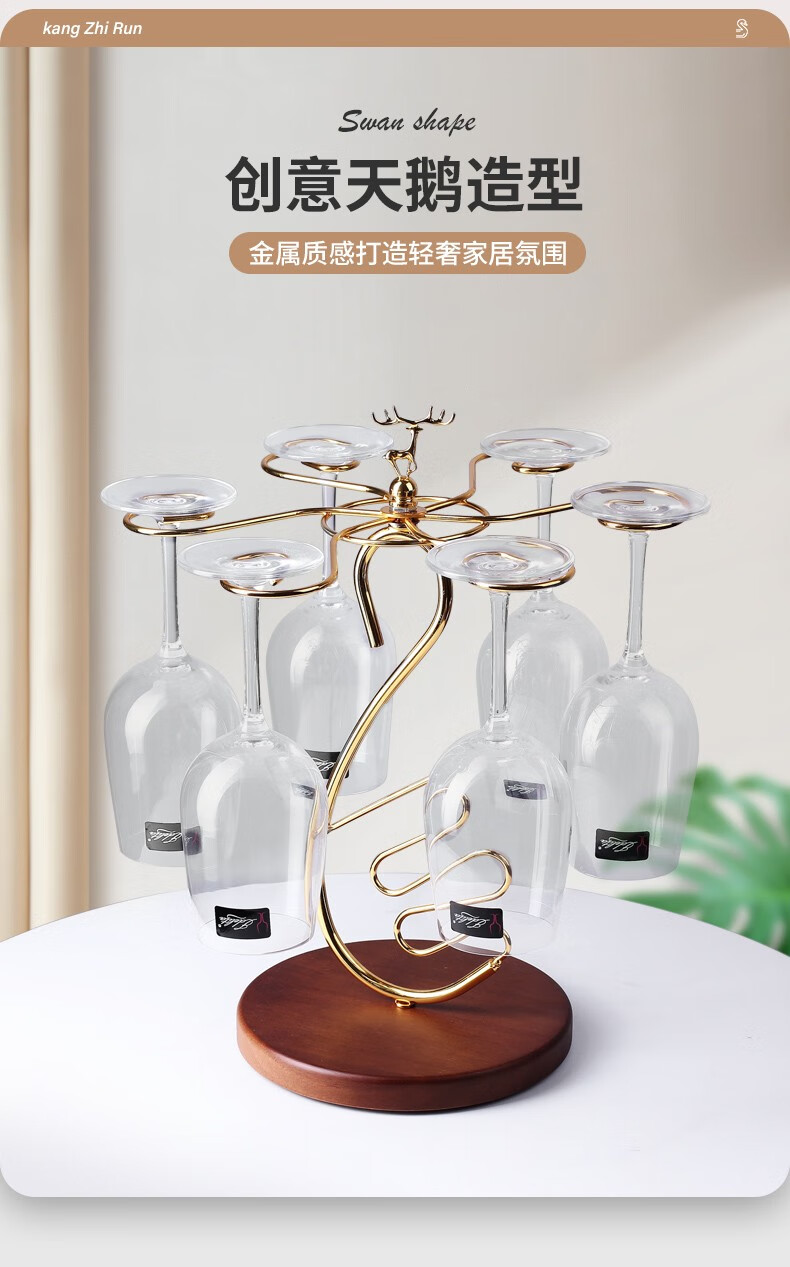 KANGZHIRUN creative solid wood red wine cup holder light luxury upside-down goblet hanging wine glass home ornaments simple display stand Golden Swan wooden bottom cup holder