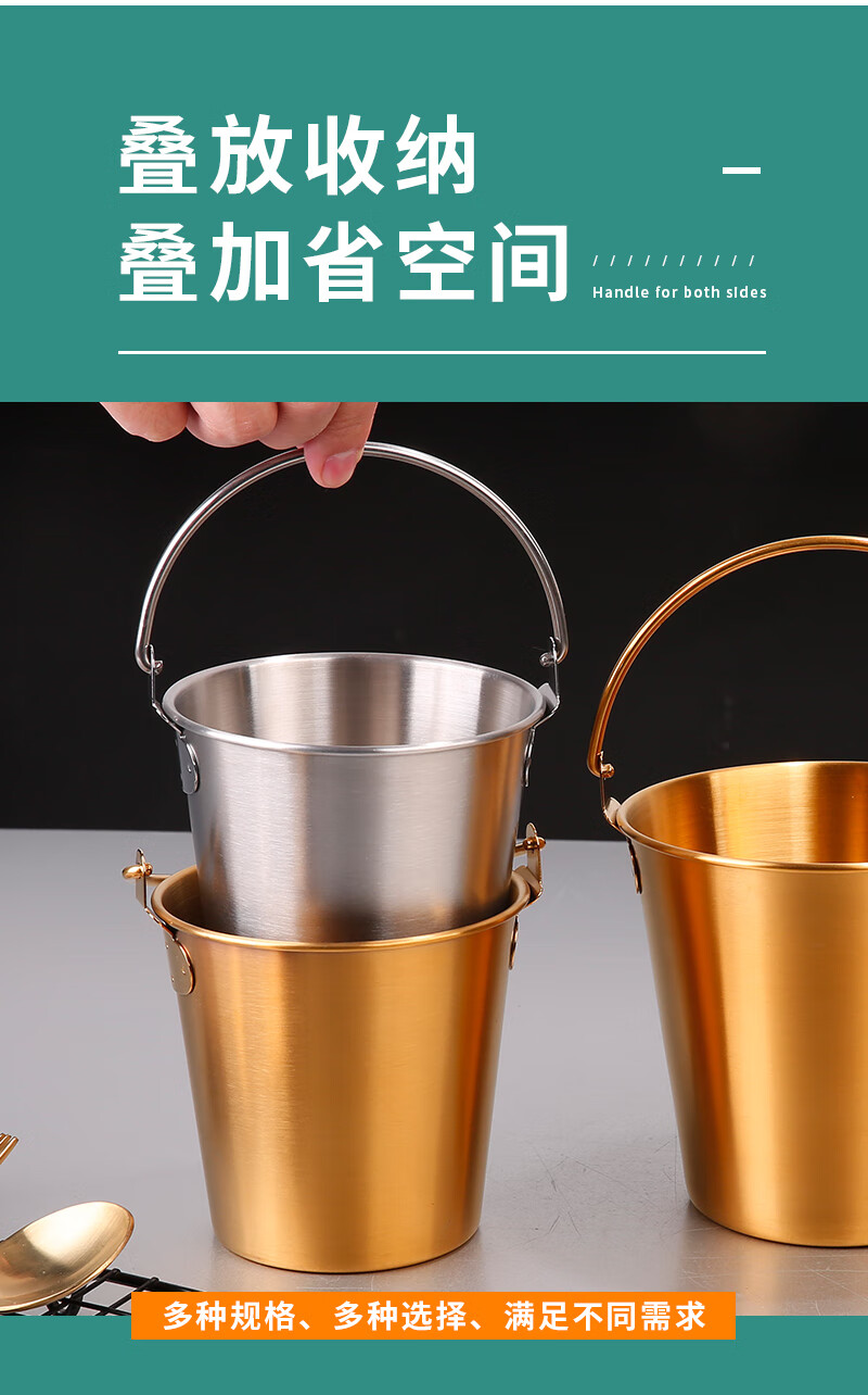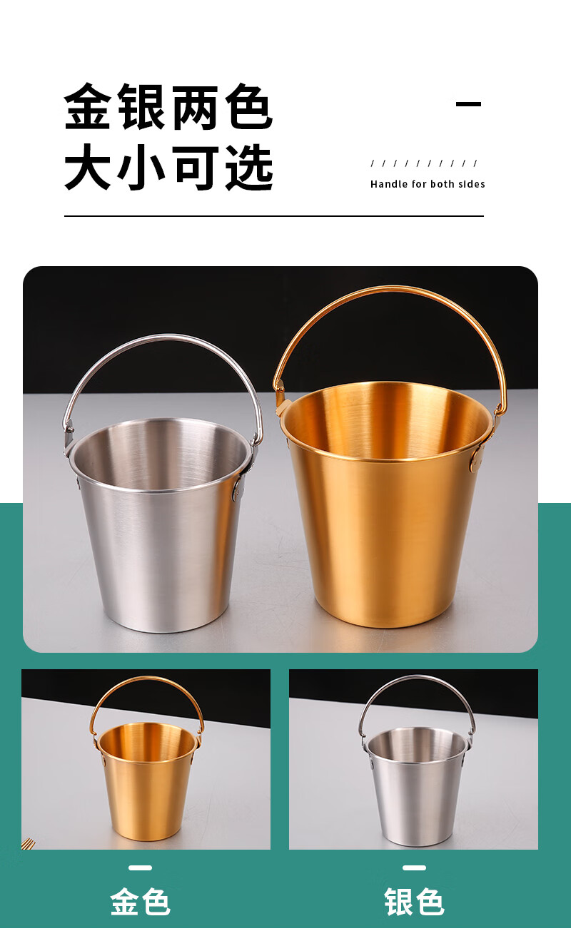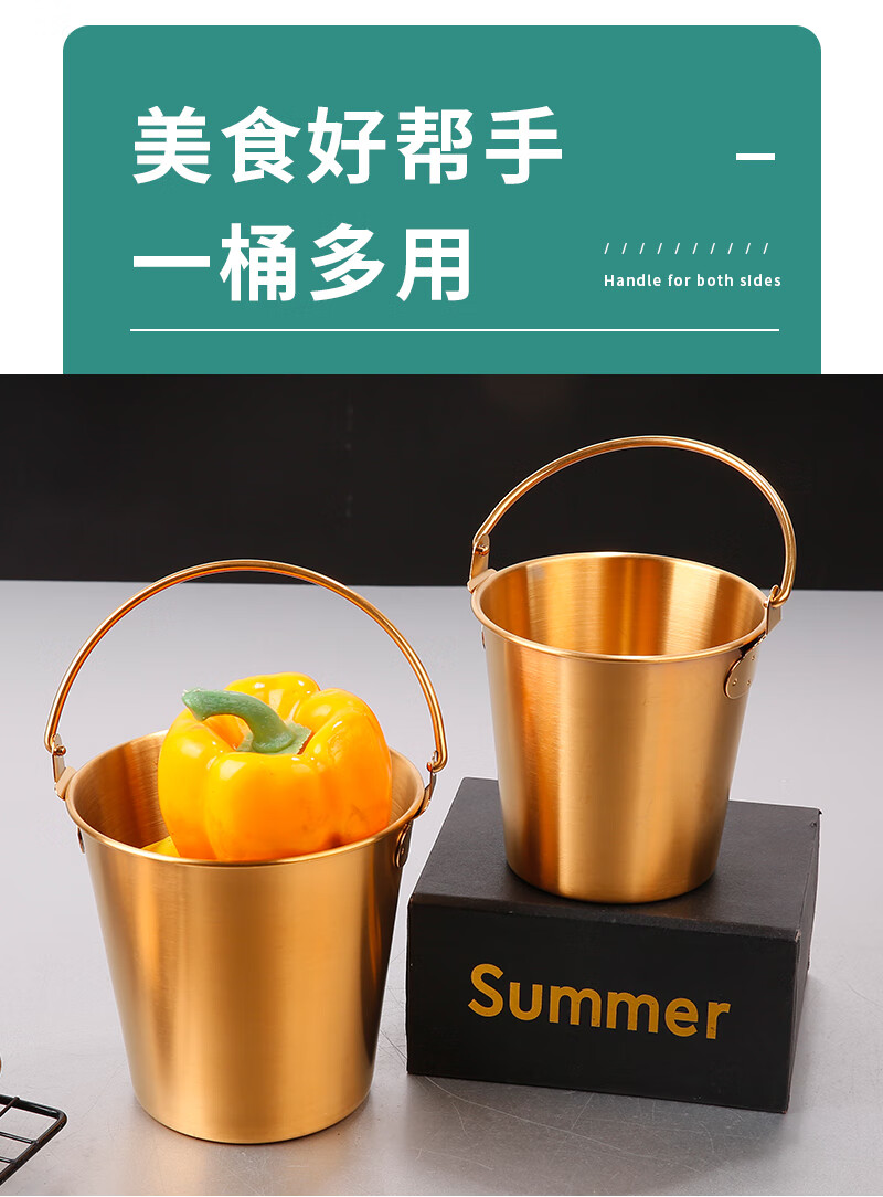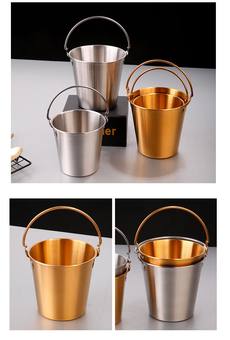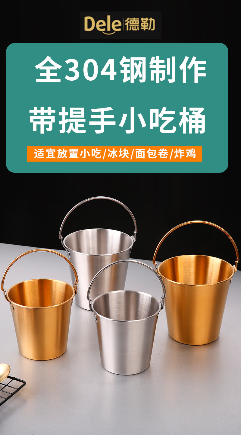 DELE 304 stainless steel ice bucket bar snack bucket French fries fried chicken food bucket fried food container portable ice bucket 304 food grade snack bucket