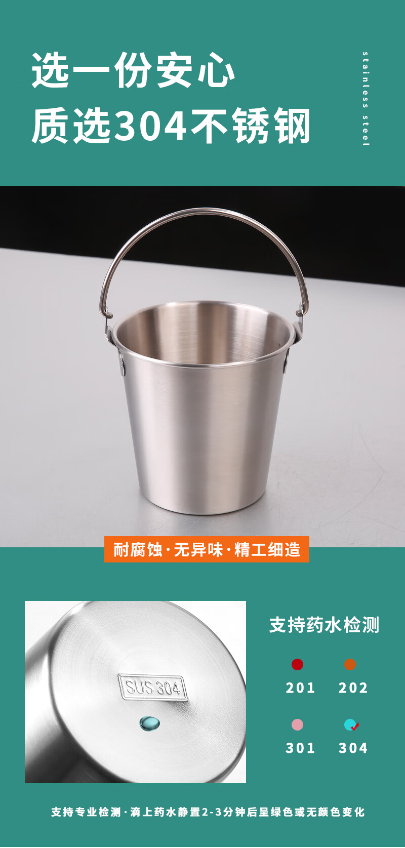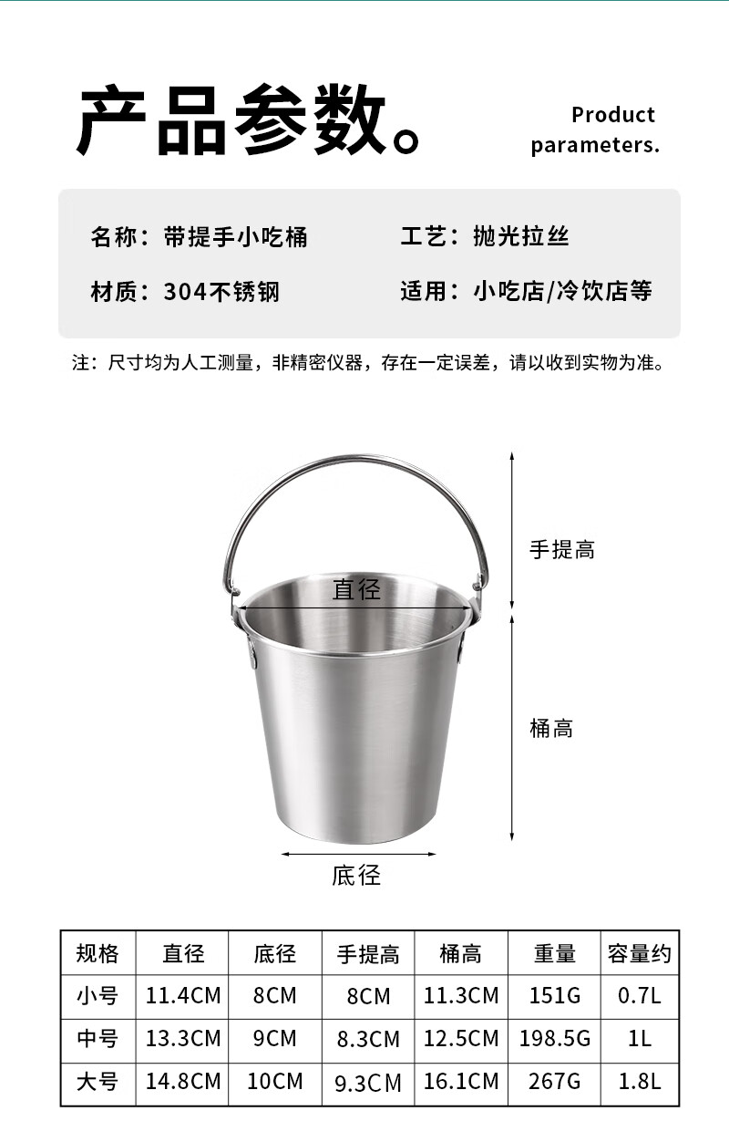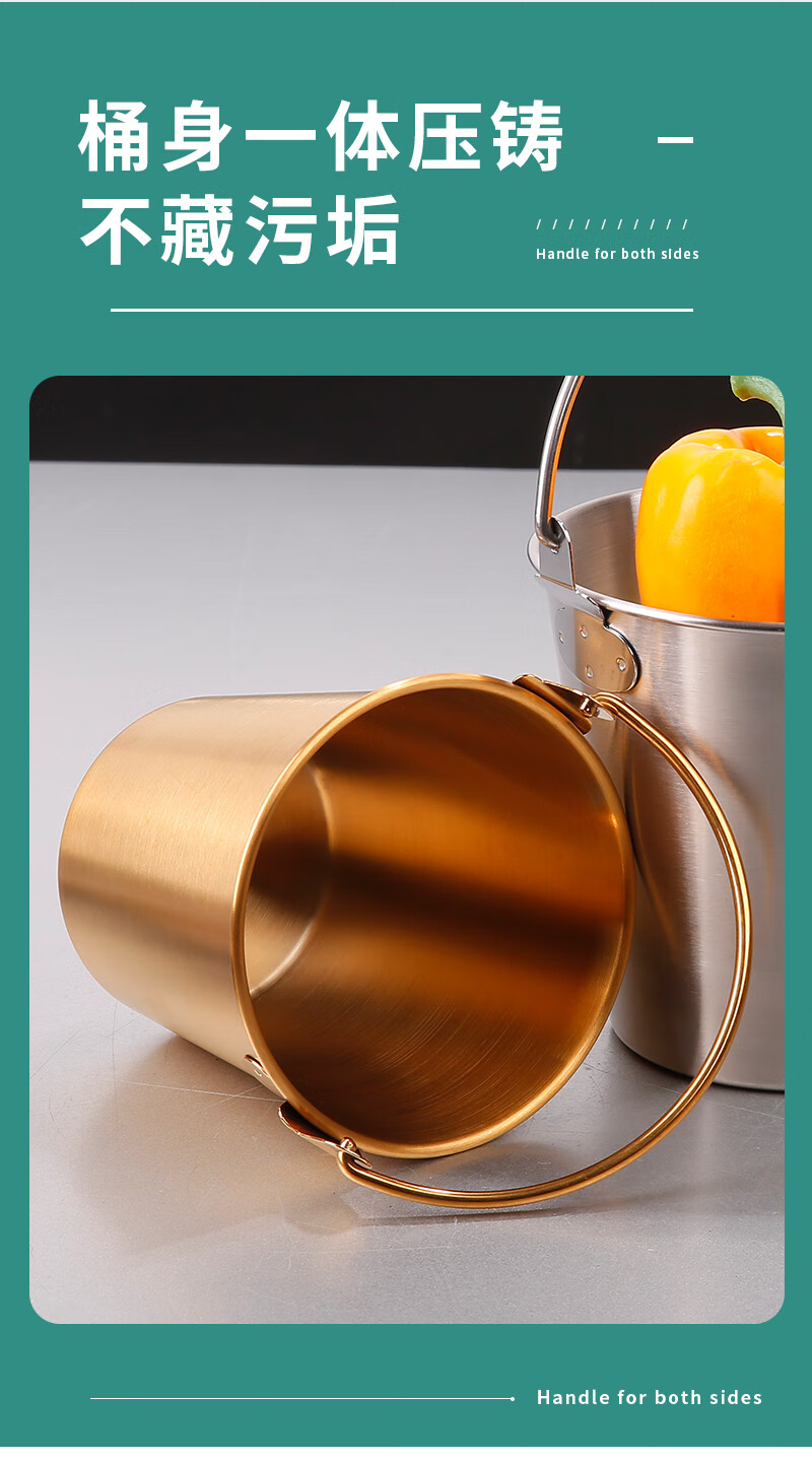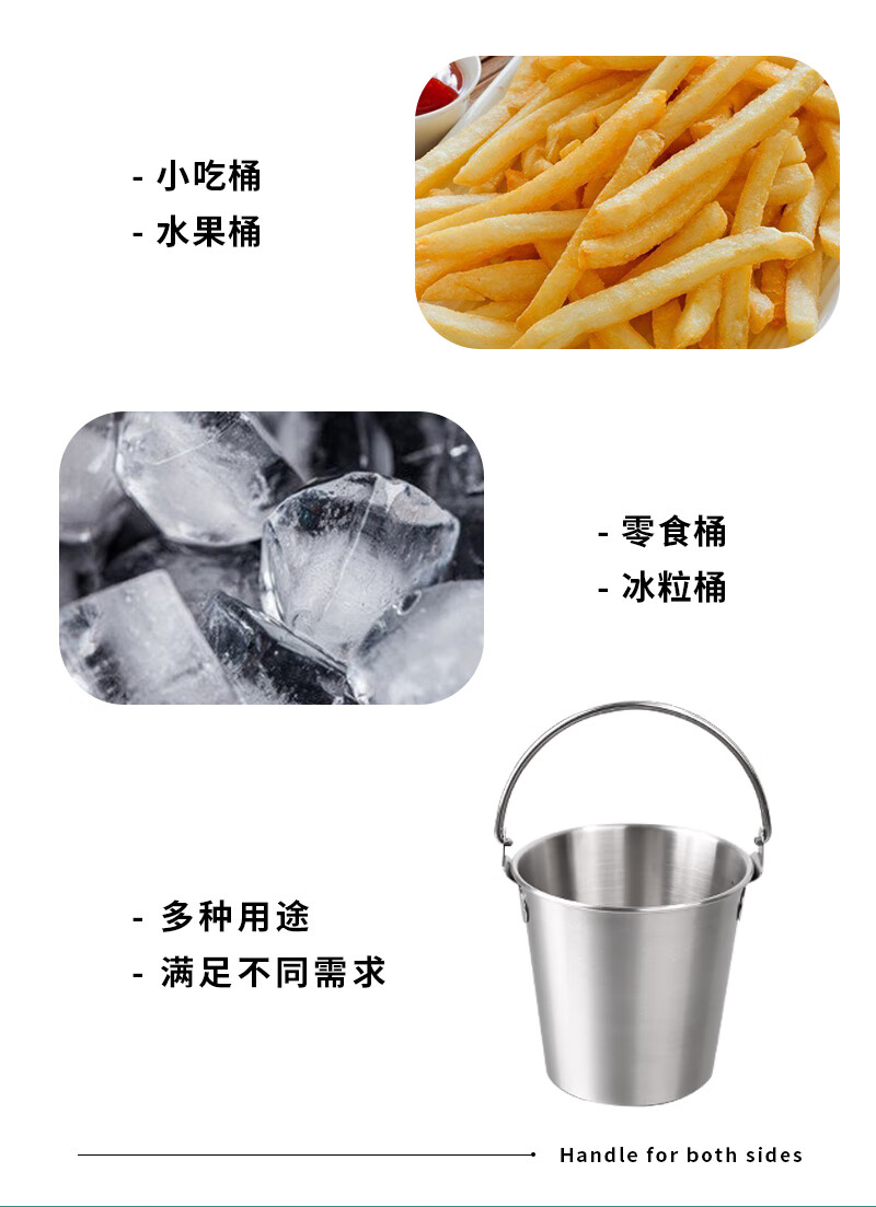 DELE 304 stainless steel ice bucket bar snack bucket French fries fried chicken food bucket fried food container portable ice bucket 304 food grade snack bucket