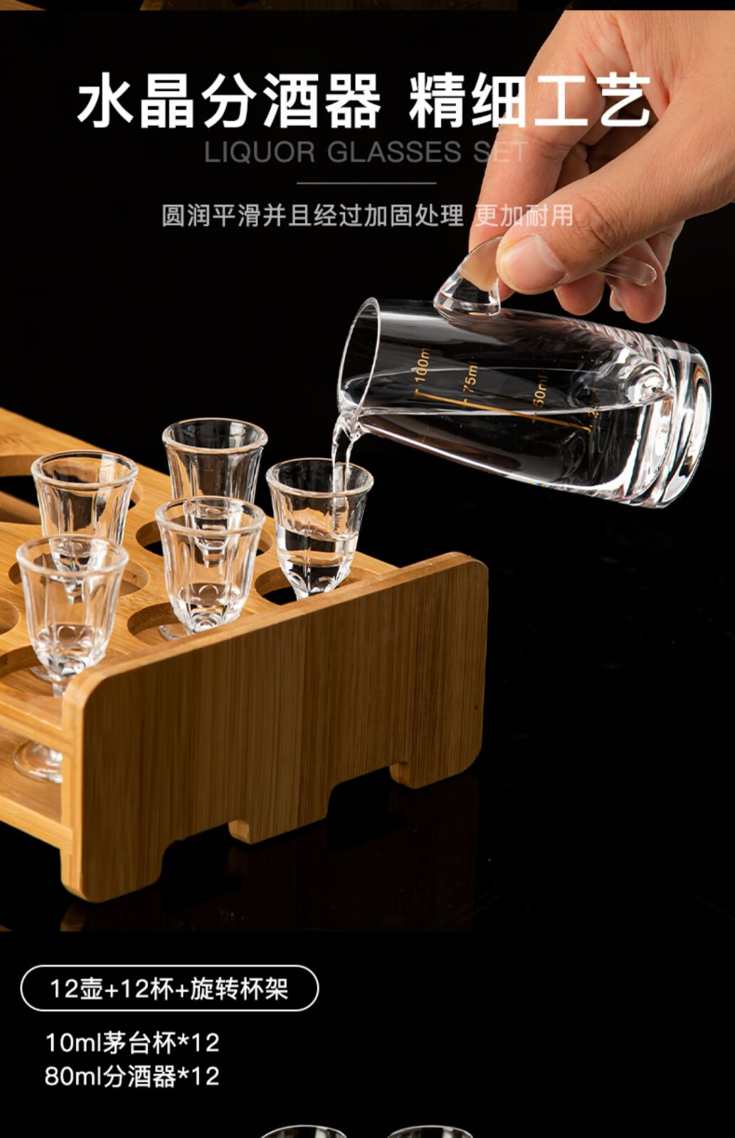 MIDOC classic Moutai cup small wine glass household crystal glass wine dispenser white wine cup one cup Moutai wine set 6 pots 6 cups 100ml+10ml-unlabeled-12 head rack