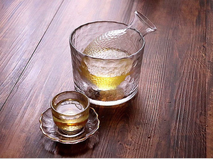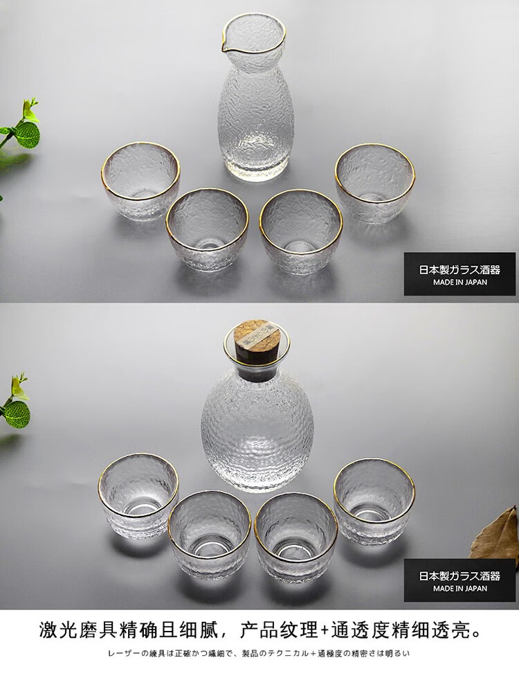 Heisou Japanese-style liquor glass home set, liquor cup, small wine cup, soju cup, sake pot, wine set, gold-rimmed wine glass 50ml, 2 pieces