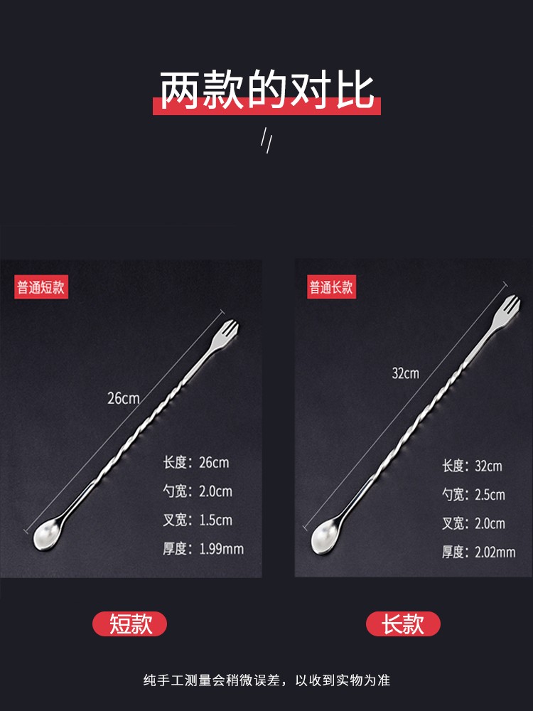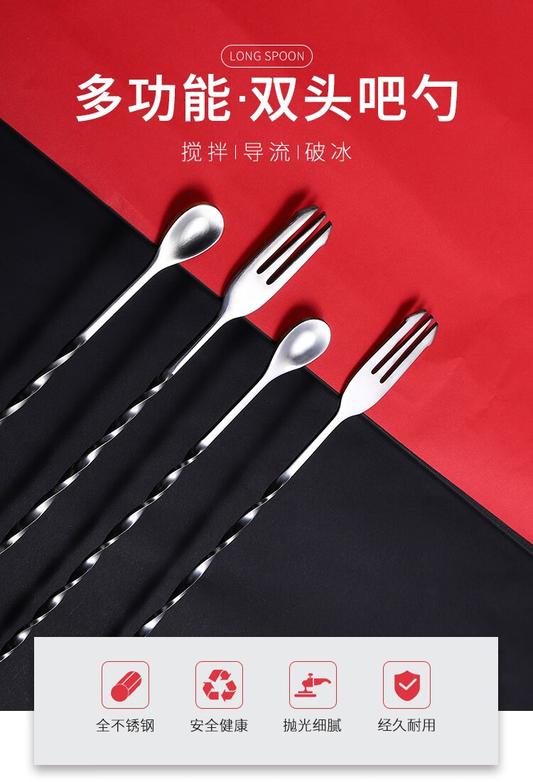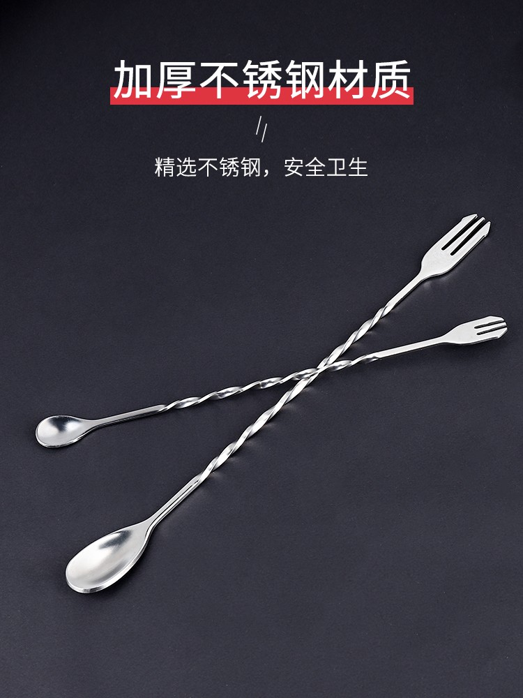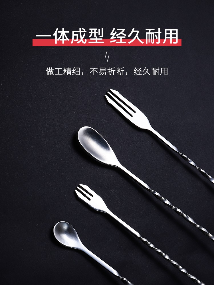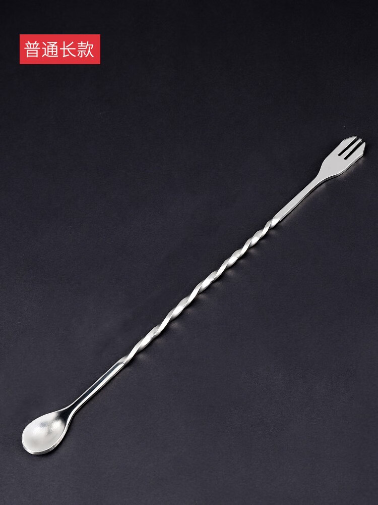 FEiNASi stainless steel long-handled spoon, smoothie spoon, coffee spoon, bar spoon, mixing spoon, fork and spoon, short bar spoon (25.7cm)