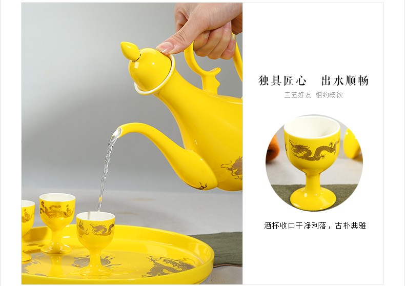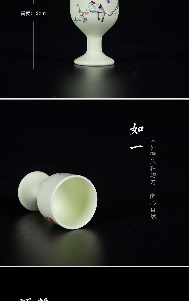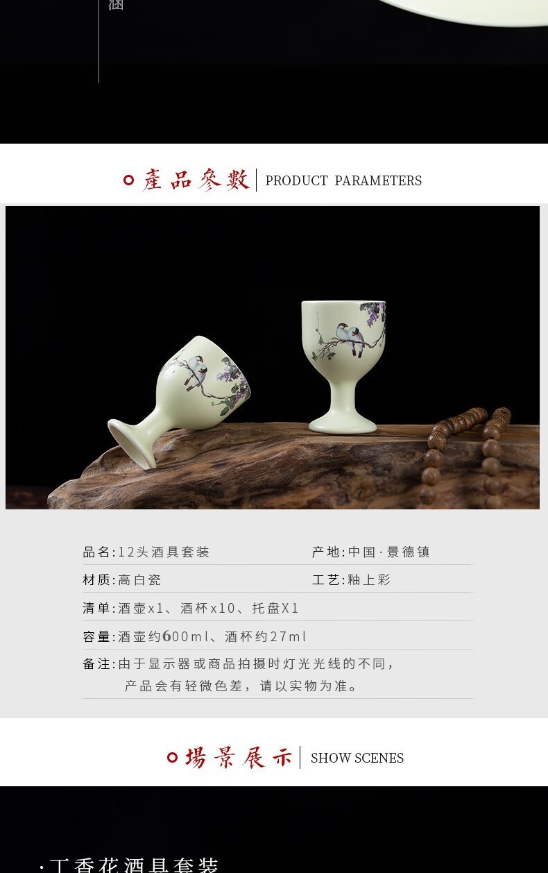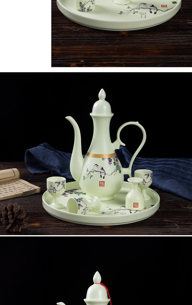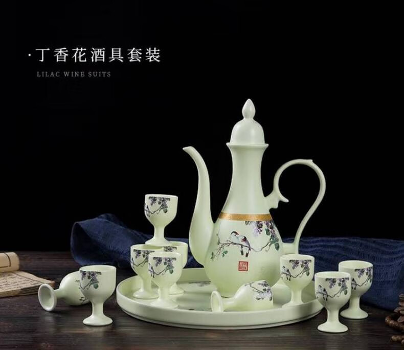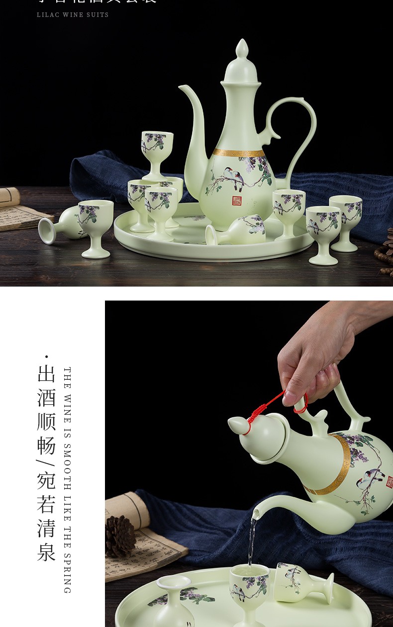 Hongying Ceramics Jingdezhen Chinese Antique Ancient Liquor Set Ceramic Small Wine Glass Goblet One-cup Wine Pitcher Wine Cup Yellow Wine Cup with Tray Gift Box Lilac Wine Set 10 Cups 1 Pot 1 Tray
