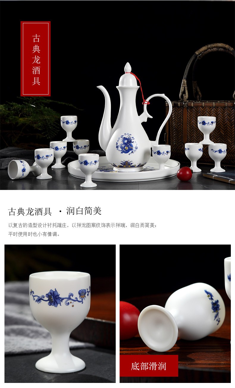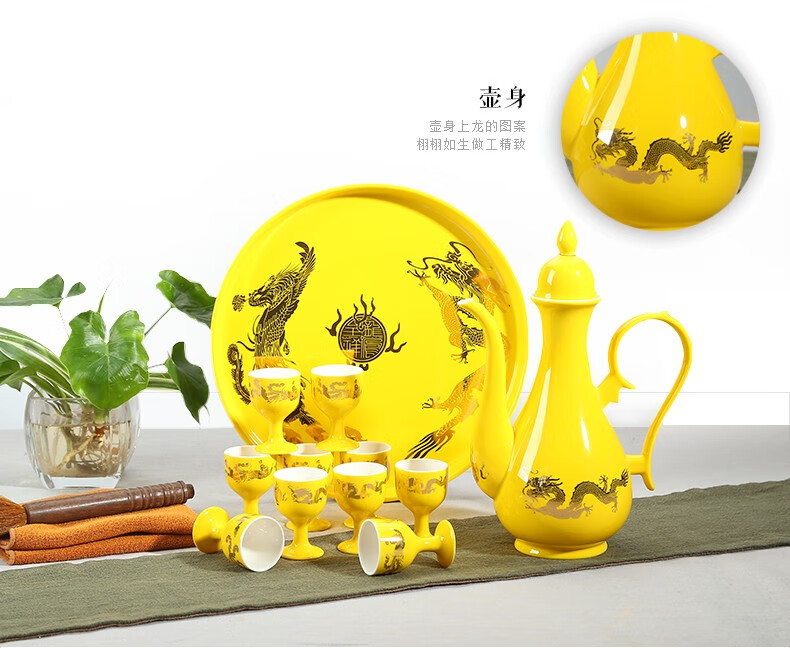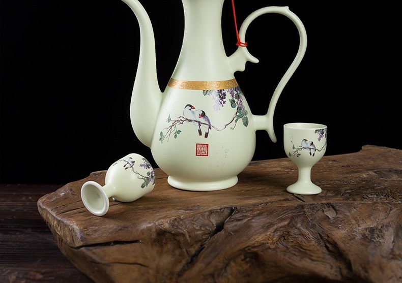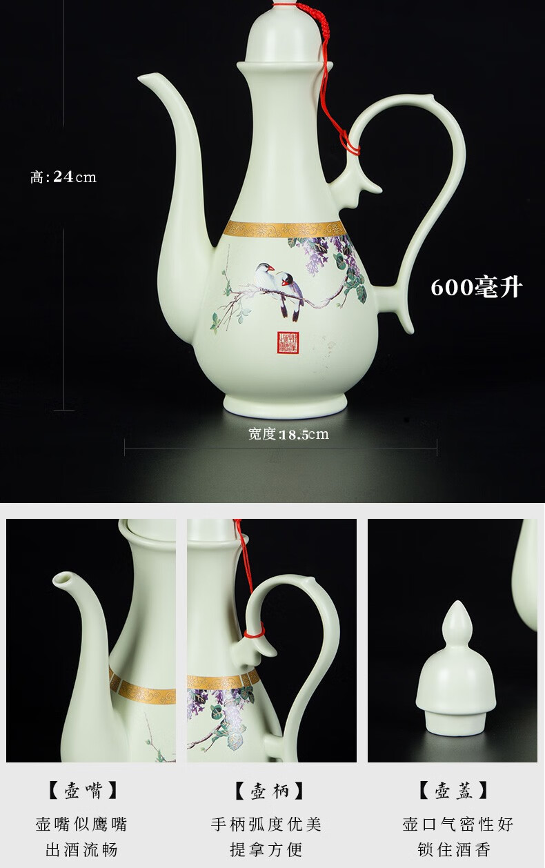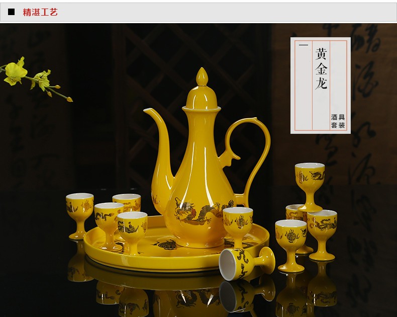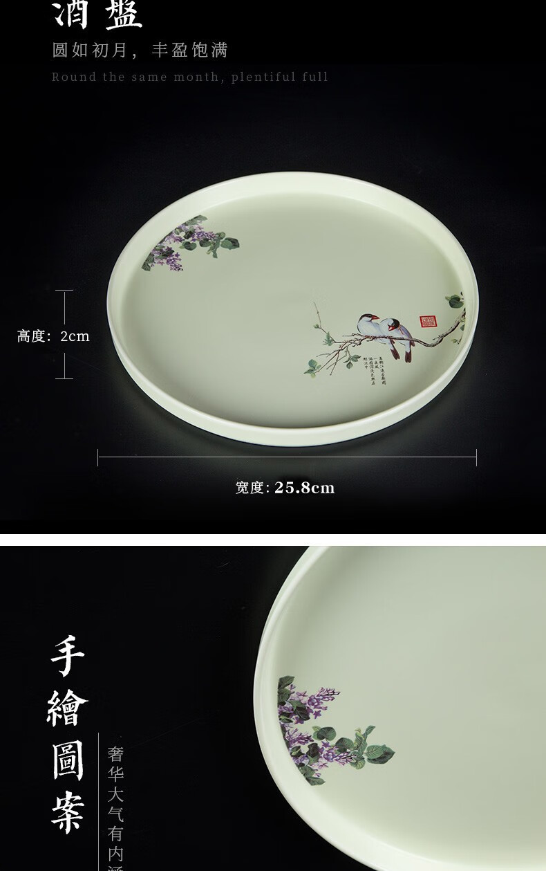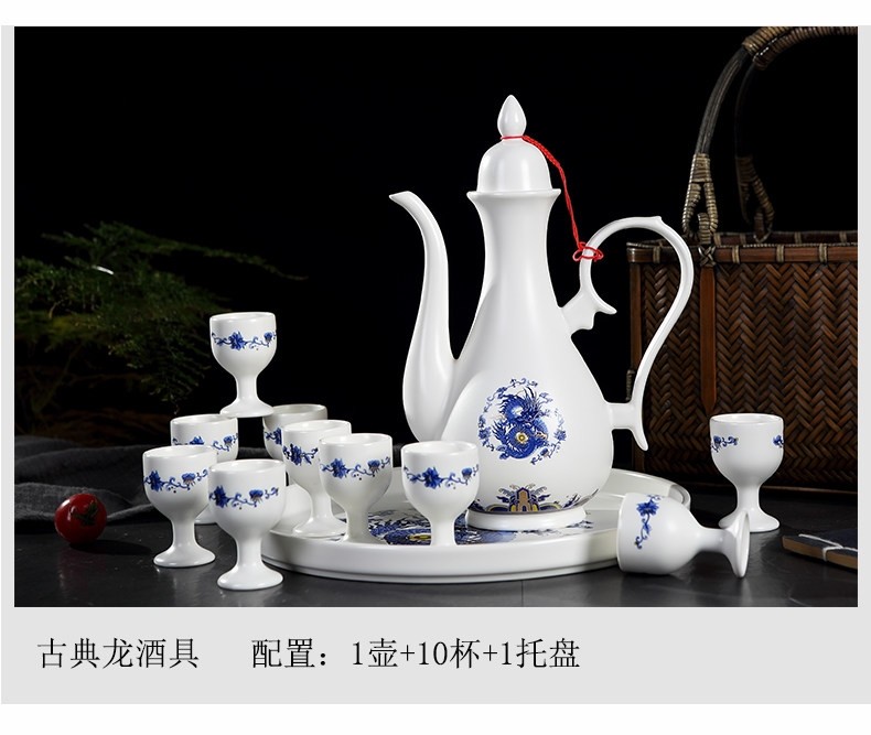 Hongying Ceramics Jingdezhen Chinese Antique Ancient Liquor Set Ceramic Small Wine Glass Goblet One-cup Wine Pitcher Wine Cup Yellow Wine Cup with Tray Gift Box Lilac Wine Set 10 Cups 1 Pot 1 Tray