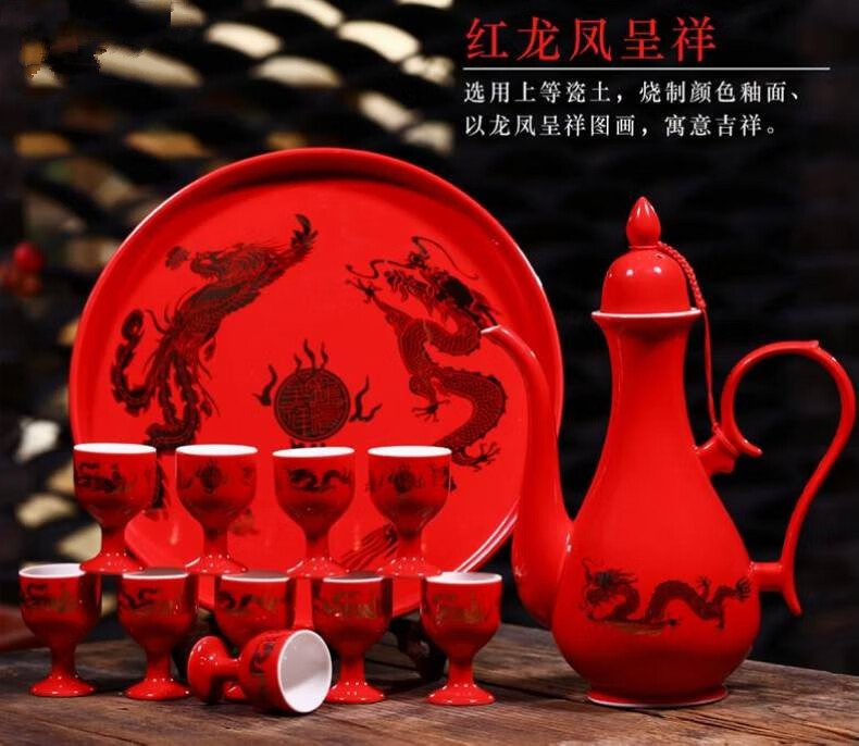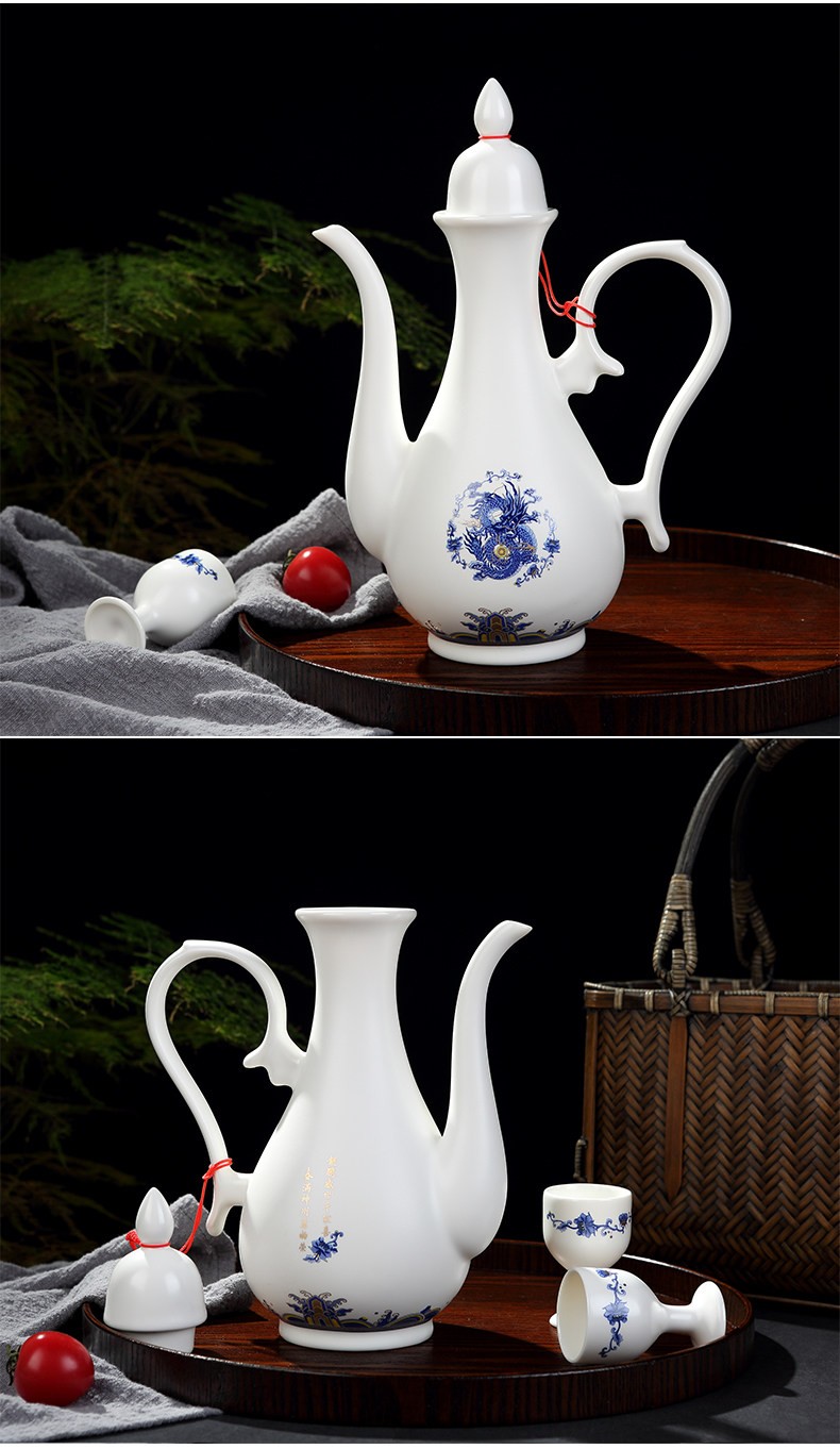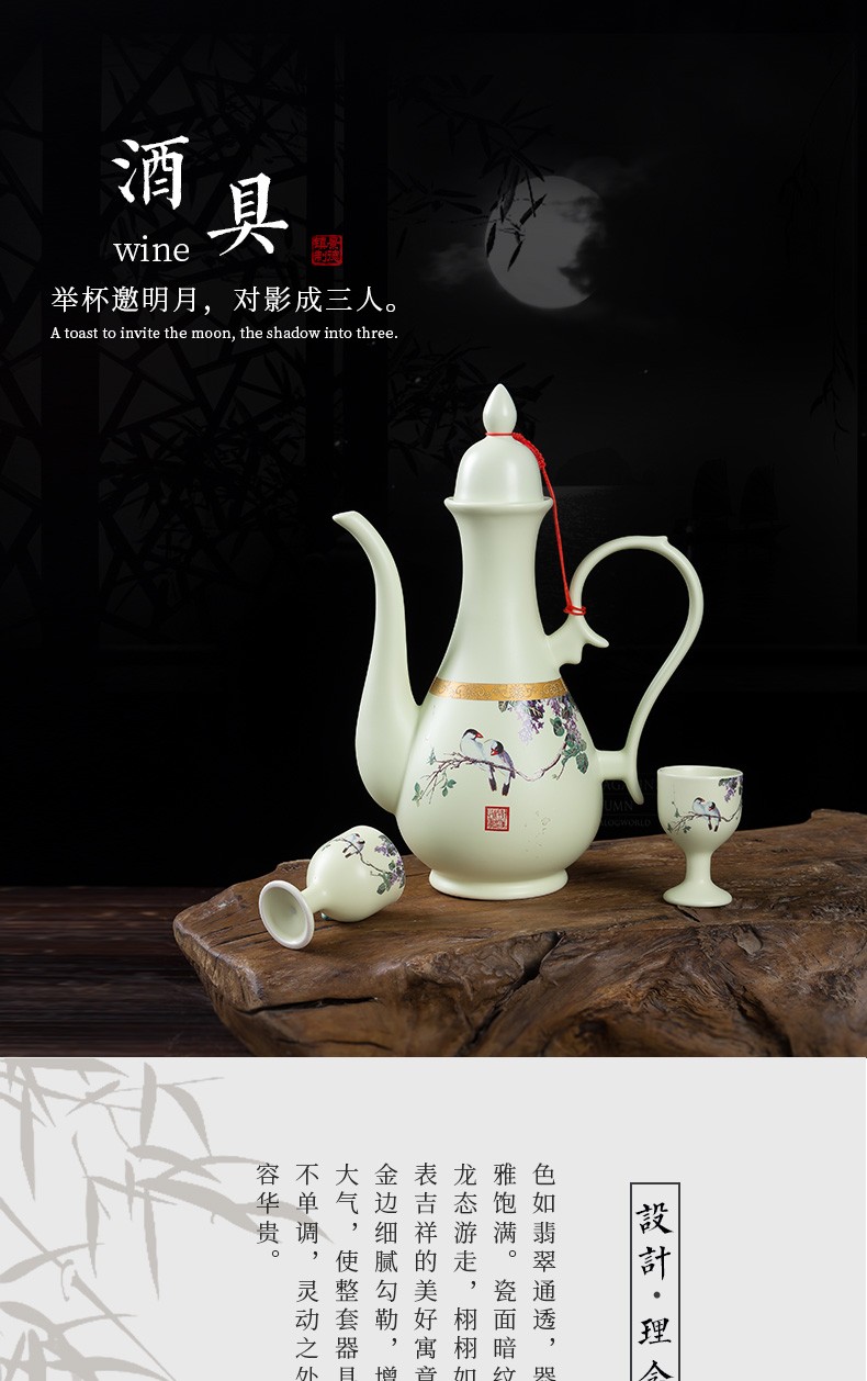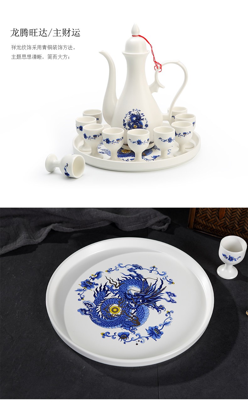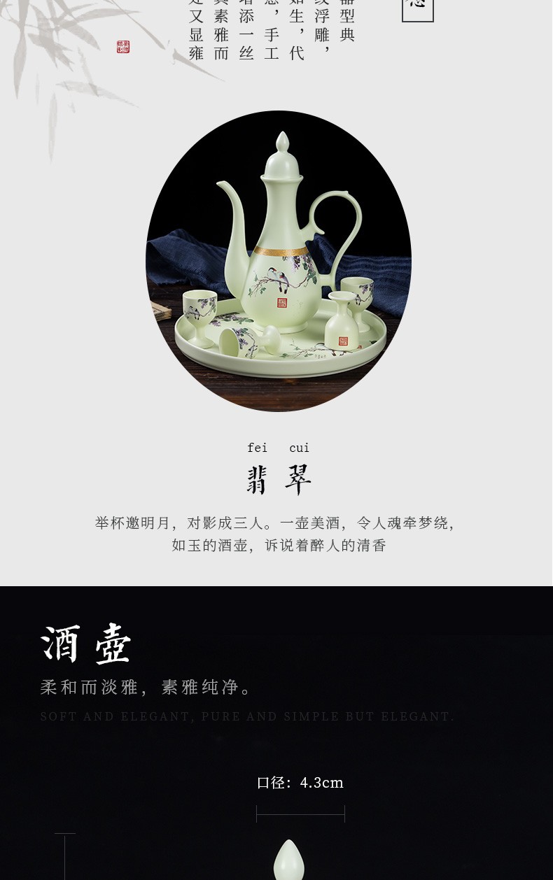 Hongying Ceramics Jingdezhen Chinese Antique Ancient Liquor Set Ceramic Small Wine Glass Goblet One-cup Wine Pitcher Wine Cup Yellow Wine Cup with Tray Gift Box Lilac Wine Set 10 Cups 1 Pot 1 Tray