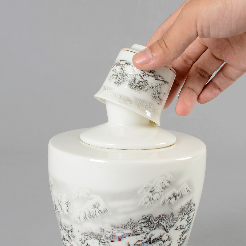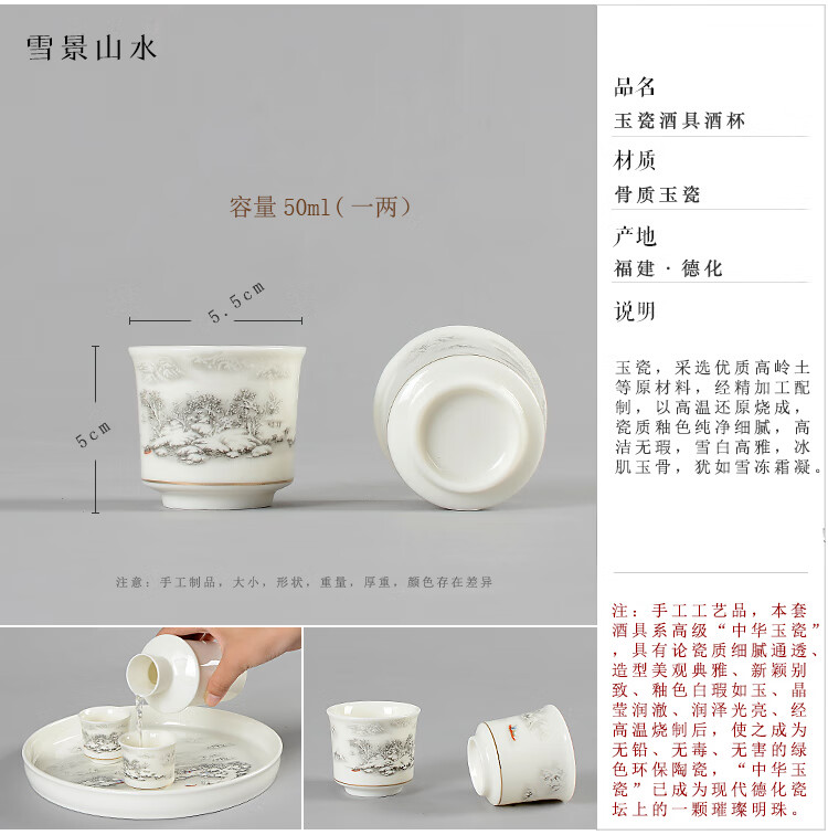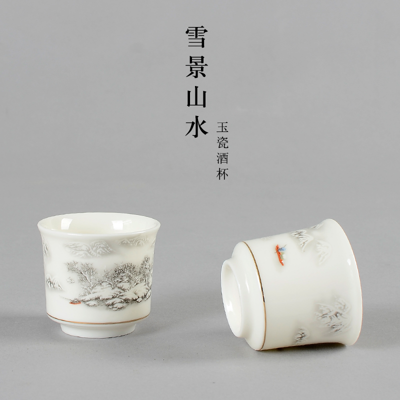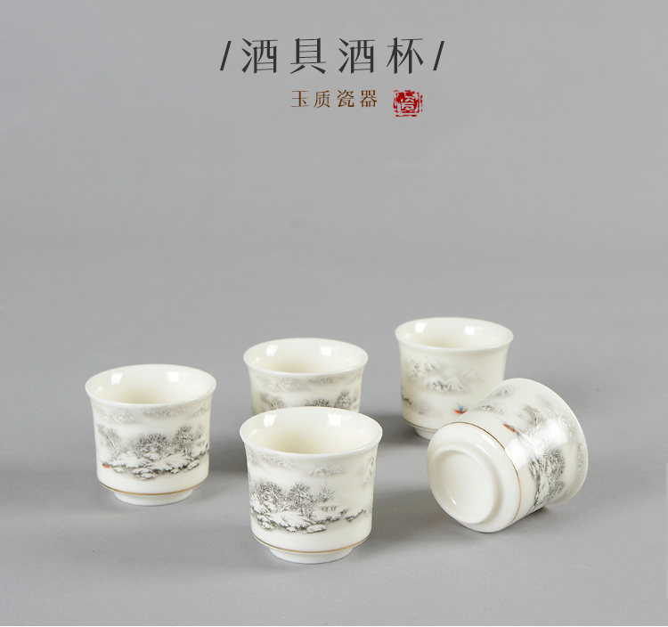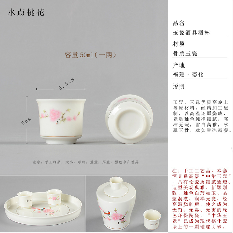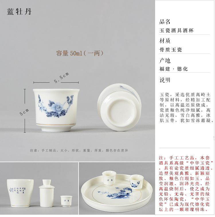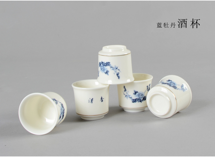 Ceramic small wine glass, white wine dispenser set, wine cup, sake yellow single wine glass, blue and white peony 50ml
