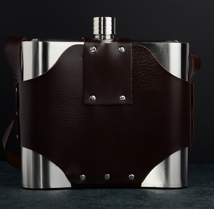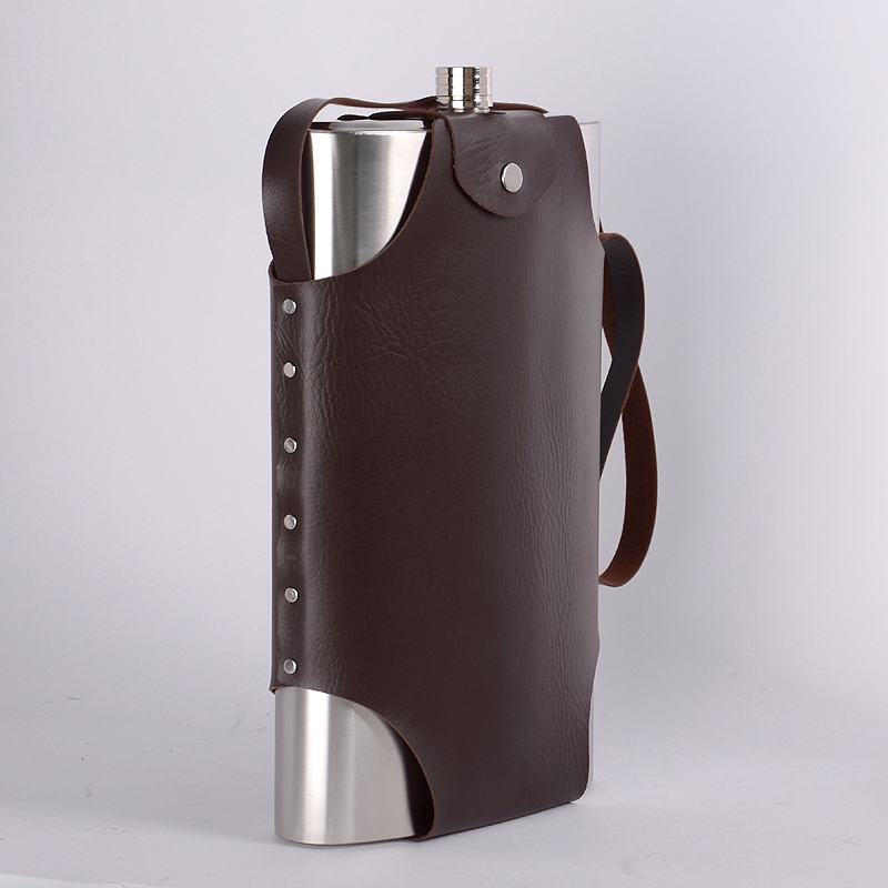 Yingrong Stainless Steel Wine Bottle, Portable Outdoor Portable German Steel Flat Wine Bottle, Iron Wine Set, 5 Jin Jin is equal to 0.5 kg, with leather case and funnel, 2 wine glasses