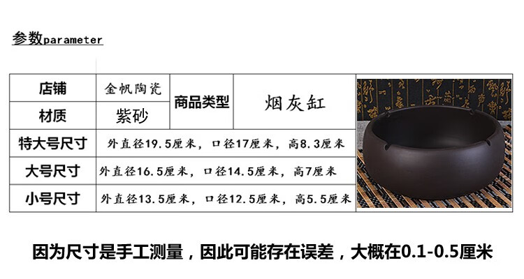 Yingrong purple sand retro ashtray extra large ceramic creative personality KTV office Internet cafe home deep ashtray gift JF-extra large
