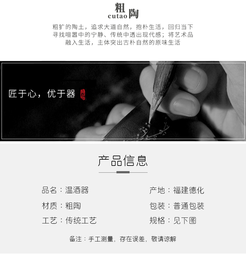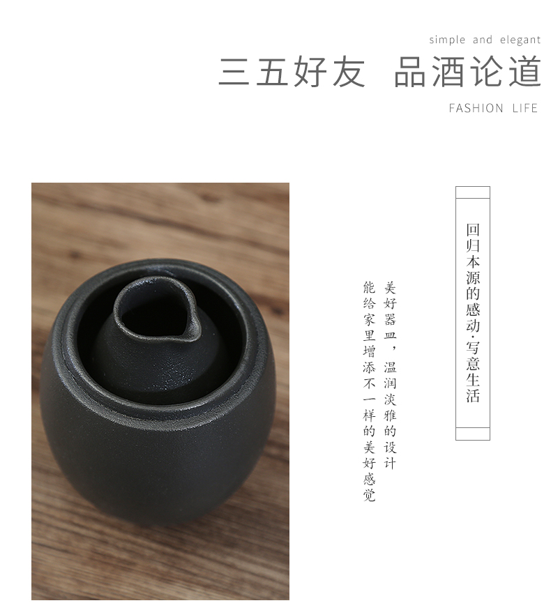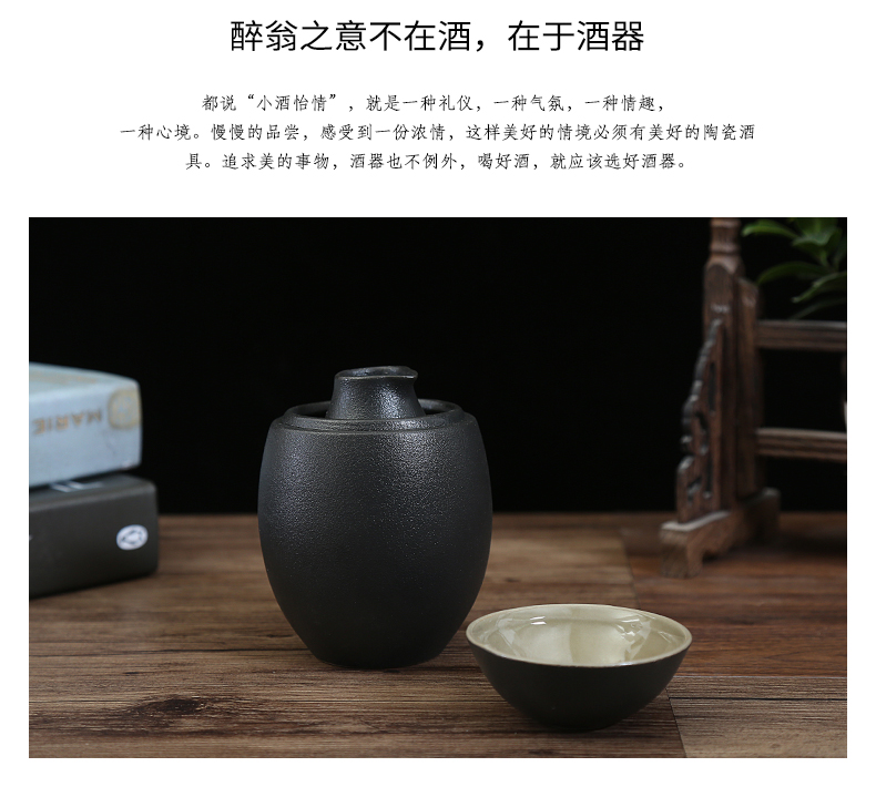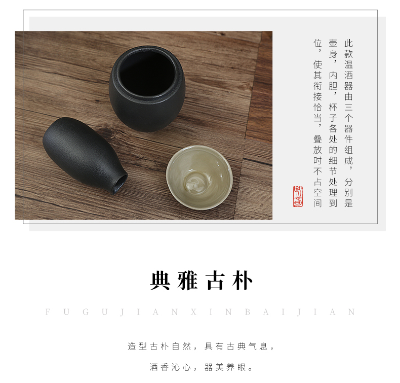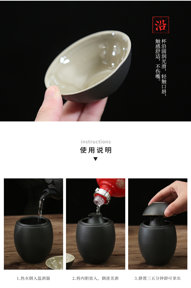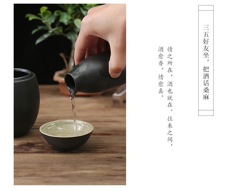 Qixinbian Wine Warmer Antique Wine Warmer Japanese Wine Glass Wine Pot Hot Wine Pot Ceramic Household Wine Boiler White Wine Sake Yellow Wine Black Pottery Wine Warmer 125ML Small Arena Wine Warmer