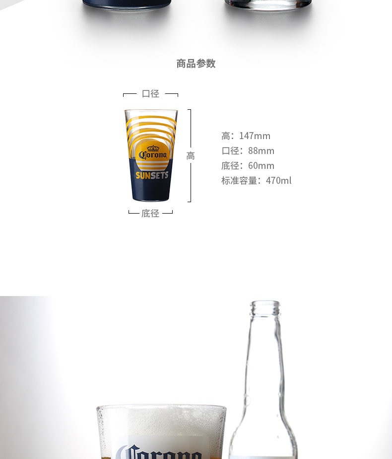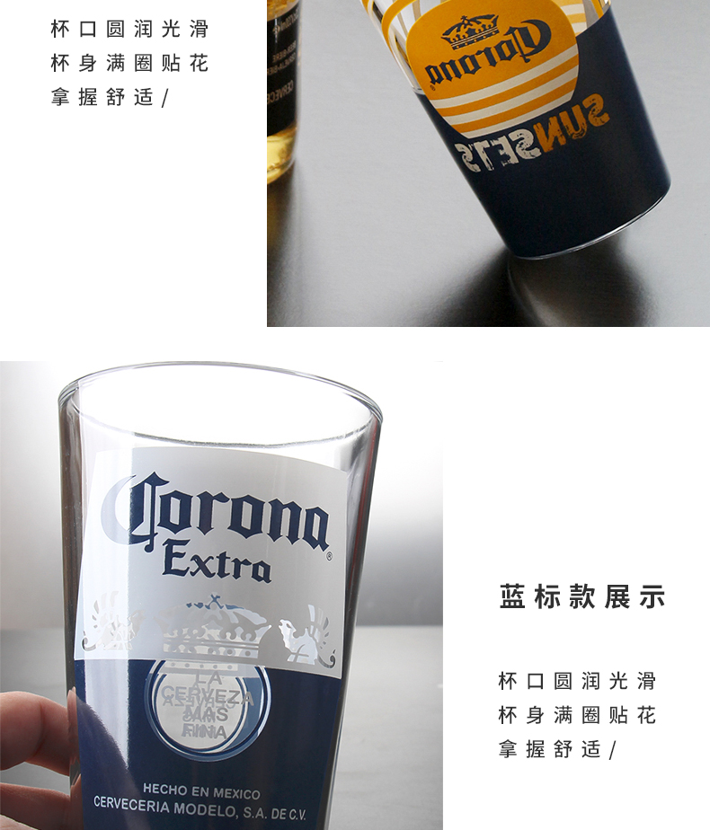 (Yi Nian Fangyuan) supports customization of Corona beer glass, wide-mouth glass, craft beer glass, beverage glass, juice glass, bar shaker glass 470ml, blue label 470ml, 4 pieces