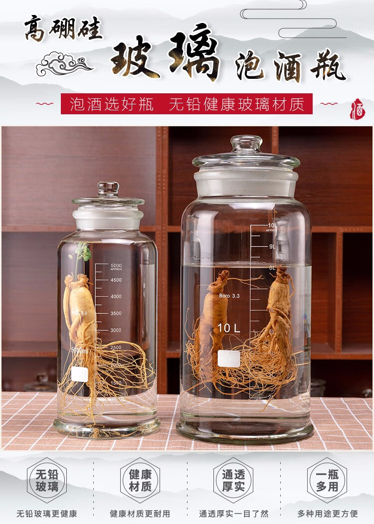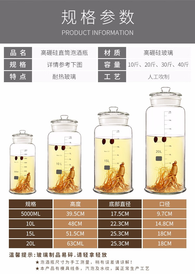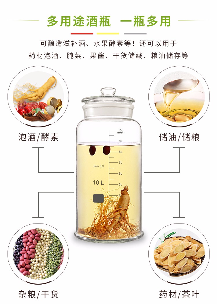 High borosilicate glass bubble wine bottle 10 Jin Jin is equal to 0.5 kg 20 Jin Jin is equal to 0.5 kg Graduated medicinal wine bottle Glass bottle Bubble wine jar Grape wine bottle Enzyme bottle Green plum and bayberry bubble wine jar Glass jar 10 Jin Jin is equal to 0.5 kg Single bottle