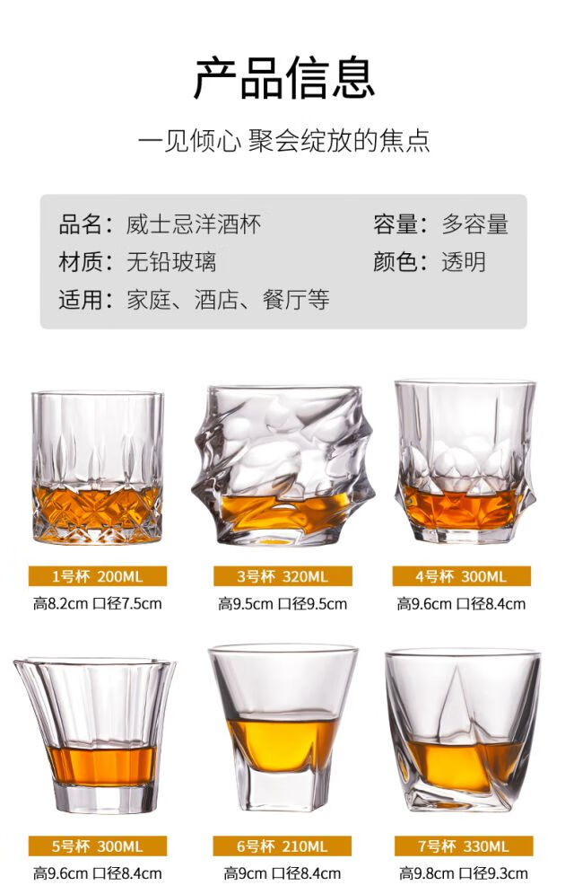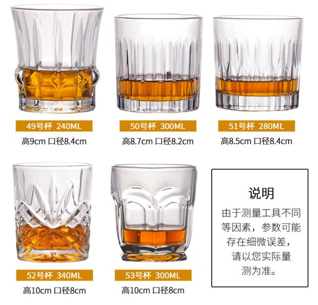 Foreign wine whiskey glass home beer glass cup set European creative spirit glass red wine wine set Taoyaner Taoyaner striped whiskey cup 300ml