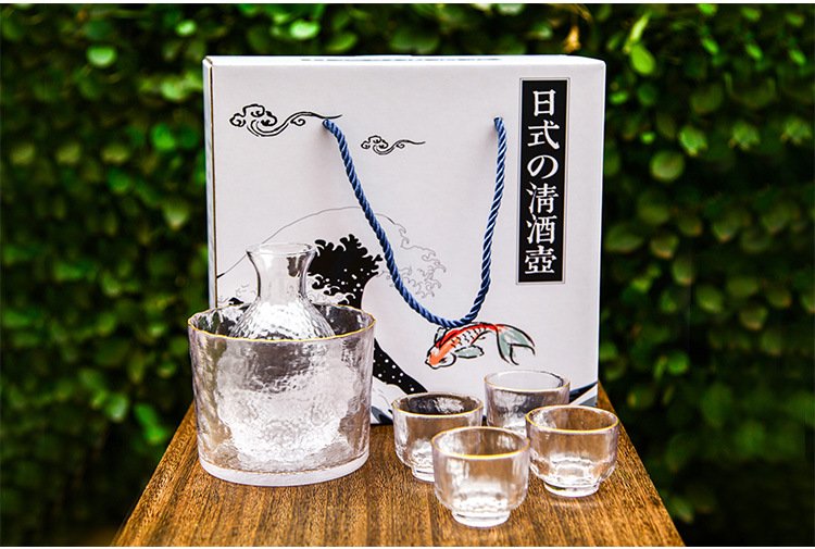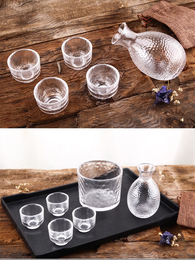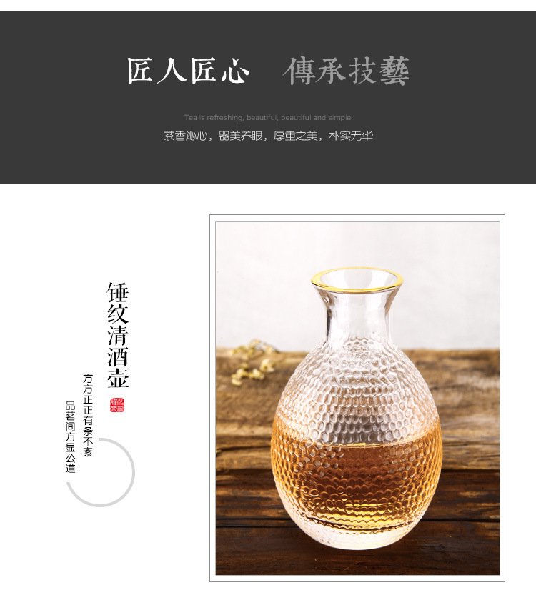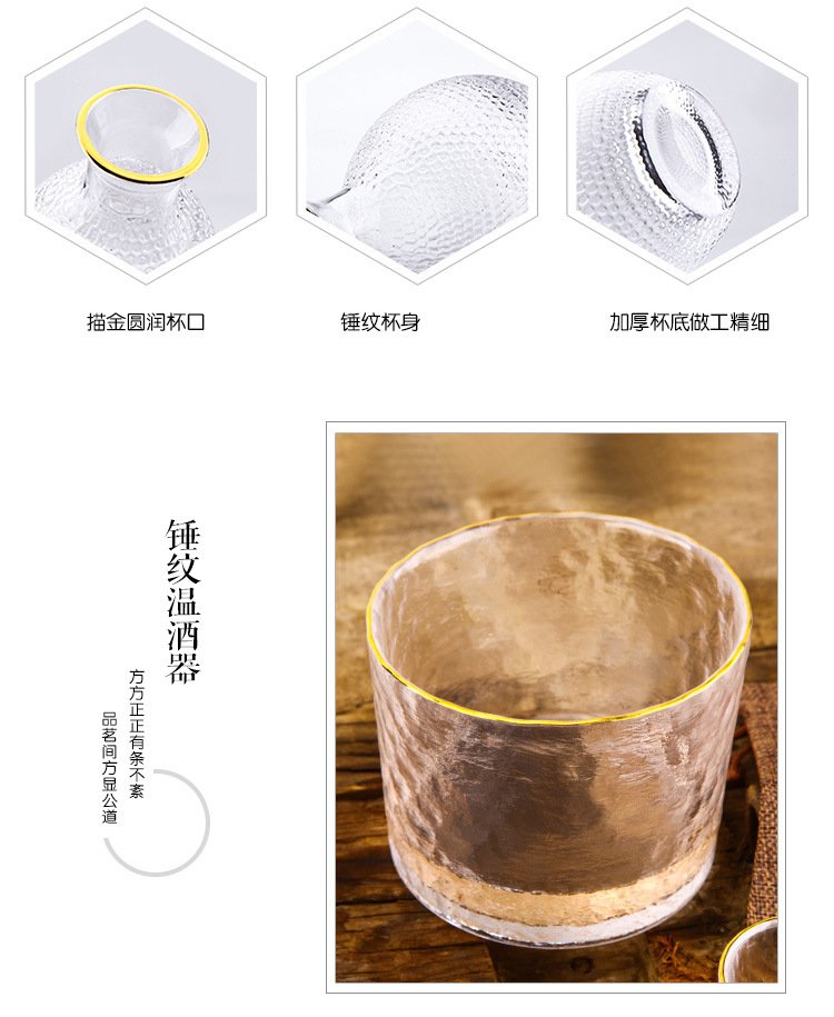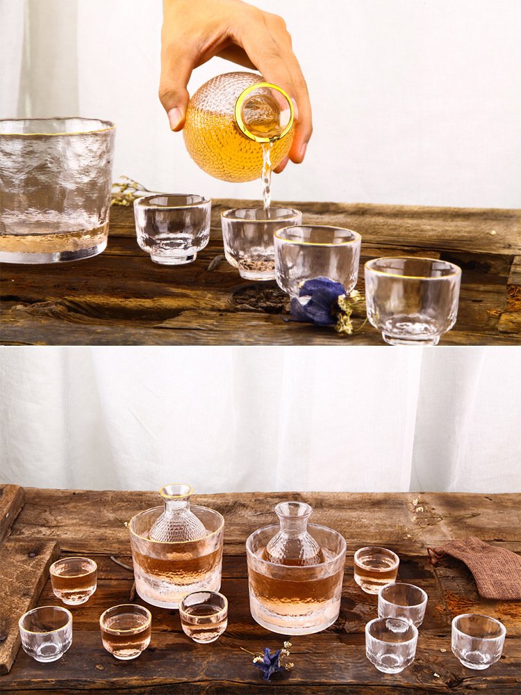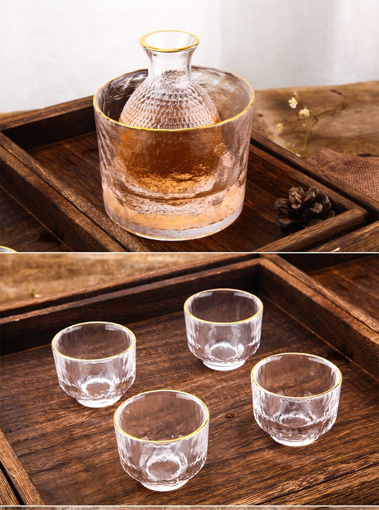 Katav Japanese-style sake pot set hammered glass cup sake cup yellow wine cup wine warmer white wine small cup red wine wine set wine divider yellow wine cup jug Japanese-style sake pot 1 pot 4 cups + wine warmer set (gold pattern)