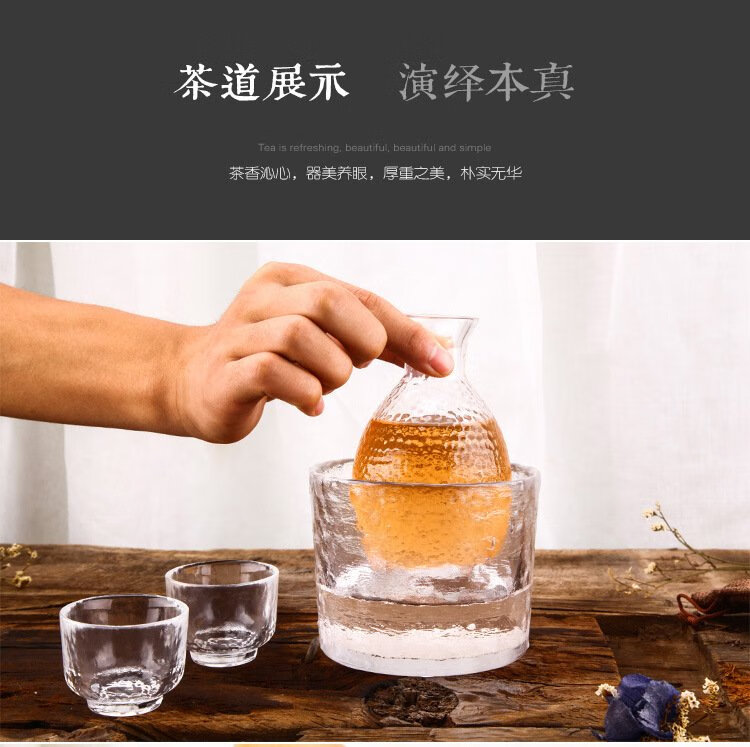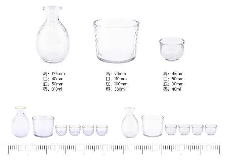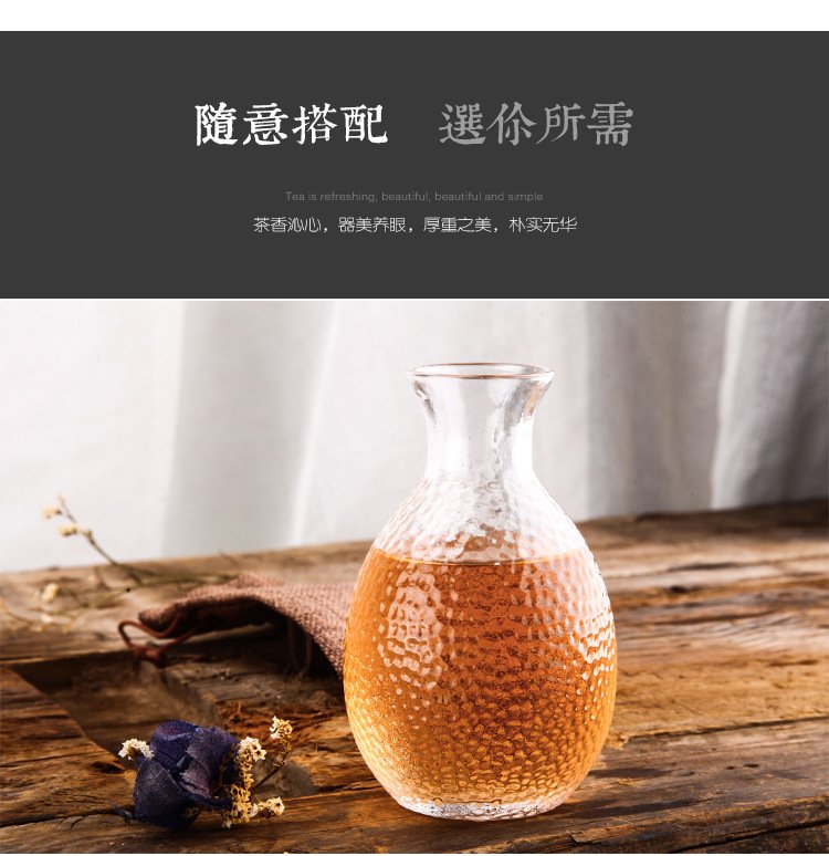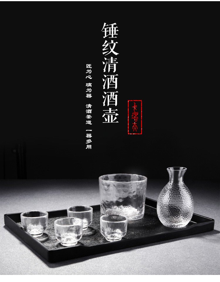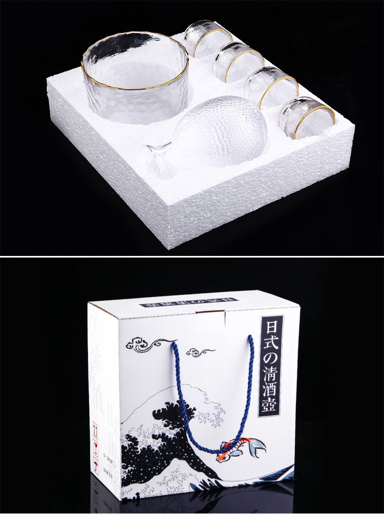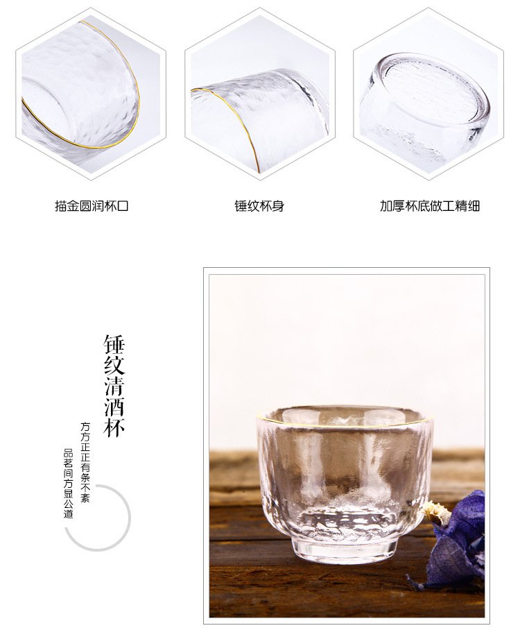 Katav Japanese-style sake pot set hammered glass cup sake cup yellow wine cup wine warmer white wine small cup red wine wine set wine divider yellow wine cup jug Japanese-style sake pot 1 pot 4 cups + wine warmer set (gold pattern)