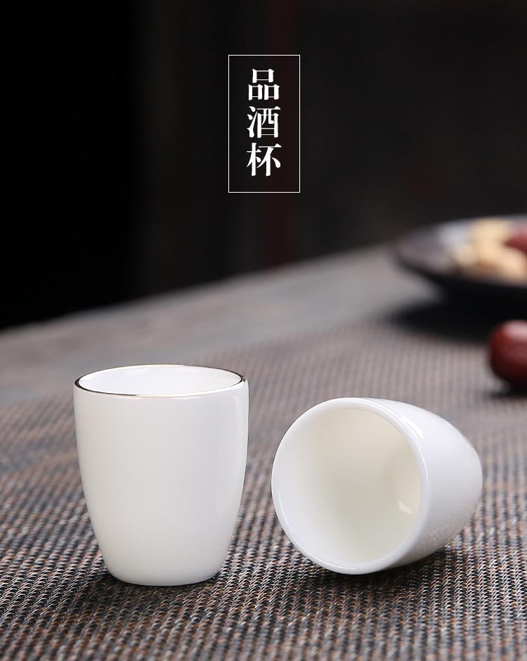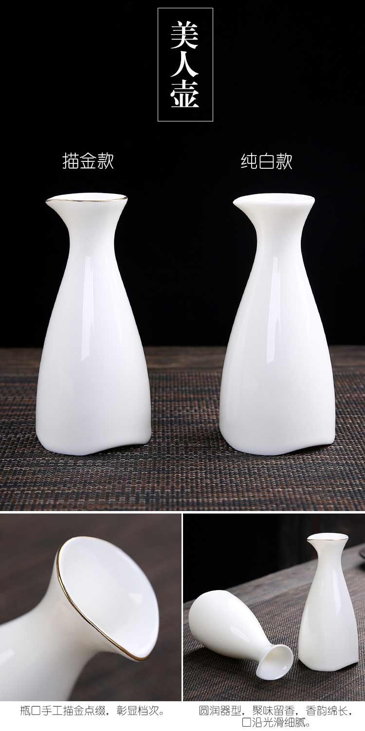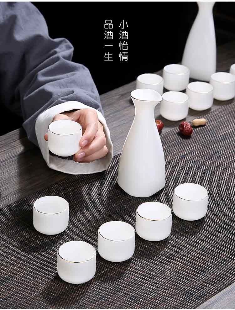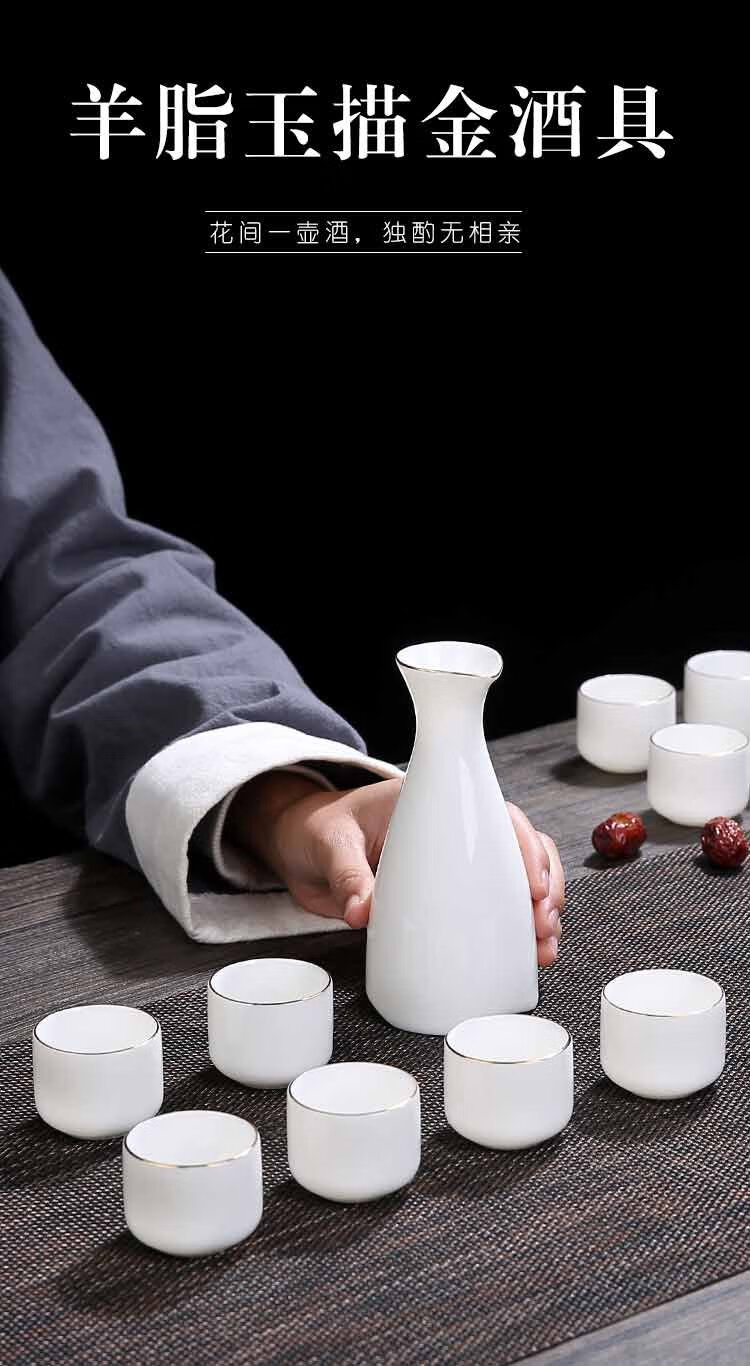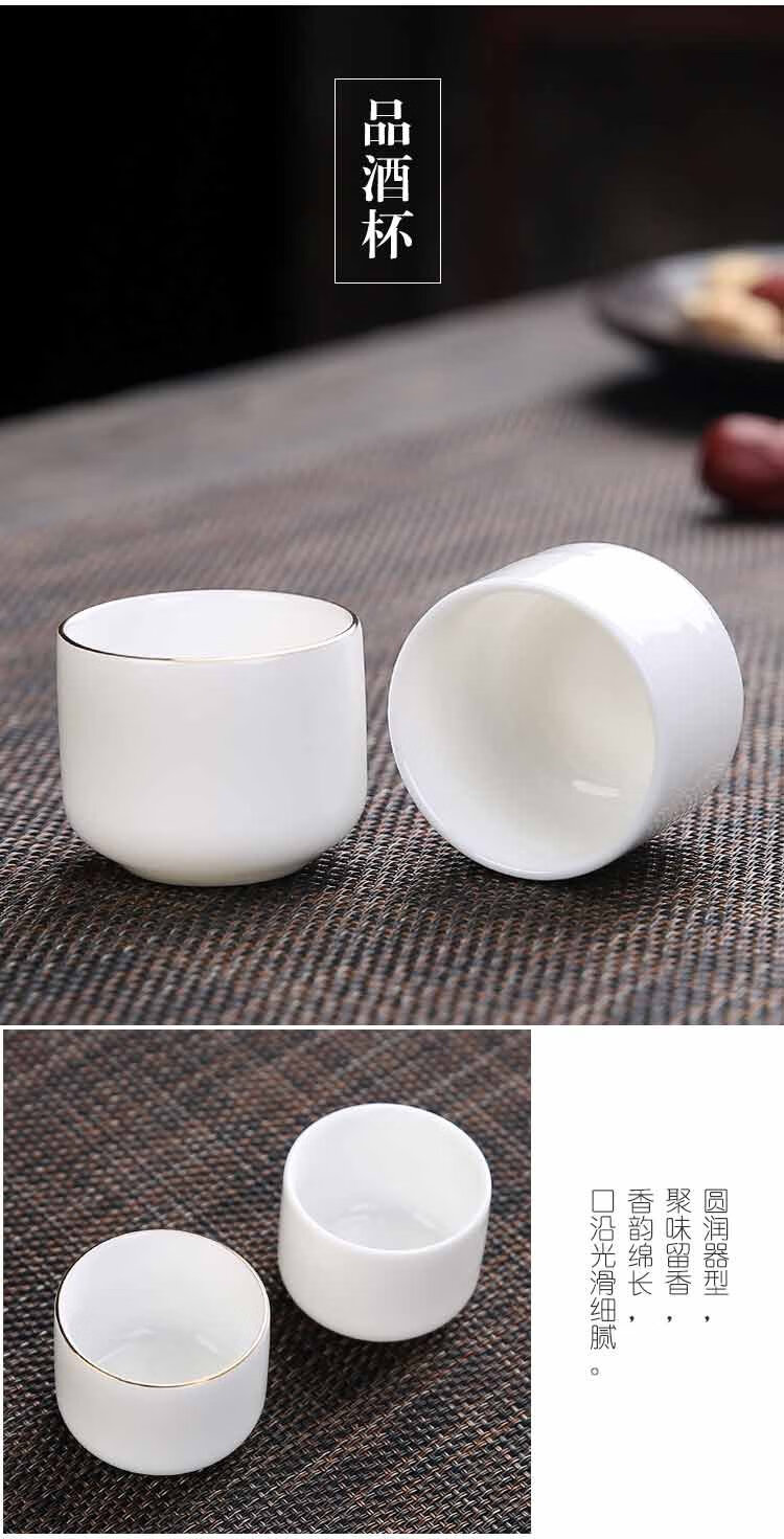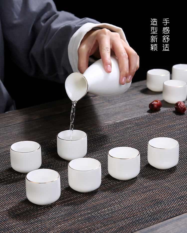 Bi Fang utensils Dehua mutton-fat jade white porcelain wine set set with gold tracing, small wine cup, half Jin Jin is equal to 0.5 kg, sake and white wine divider, three liang ceramic small wine cup set, beauty pot, one pot, 6 cups - gold tracing style (flask 170 ml)