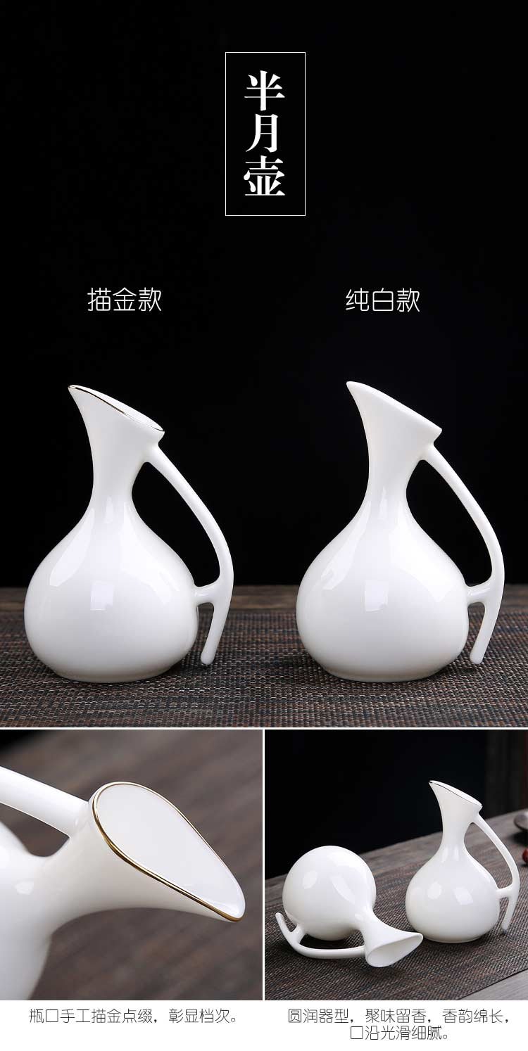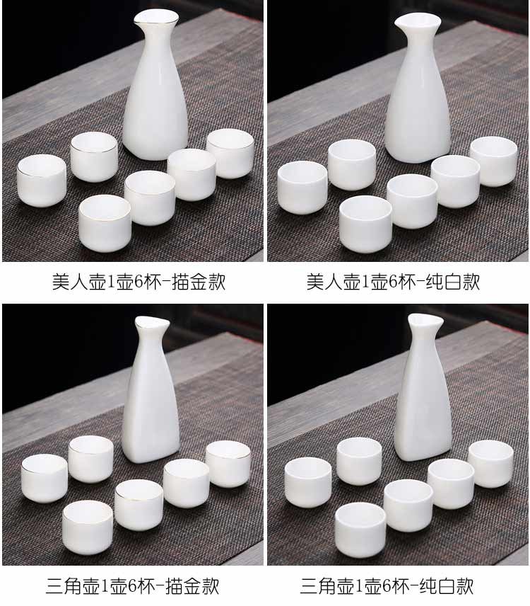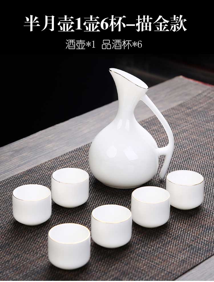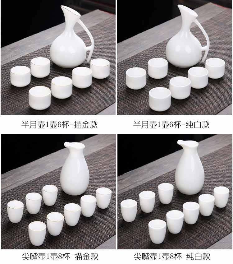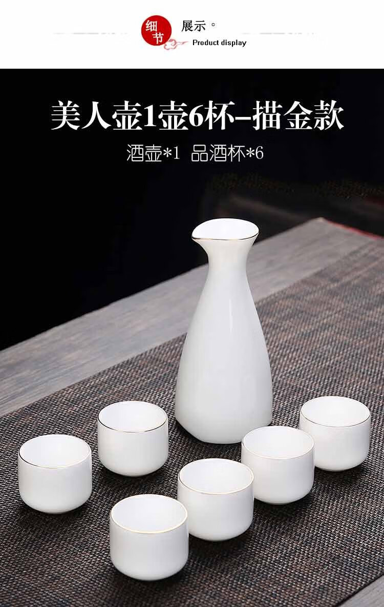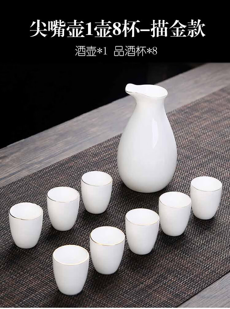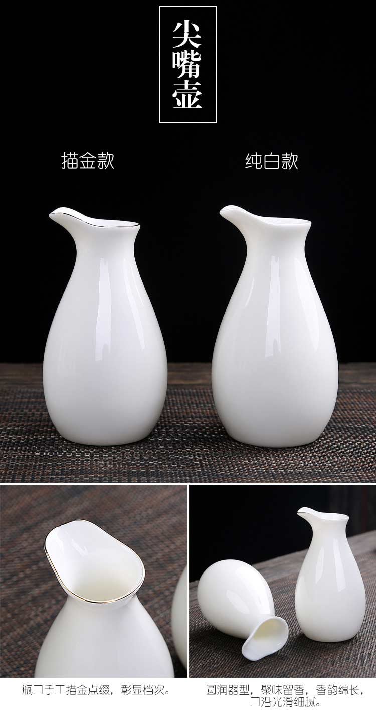 Bi Fang utensils Dehua mutton-fat jade white porcelain wine set set with gold tracing, small wine cup, half Jin Jin is equal to 0.5 kg, sake and white wine divider, three liang ceramic small wine cup set, beauty pot, one pot, 6 cups - gold tracing style (flask 170 ml)