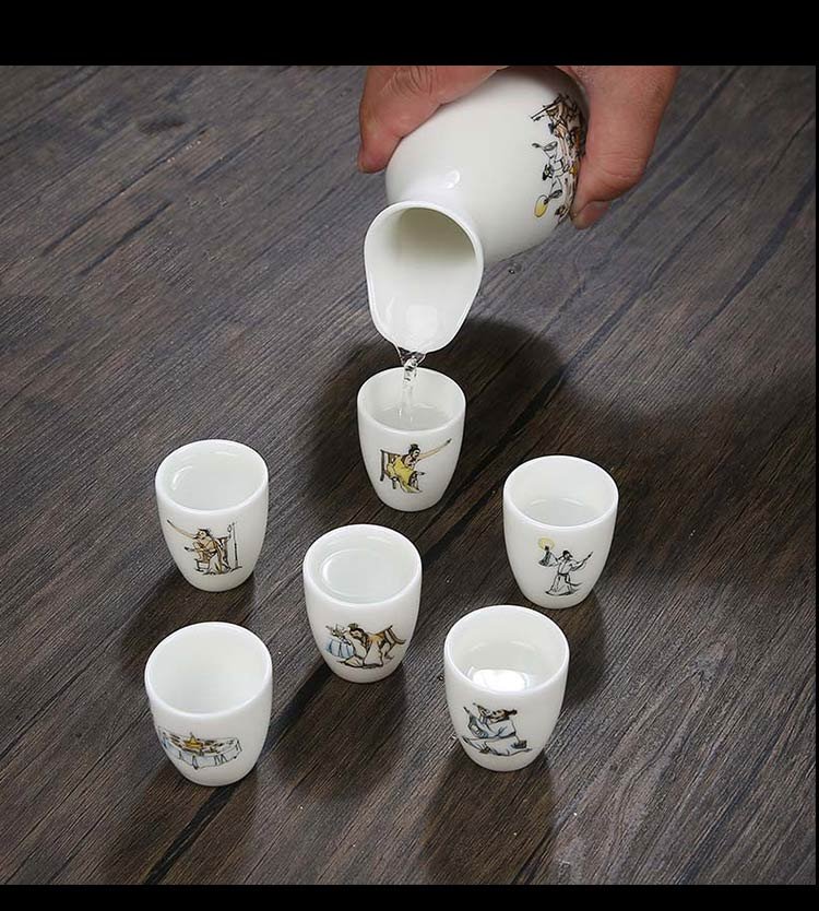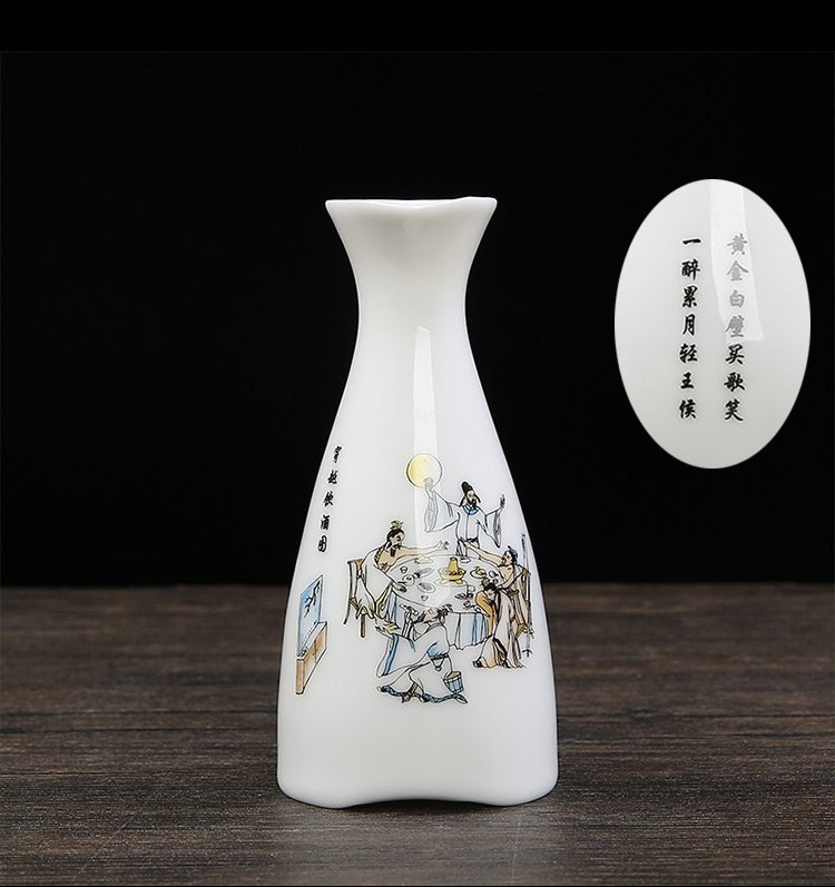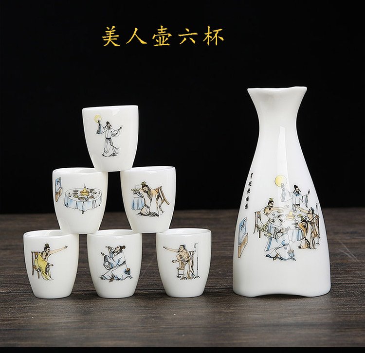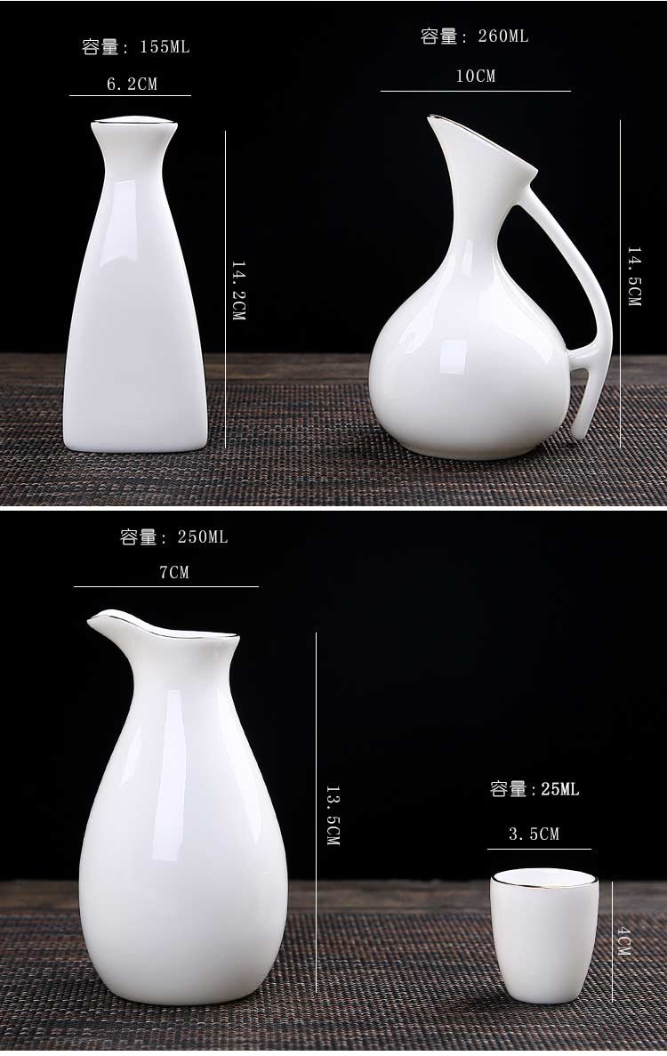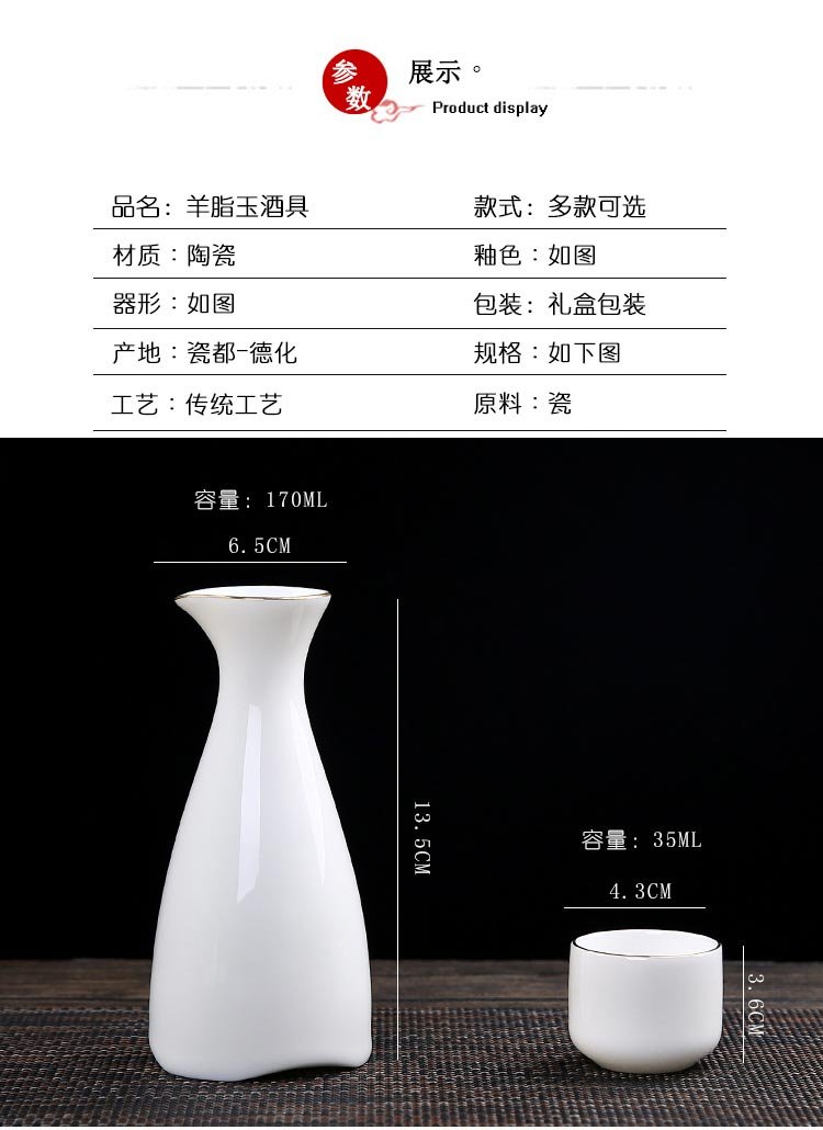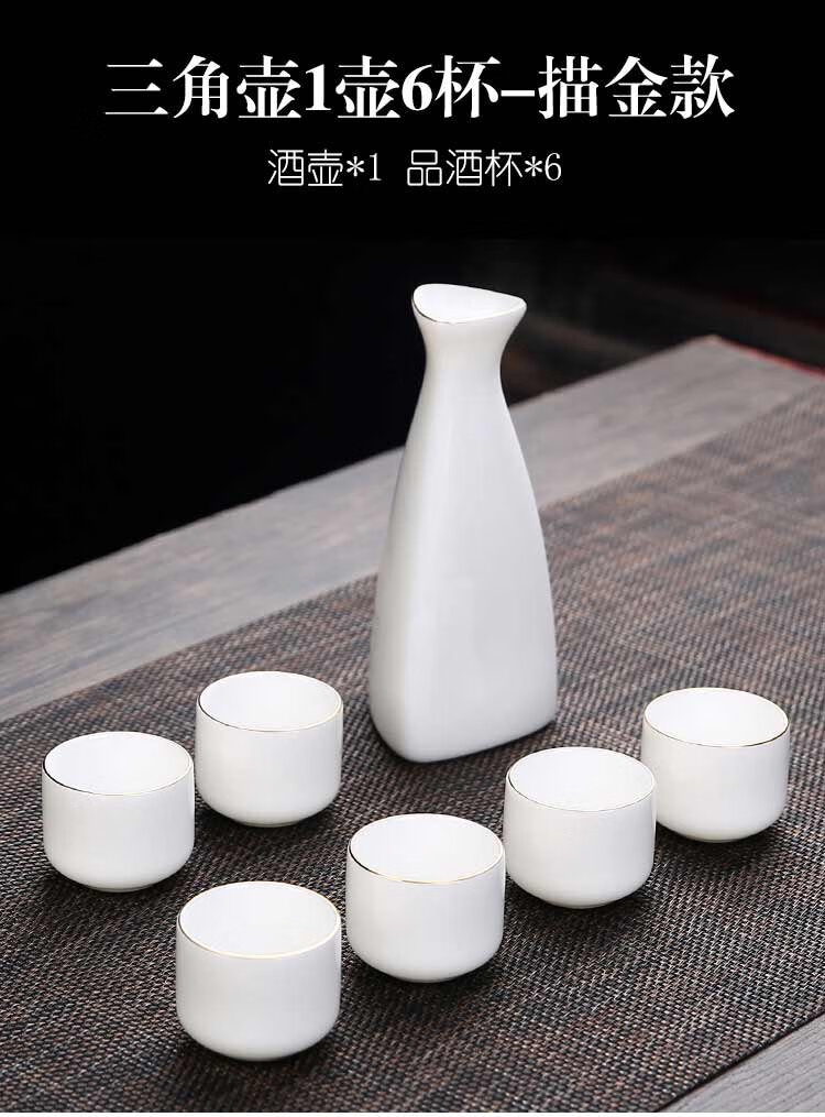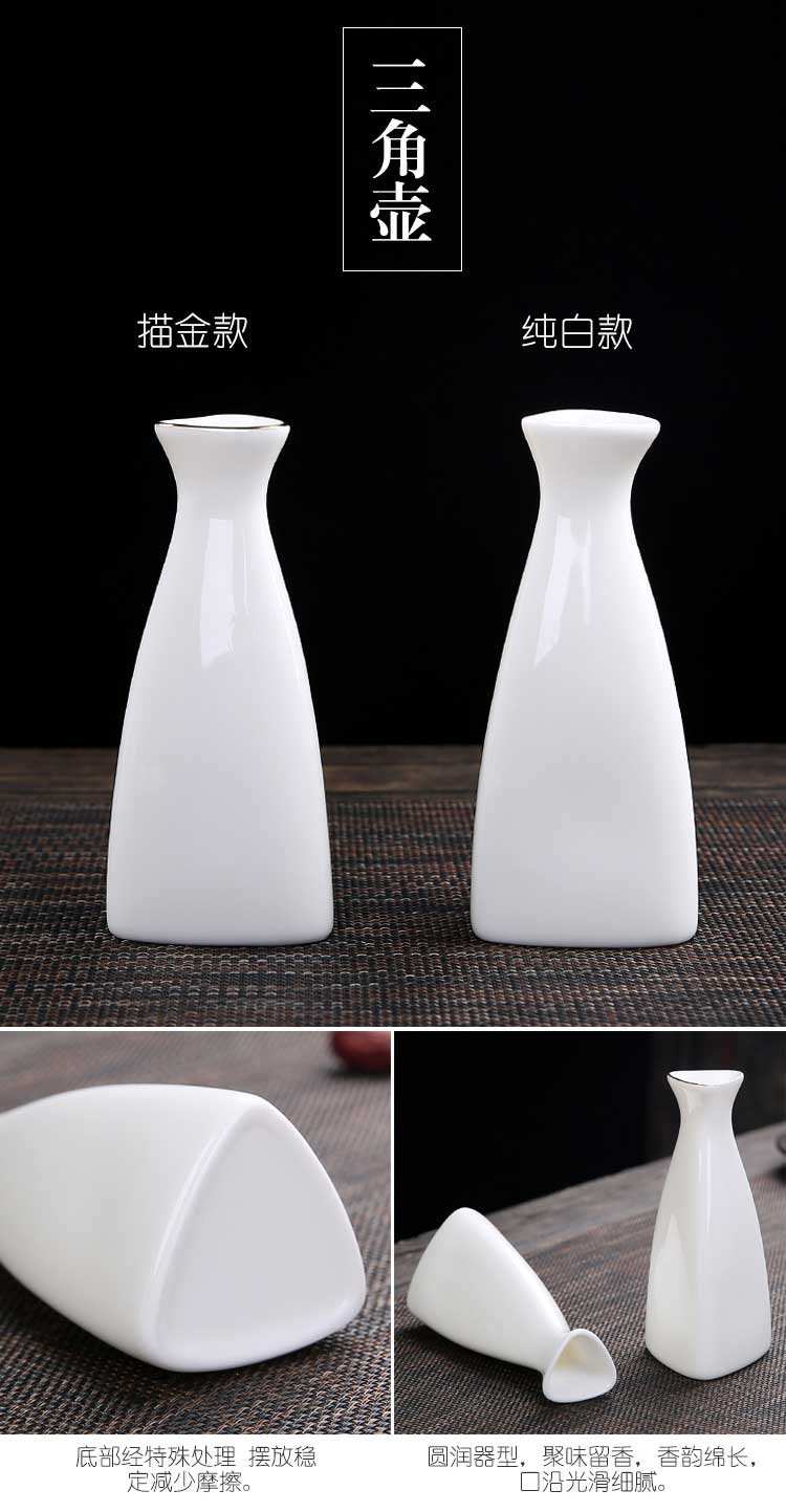 Bi Fang utensils Dehua mutton-fat jade white porcelain wine set set with gold tracing, small wine cup, half Jin Jin is equal to 0.5 kg, sake and white wine divider, three liang ceramic small wine cup set, beauty pot, one pot, 6 cups - gold tracing style (flask 170 ml)