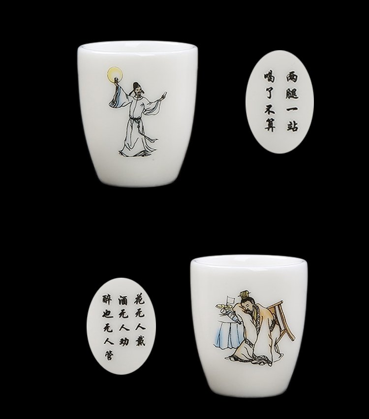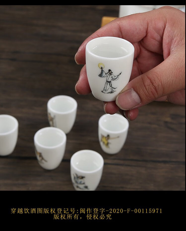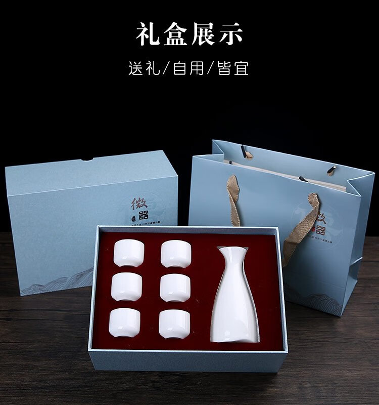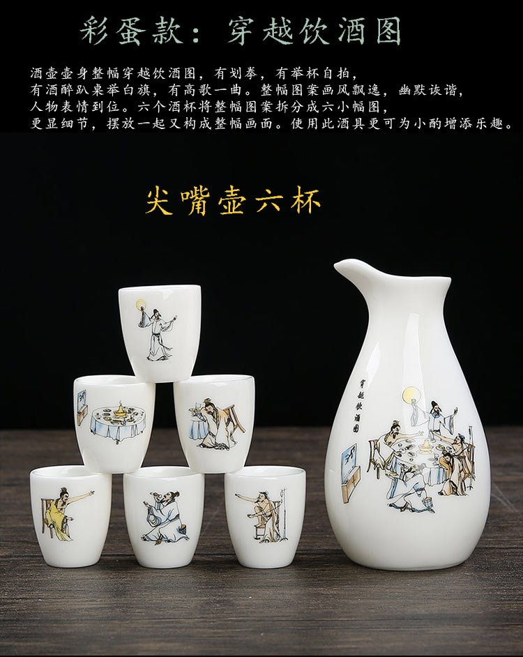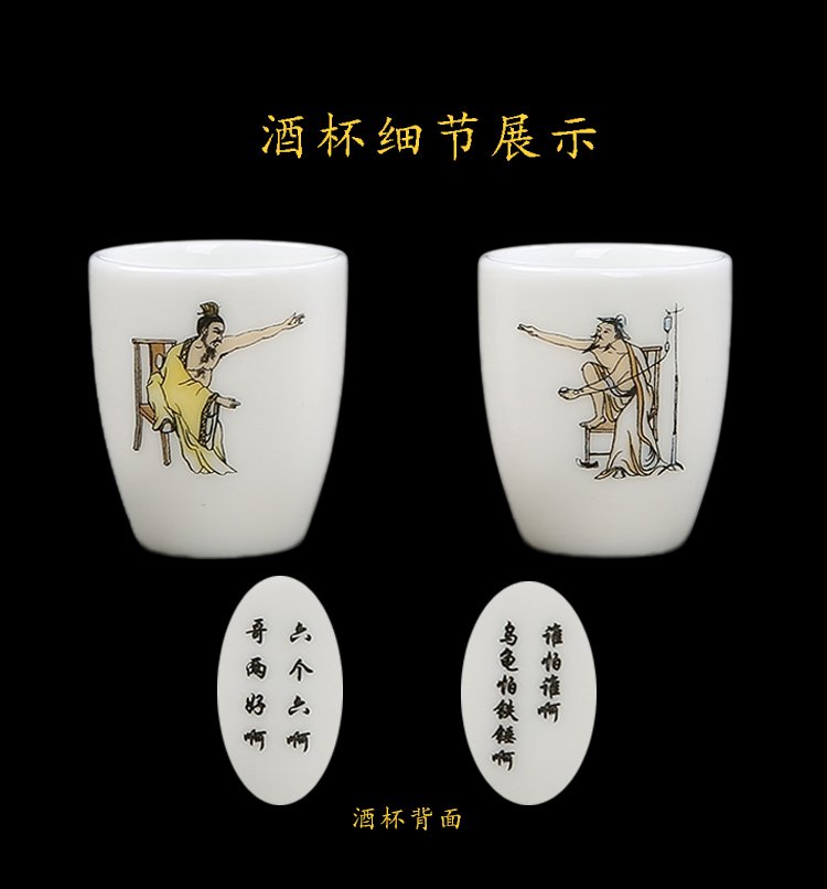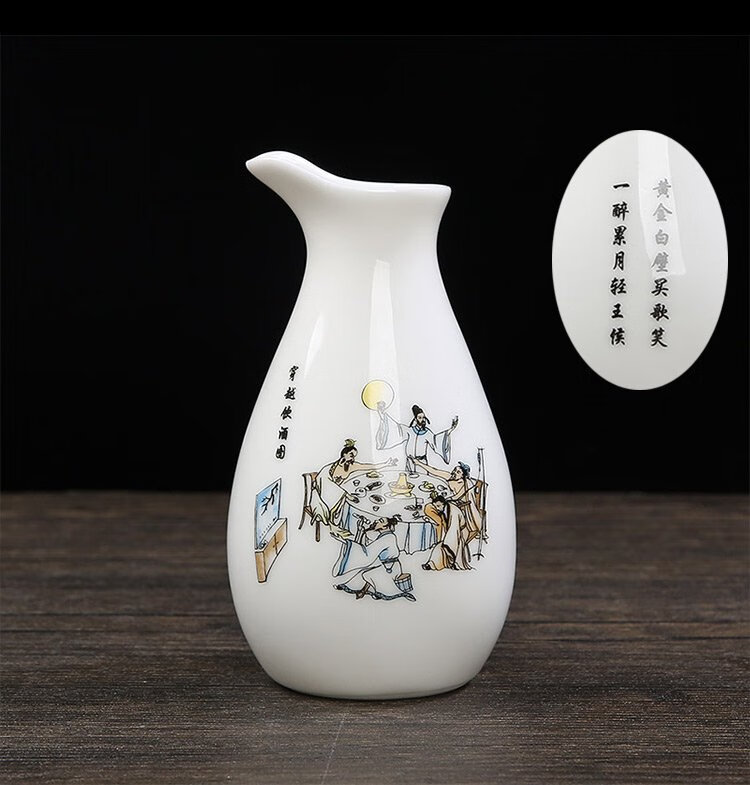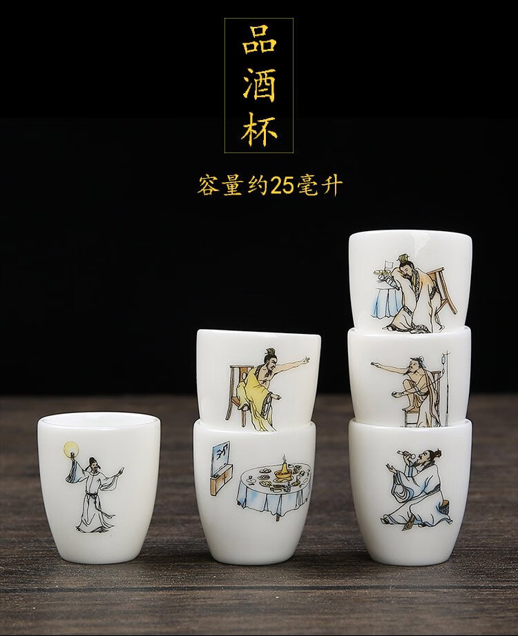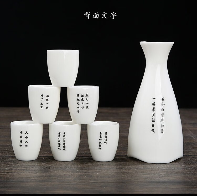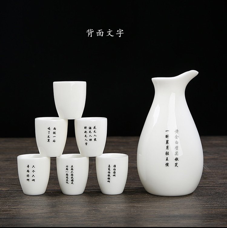 Bi Fang utensils Dehua mutton-fat jade white porcelain wine set set with gold tracing, small wine cup, half Jin Jin is equal to 0.5 kg, sake and white wine divider, three liang ceramic small wine cup set, beauty pot, one pot, 6 cups - gold tracing style (flask 170 ml)