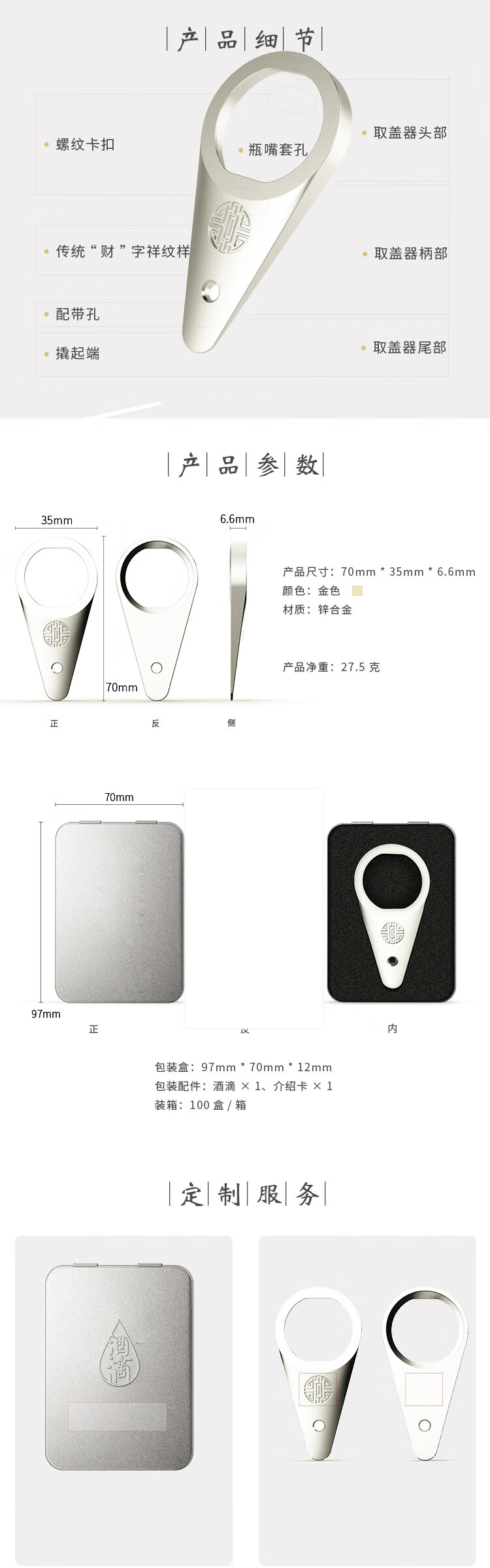 Yingrong Moutai wine bottle opener, wine dropper, cap opener, cap remover, gift, cap opening tool, special for Moutai, silver