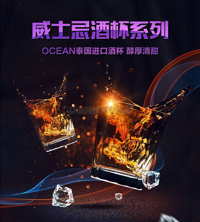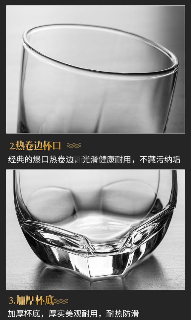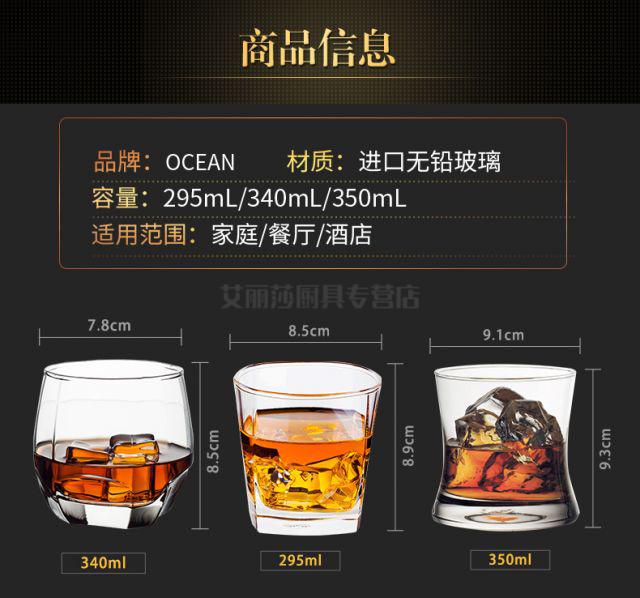 Ocean imported lead-free glass household heat-resistant tea cup water cup thickened whiskey cup beer cup drinking cup 6 whiskey cups (340ML)