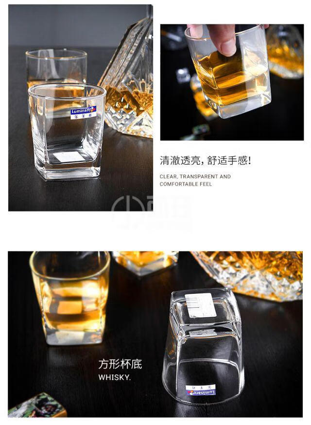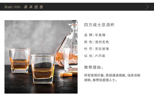 Lemeiya whiskey glass lead-free glass cup square cup bar KTV wine glass beer cup home tea cup 6-piece set square straight/200ml