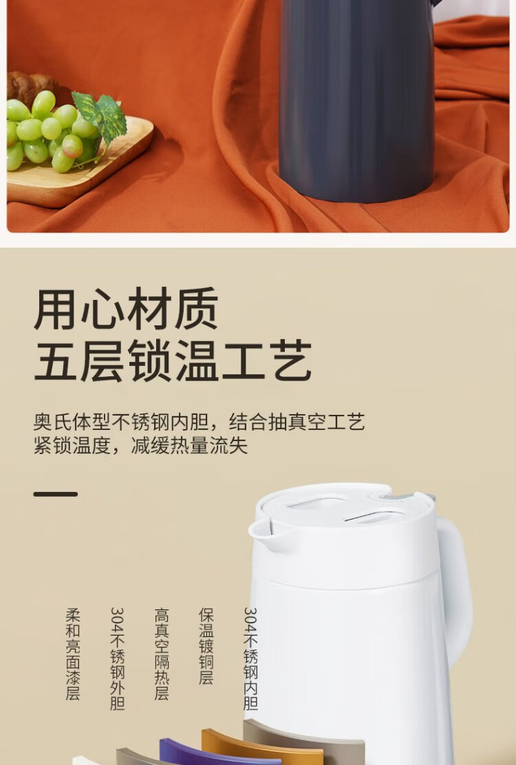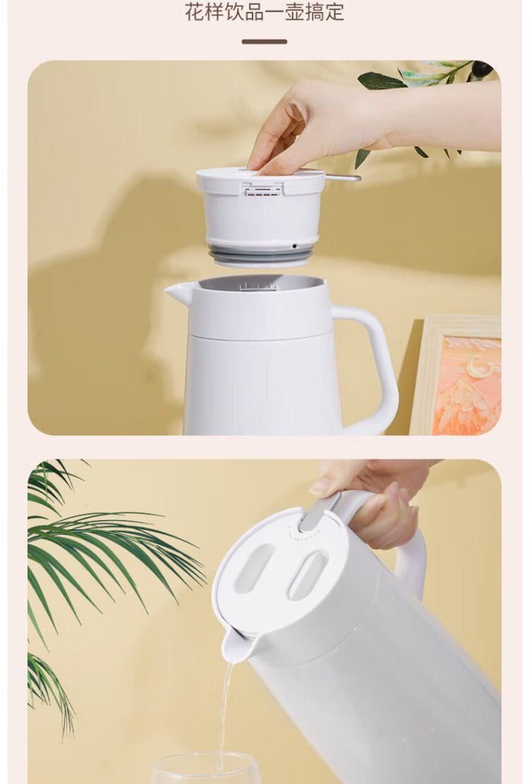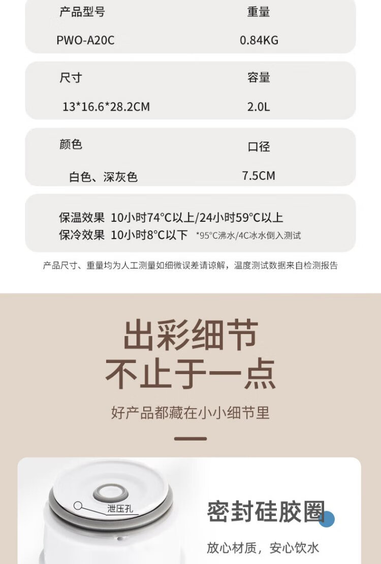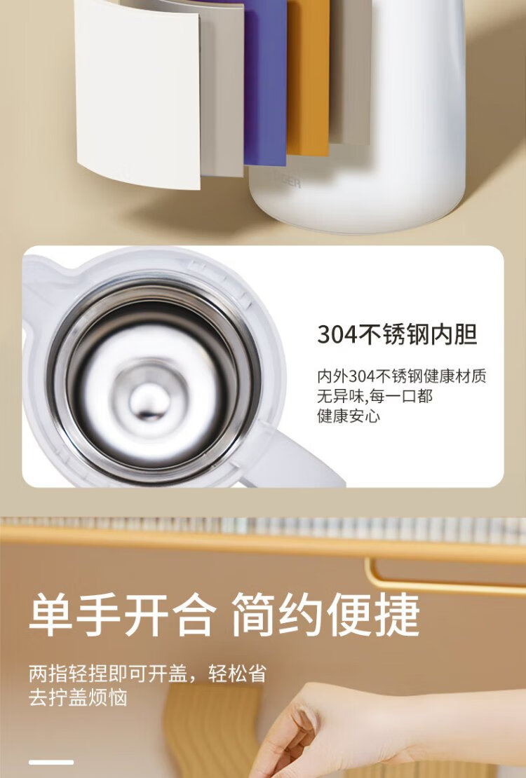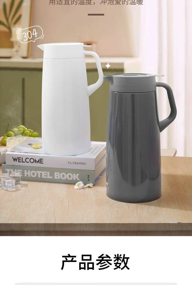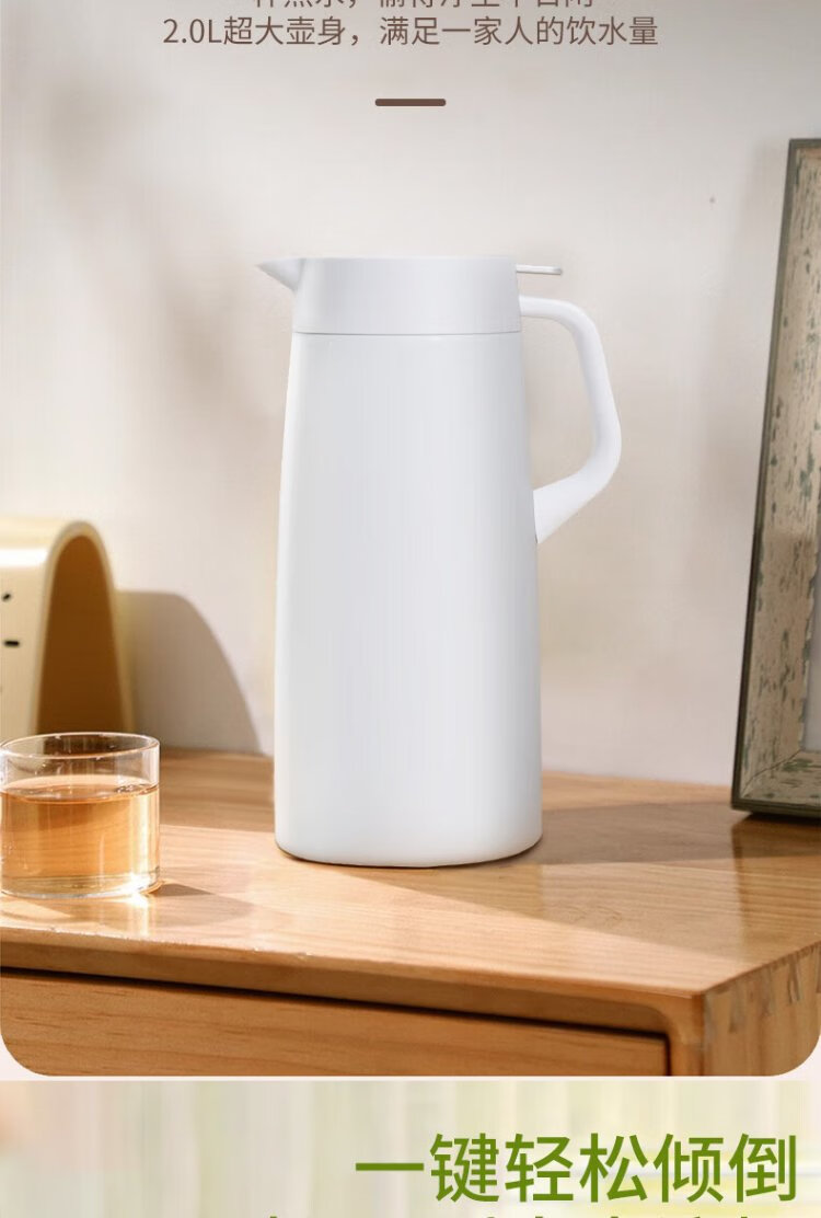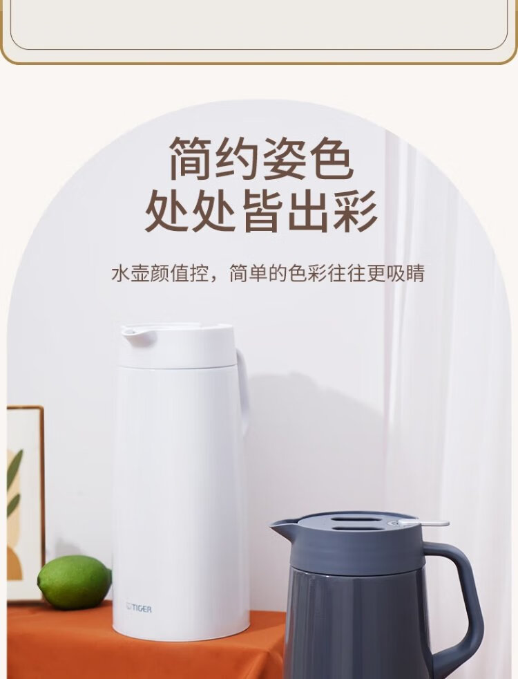 TIGER Thermos Kettle 304 Stainless Steel Fashion Insulation/Cool Kettle PWO-A20C-W White 2L