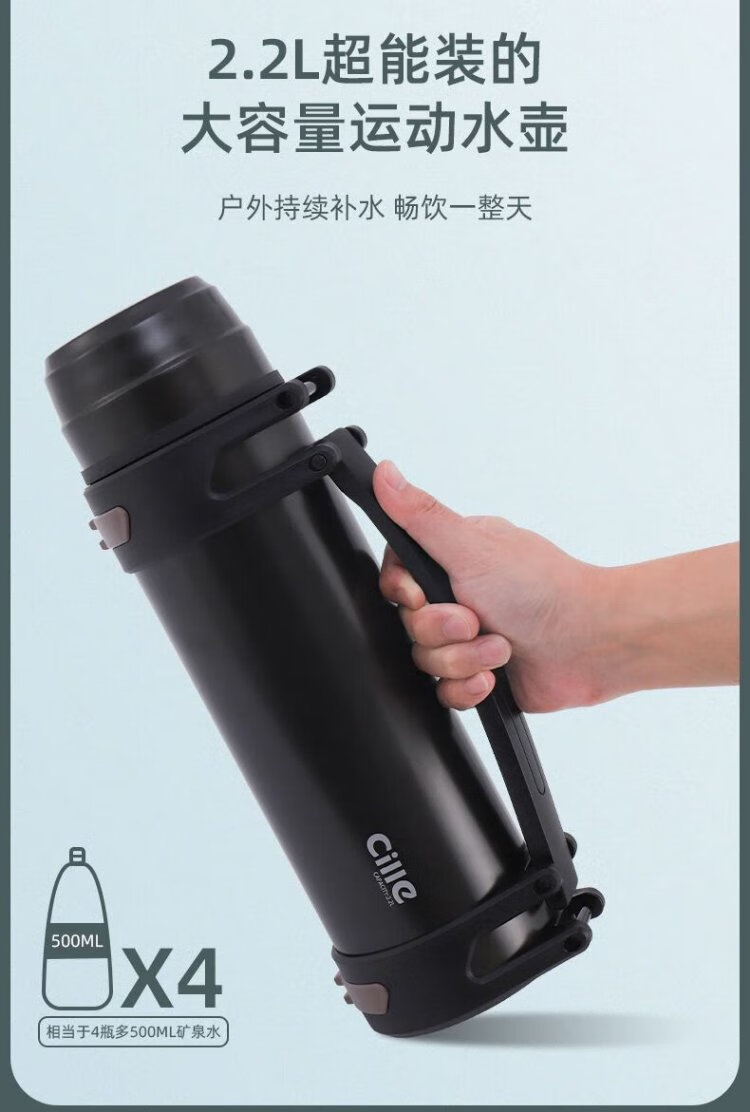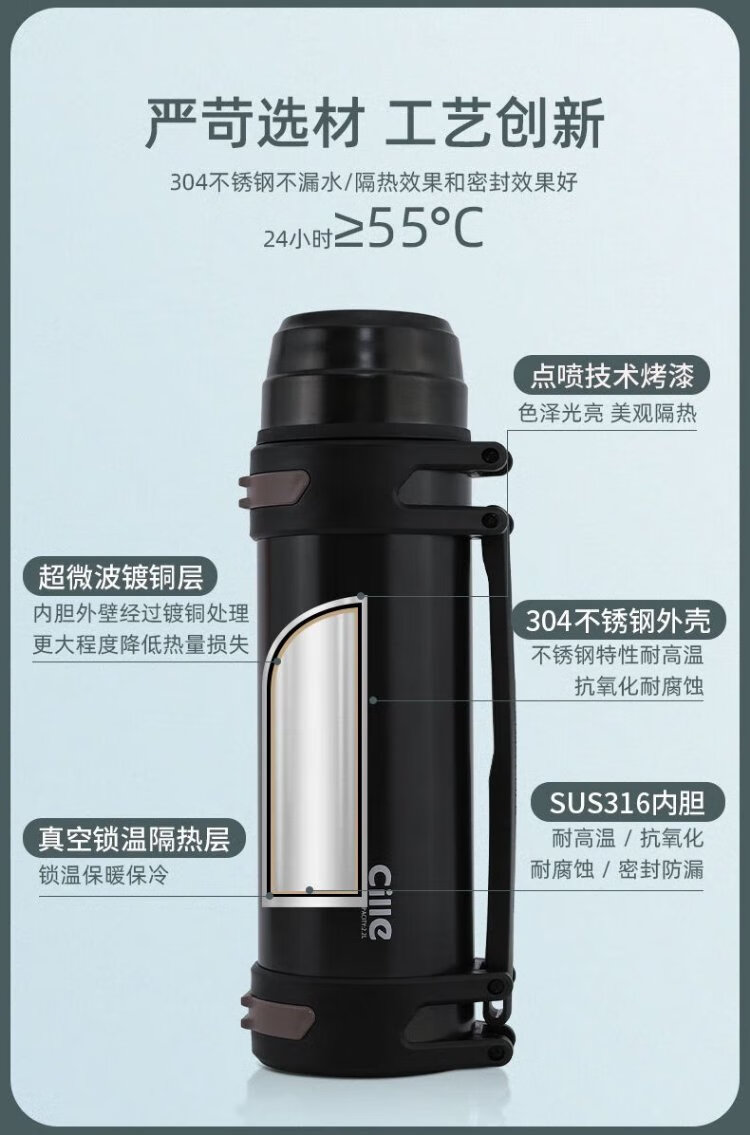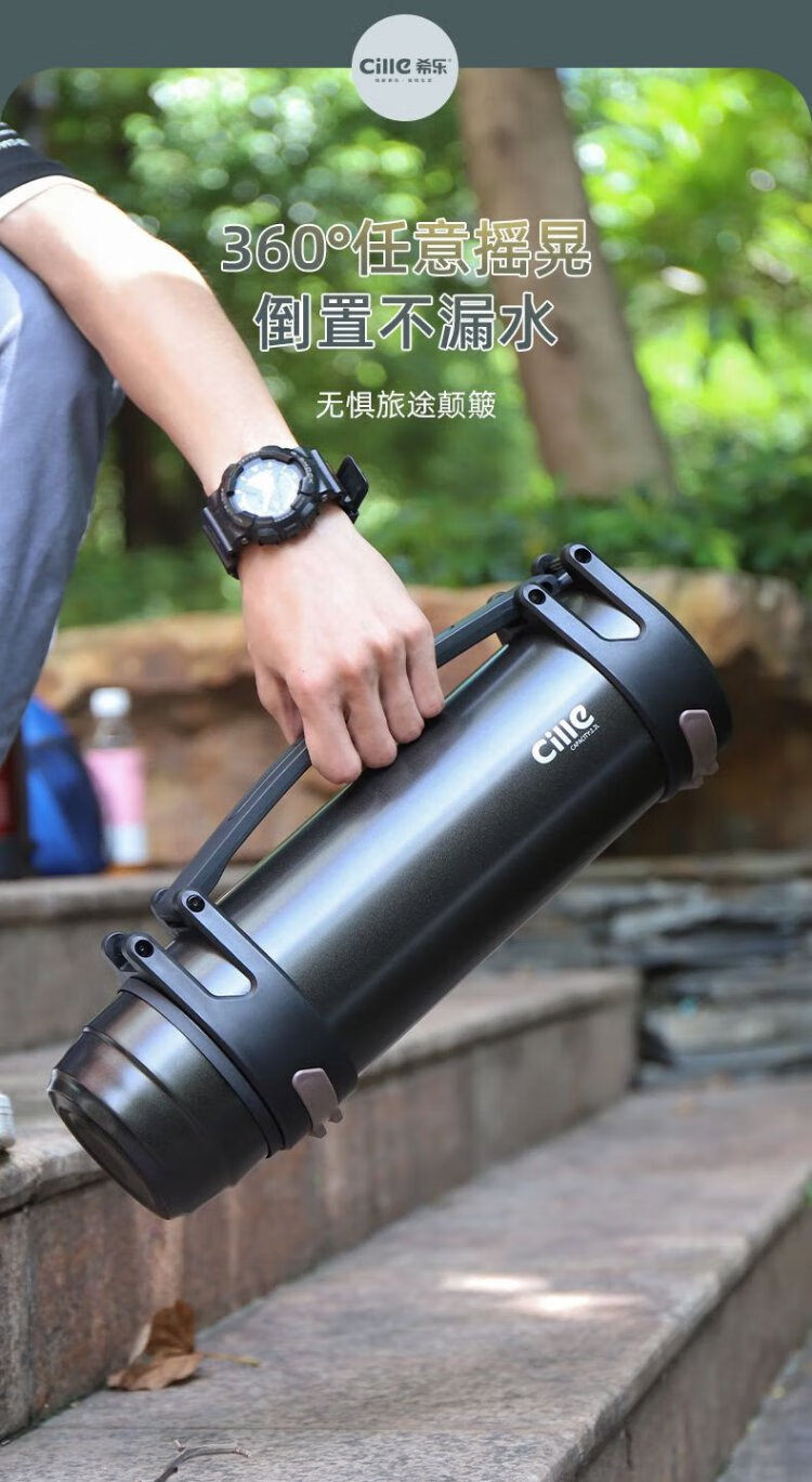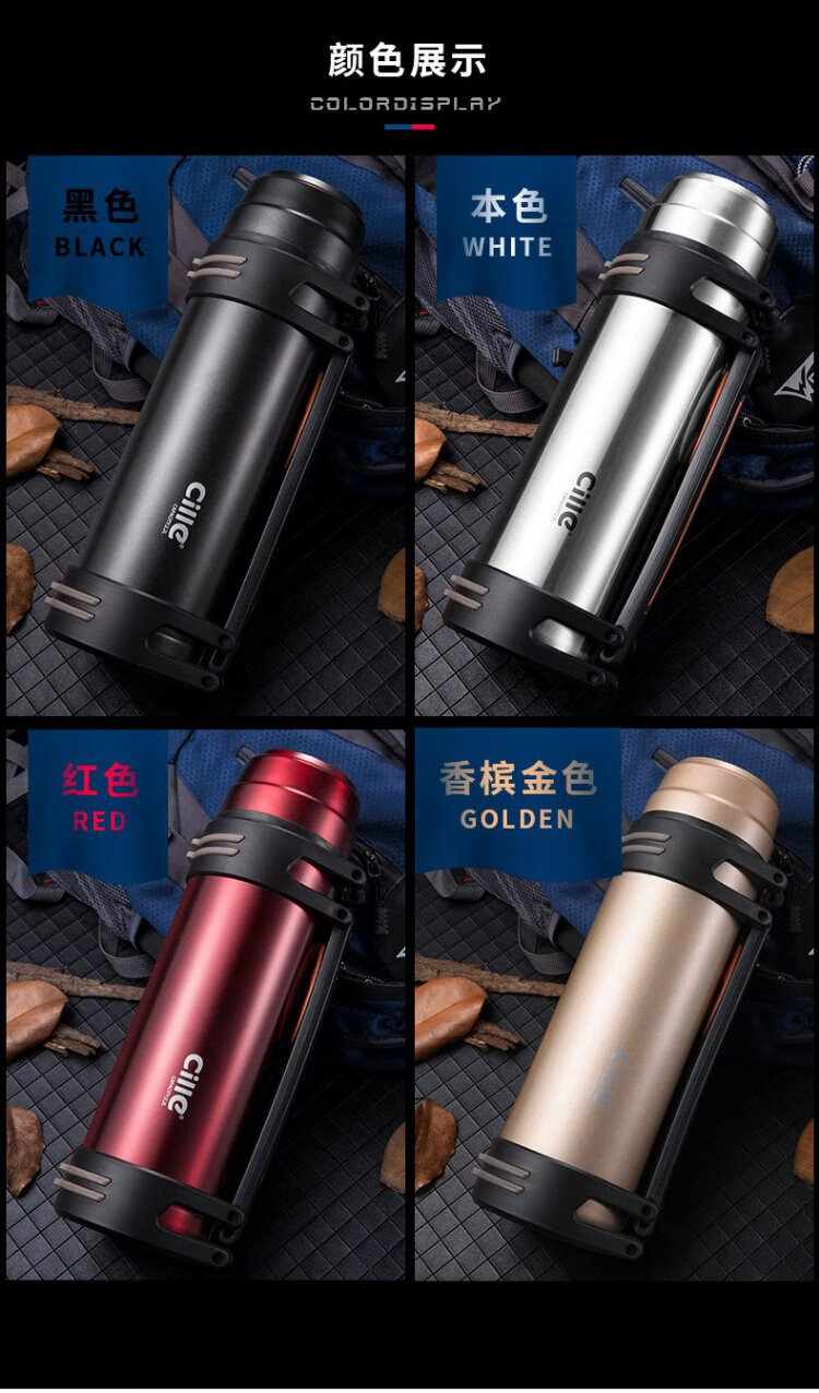 Cille large capacity thermos kettle 304 stainless steel travel camping vacuum insulated kettle outdoor travel thermos