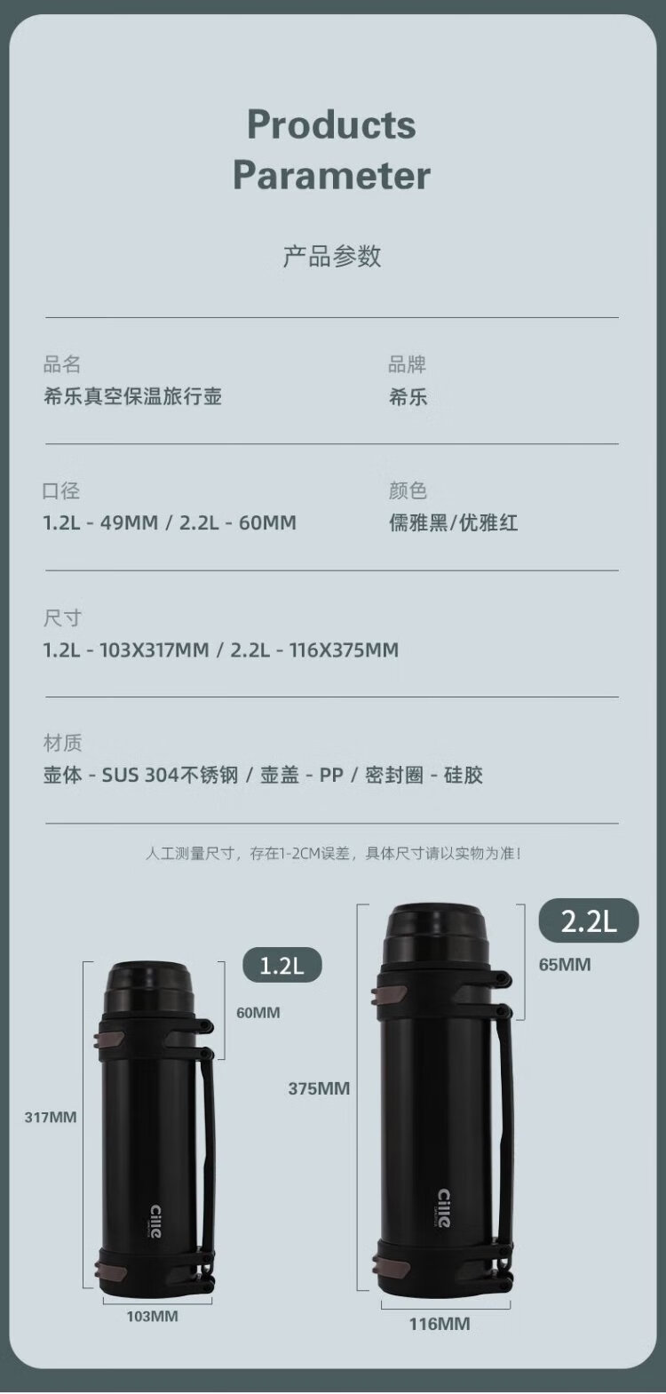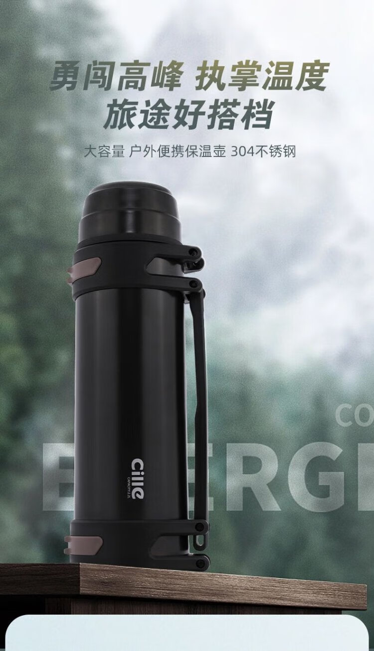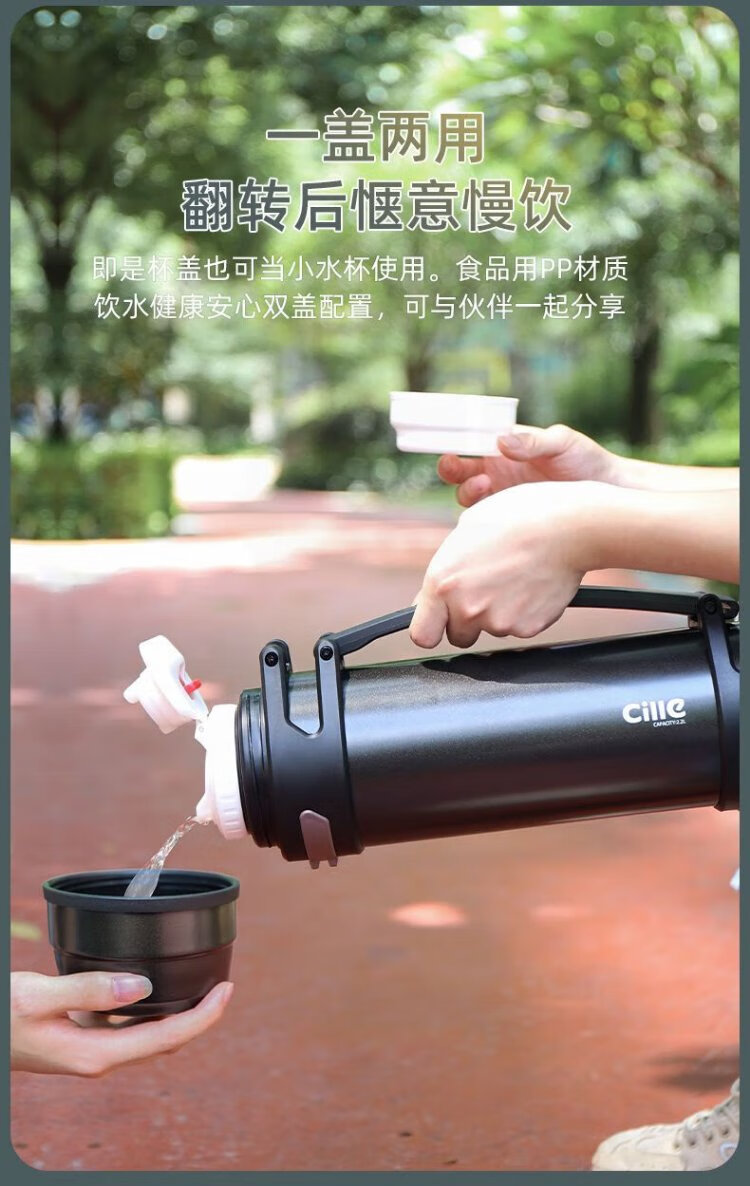 Cille large capacity thermos kettle 304 stainless steel travel camping vacuum insulated kettle outdoor travel thermos