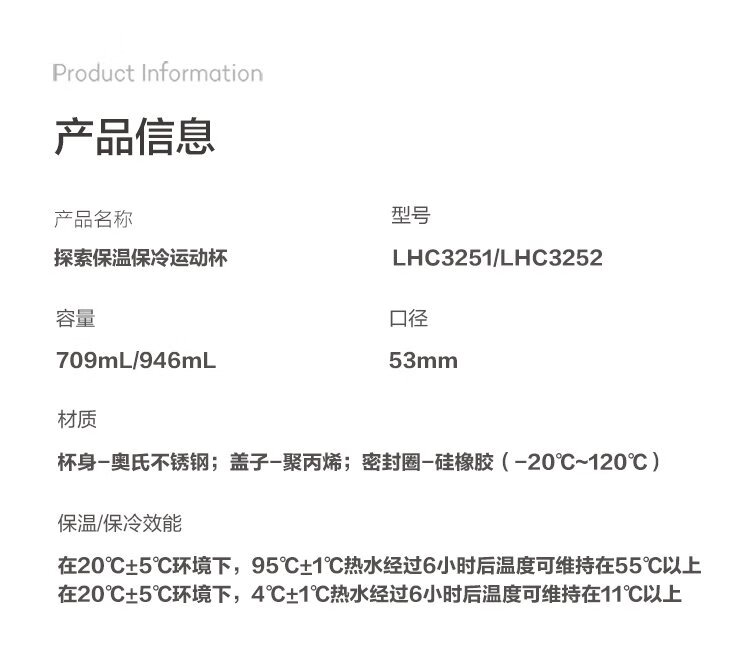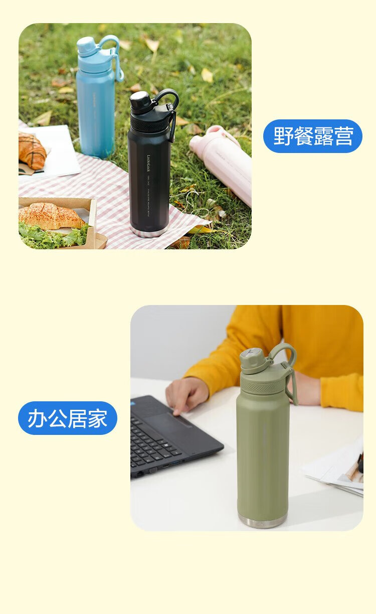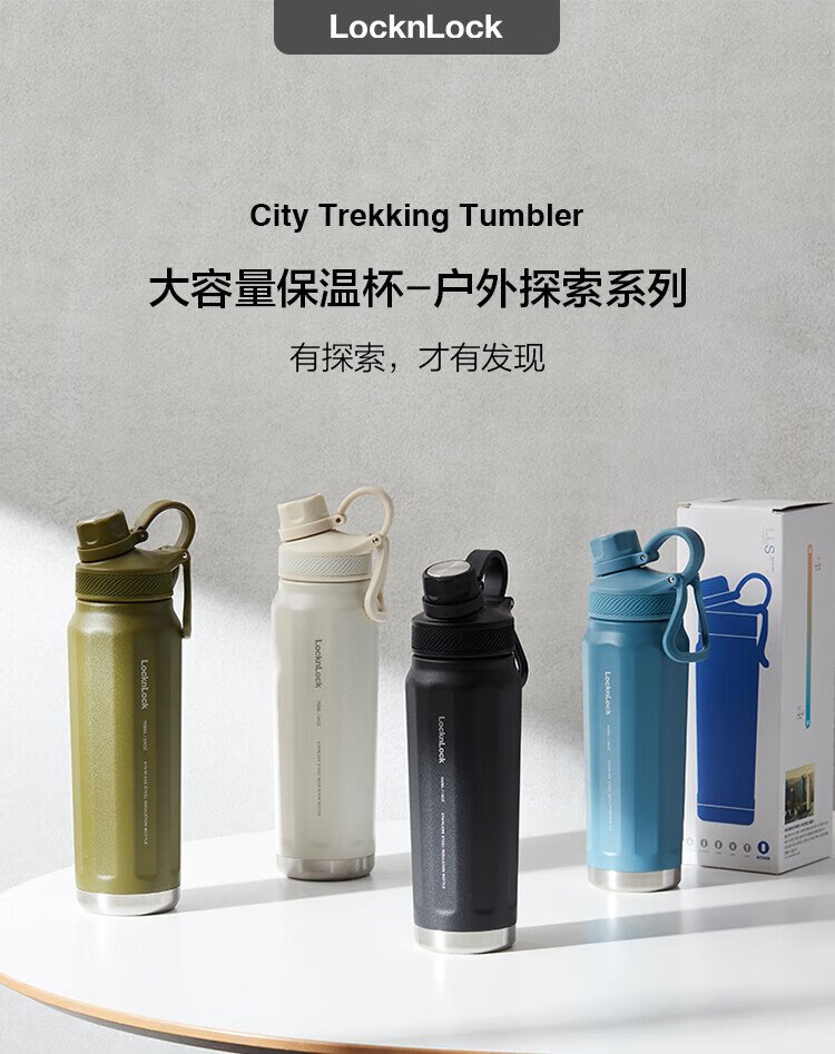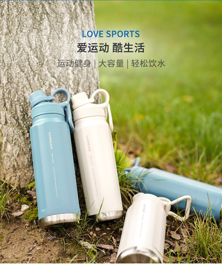 LOCK&LOCK Explore Thermal and Cold Insulation Sports Cup Portable Sports Pot Large Capacity Water Cup 946ML White LHC3252IVY