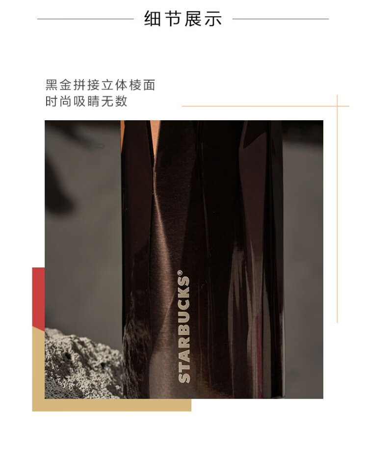 Starbucks (Starbucks) classic black gold edged stainless steel thermal insulation cup 473ml desktop cold cup birthday gift
