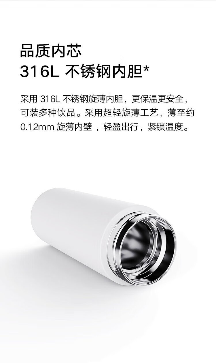 Mijia Thermos Cup 316 Stainless Steel Water Cup Men's and Women's Cup Large Capacity Tea Cup Portable 350ml White